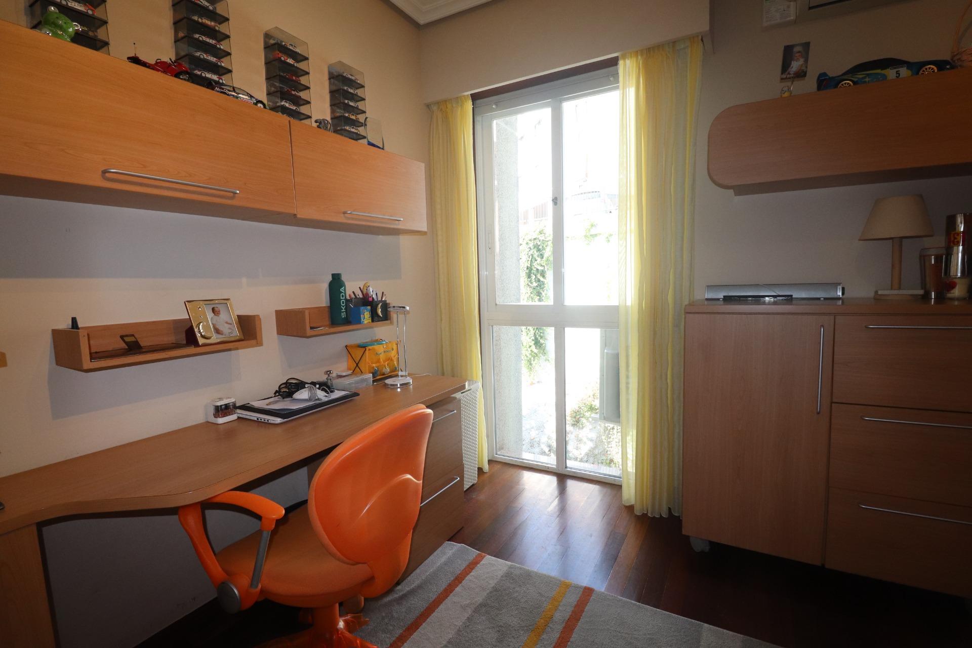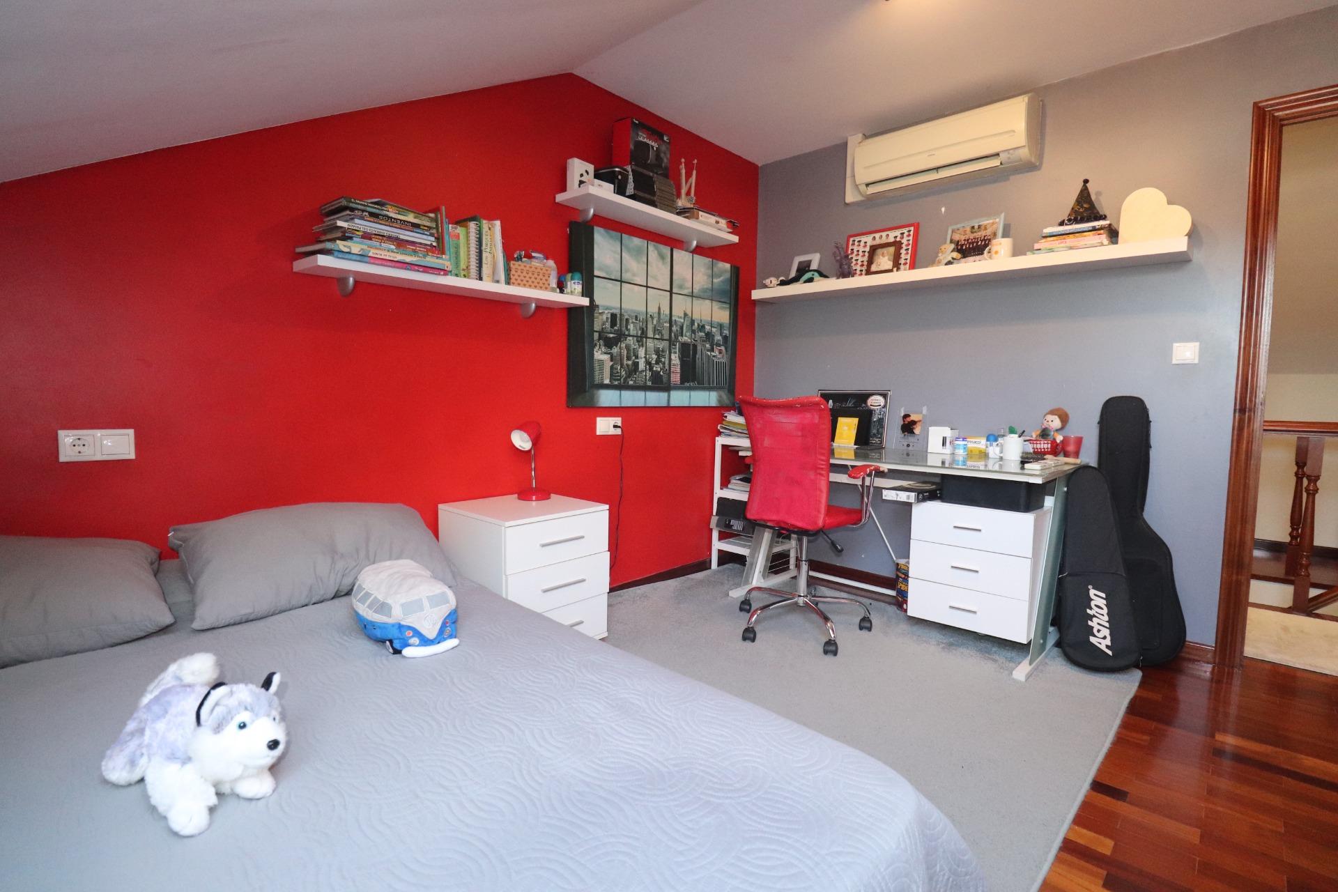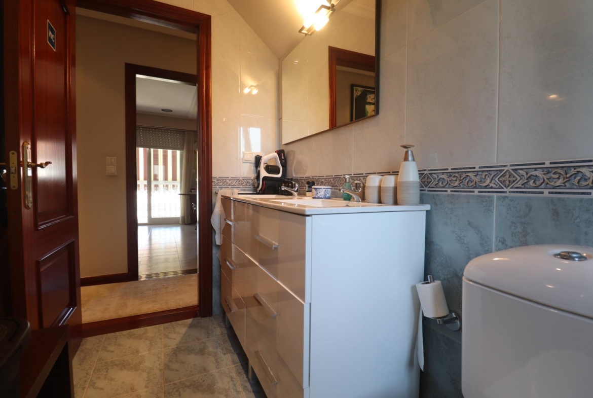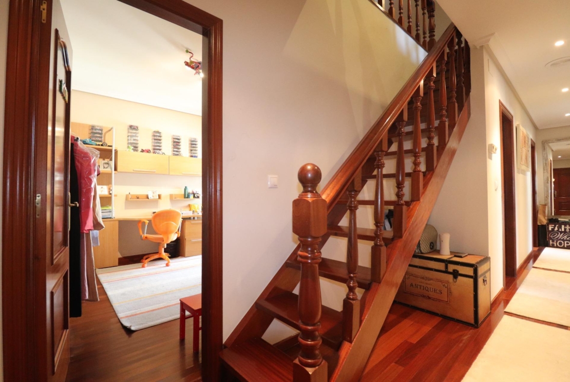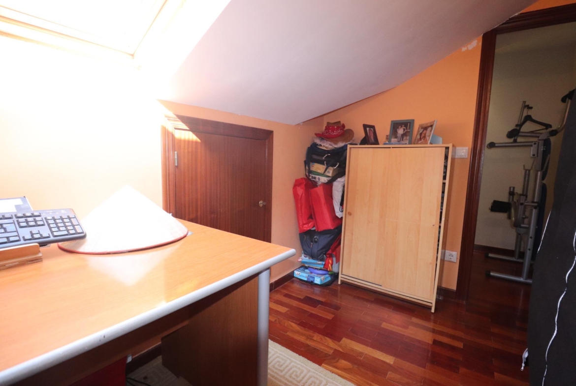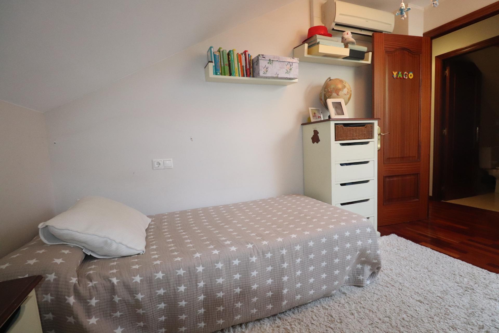En planta superior cuenta con dos dormitorios,uno de ellos con pequeño vestidor y otro baño completo. Suelos de gres en cocina y baños; parquet en el resto de estancias, ventanas de aluminio con climalit.