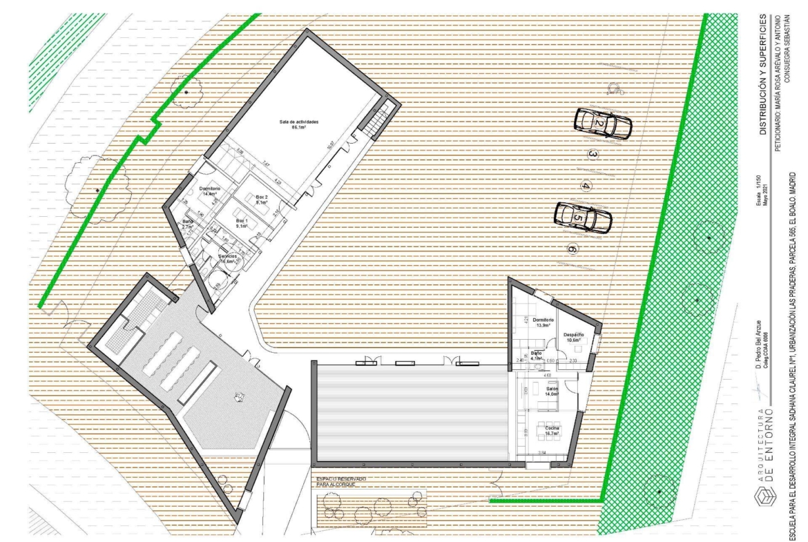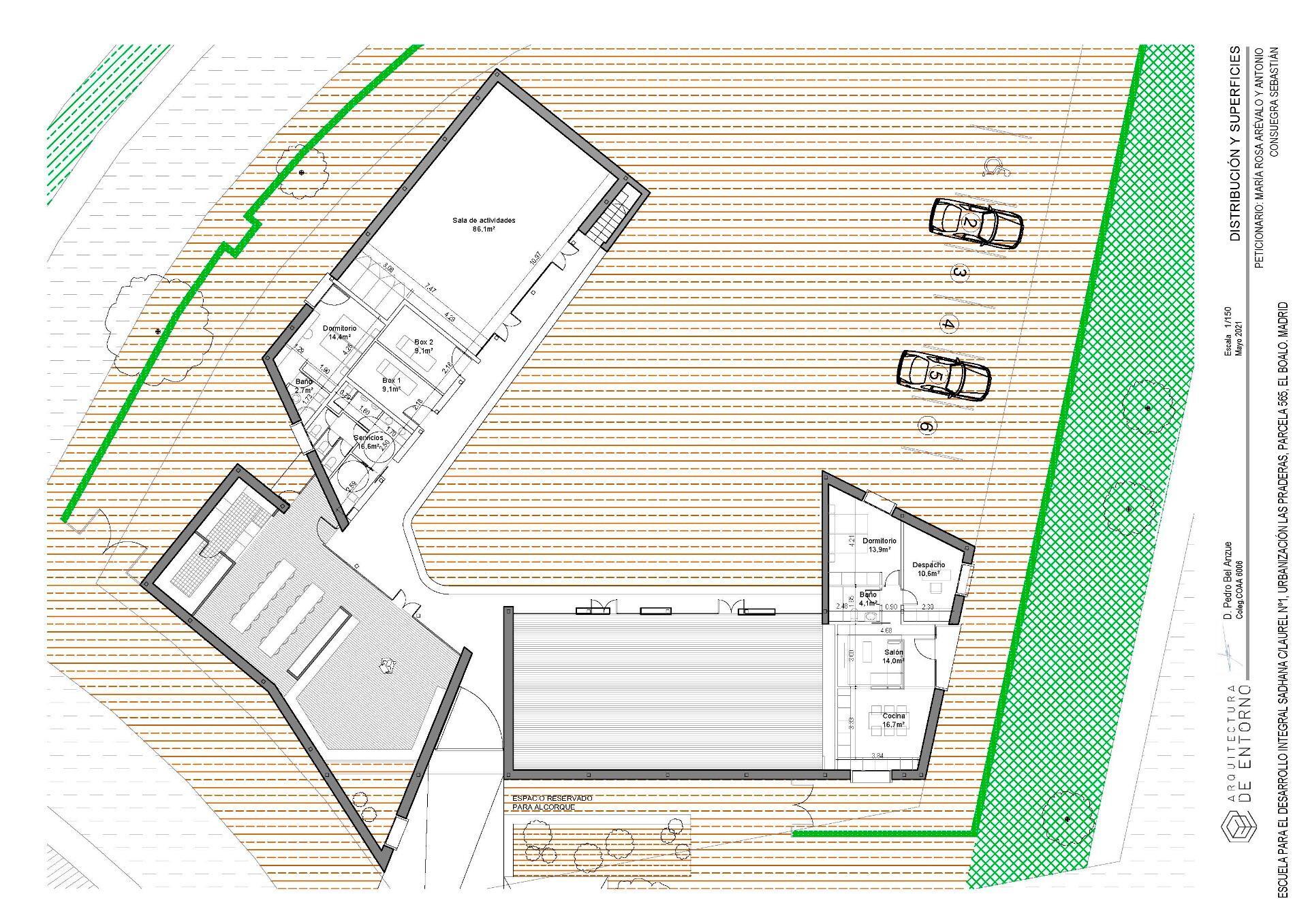 La parcela triangular abarca un total de 1882 m2 (con posibilidad edificatoria máxima que alcanza los 1320 m2) y tiene una superficie construida actual sobre el terreno que asciende a los 542,7 m2. Se destaca por su versatilidad ya que permite equipamientos educativos además de usos sanitarios o culturales entre otros.