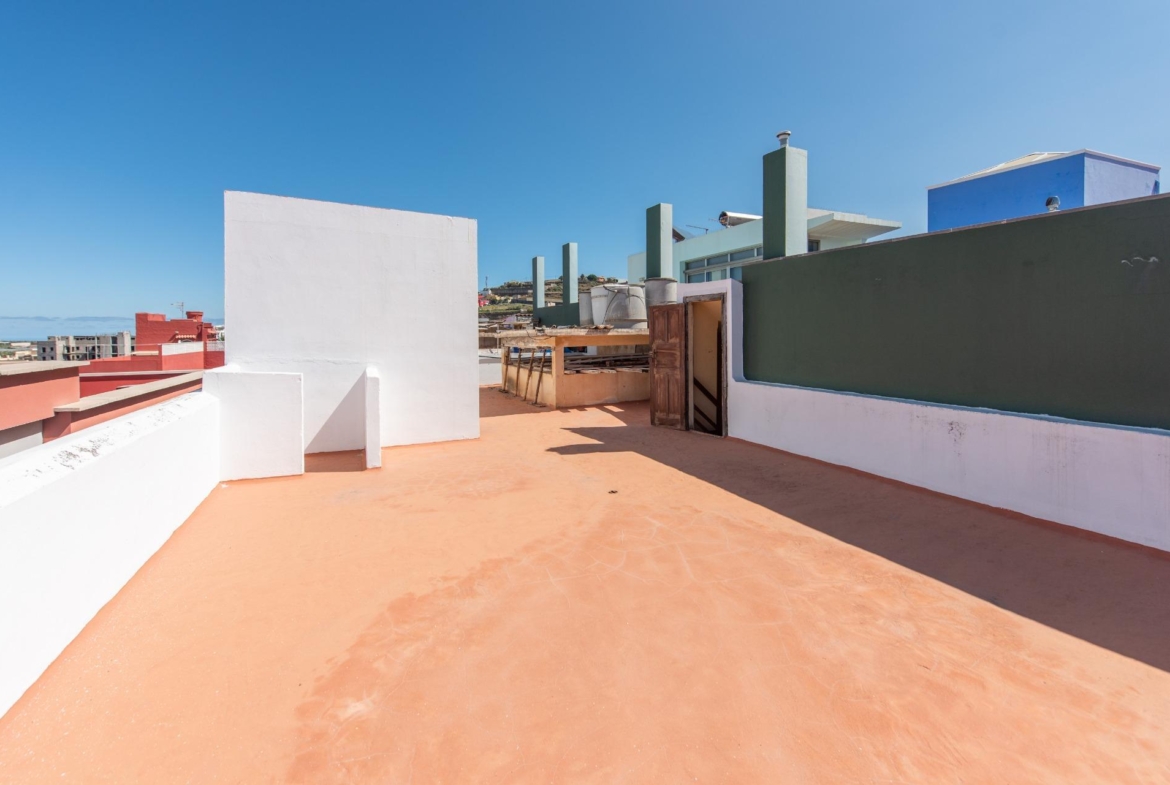 Superficie construida de 137 m2, que se distribuyen en distribuidor, salón, cinco dormitorios, baño, cocina y caja de escalera desde la calle de acceso a la puerta de la vivienda, y una vez dentro, continúa hasta el acceso a la parte de la azotea, exclusiva de la propiedad. La azotea, tiene una superficie aproximada de 93 m2.