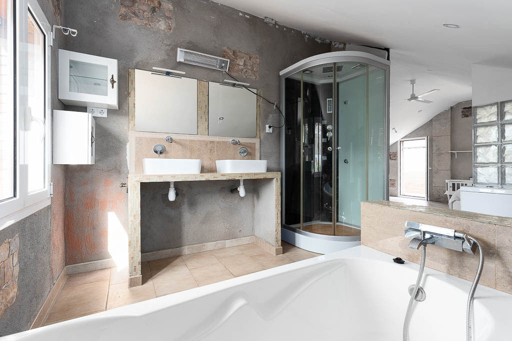 La casa también cuenta con una cuarta habitación, la cual es una suite con bañera y ducha. Esta habitación ofrece privacidad y comodidad adicional
