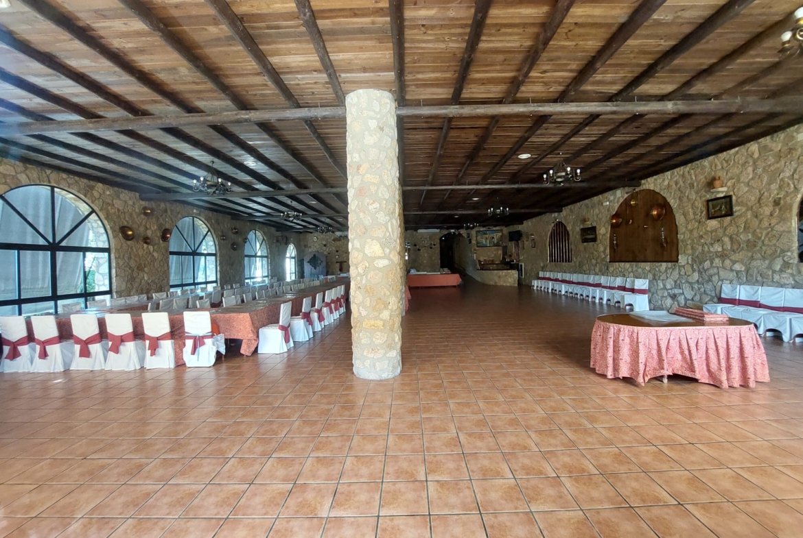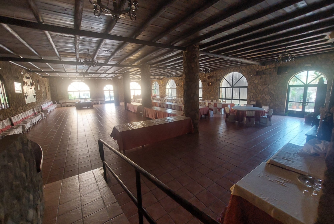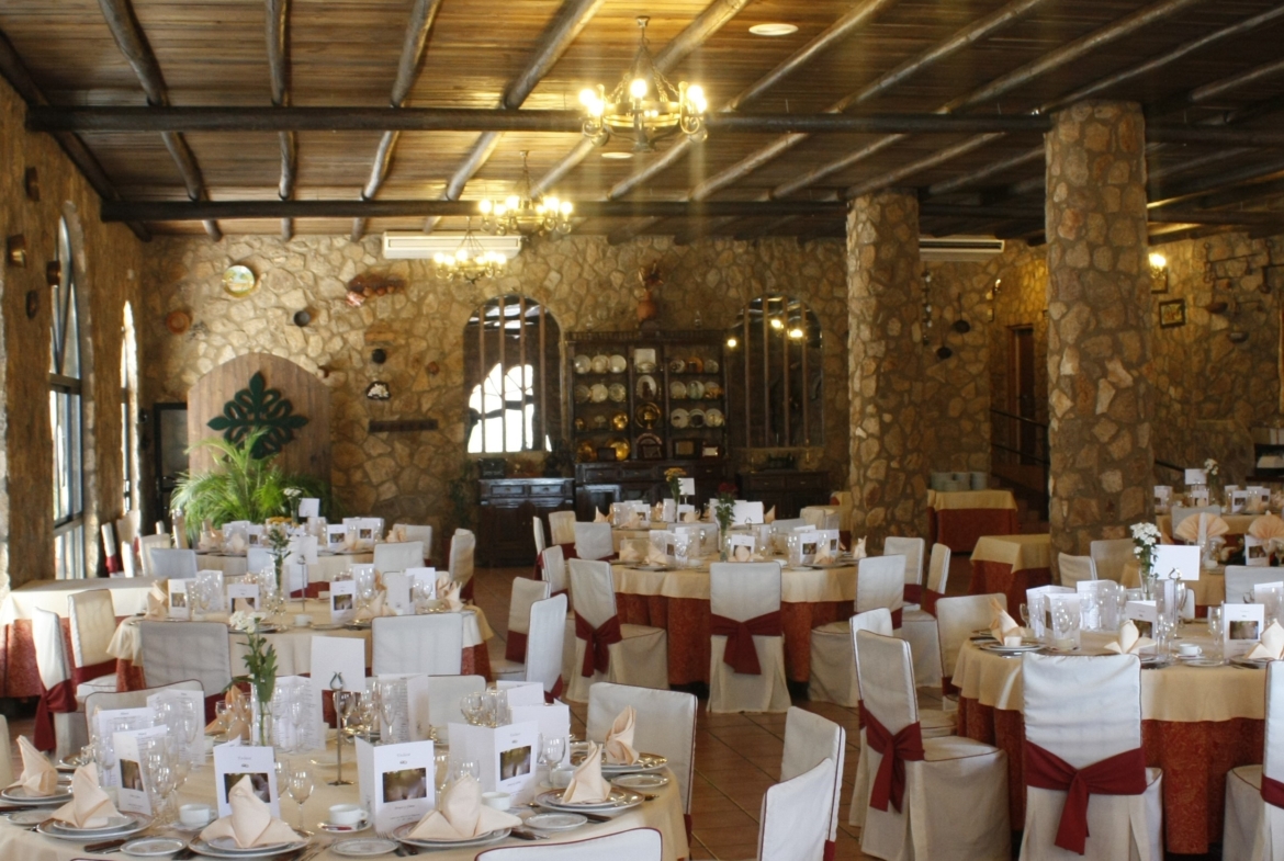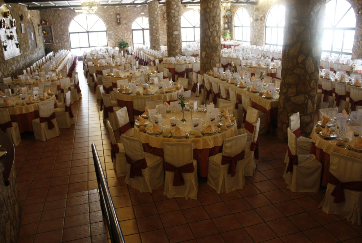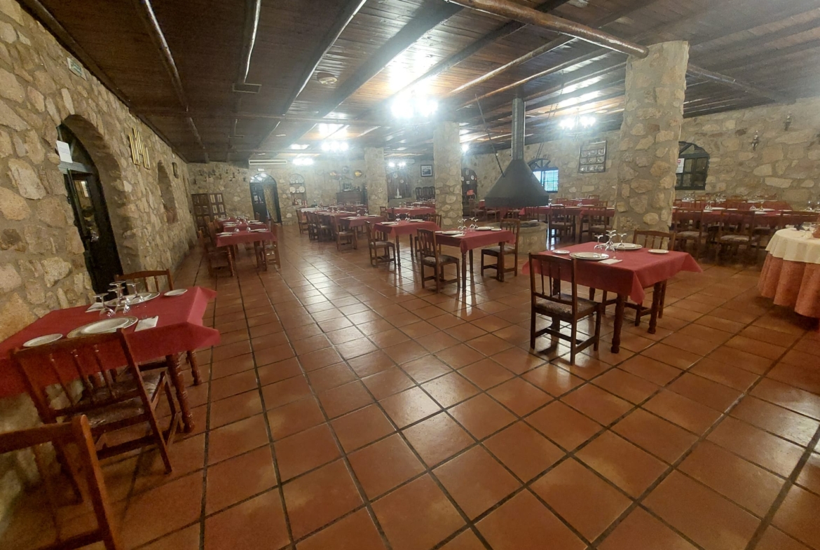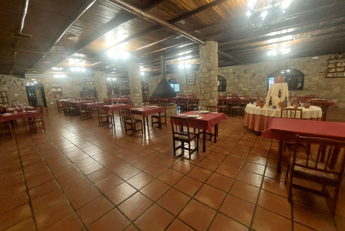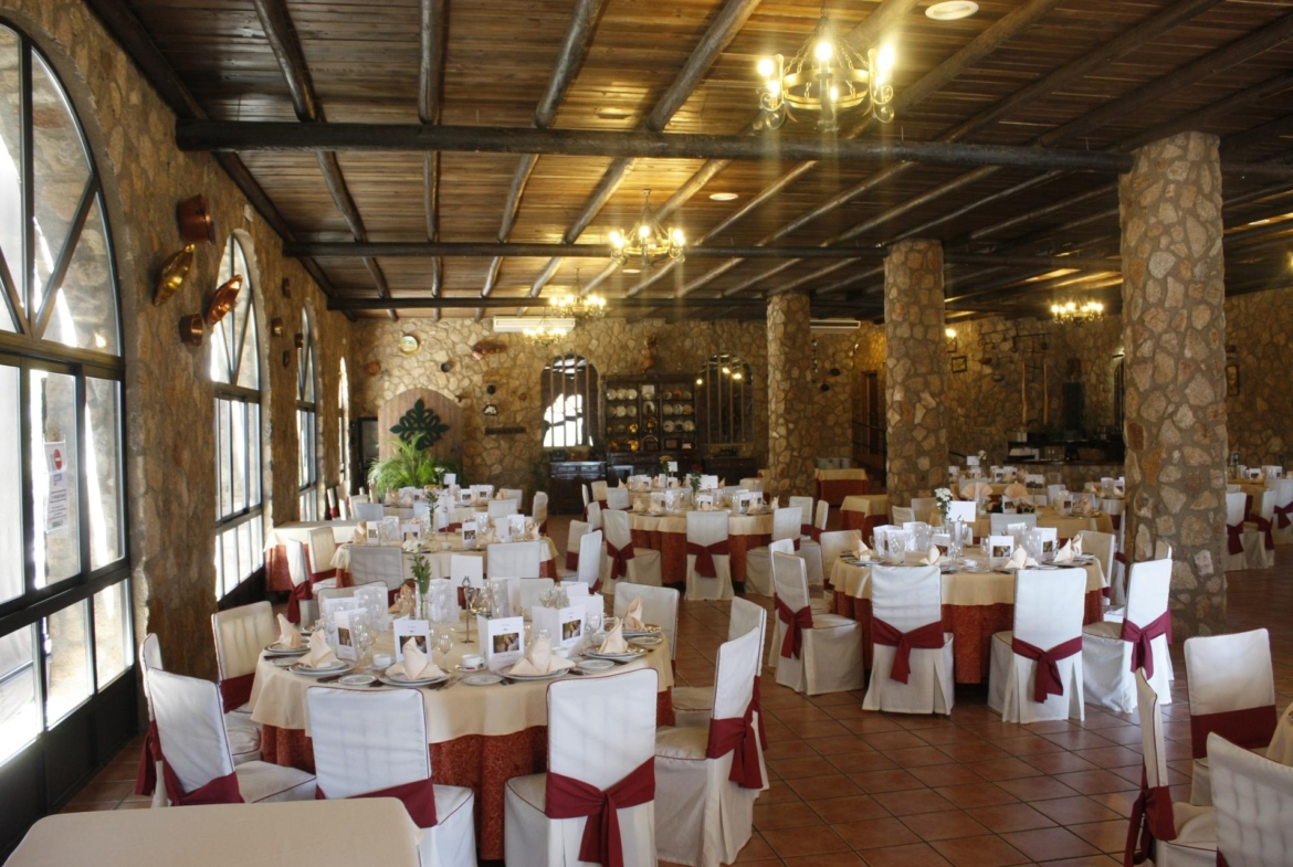 El restaurante cuenta con soberbio claustro comedor y dos amplios salones para celebraciones o eventos, unido a un extenso parking para sus clientes. Dispone además de extensas zonas comunes, sumando amplias terrazas y coquetos jardines posteriores. Dispuestos tanto para el disfrute como para el recreo, contando para ello con pista de pádel junto a una generosa piscina de agua salada.