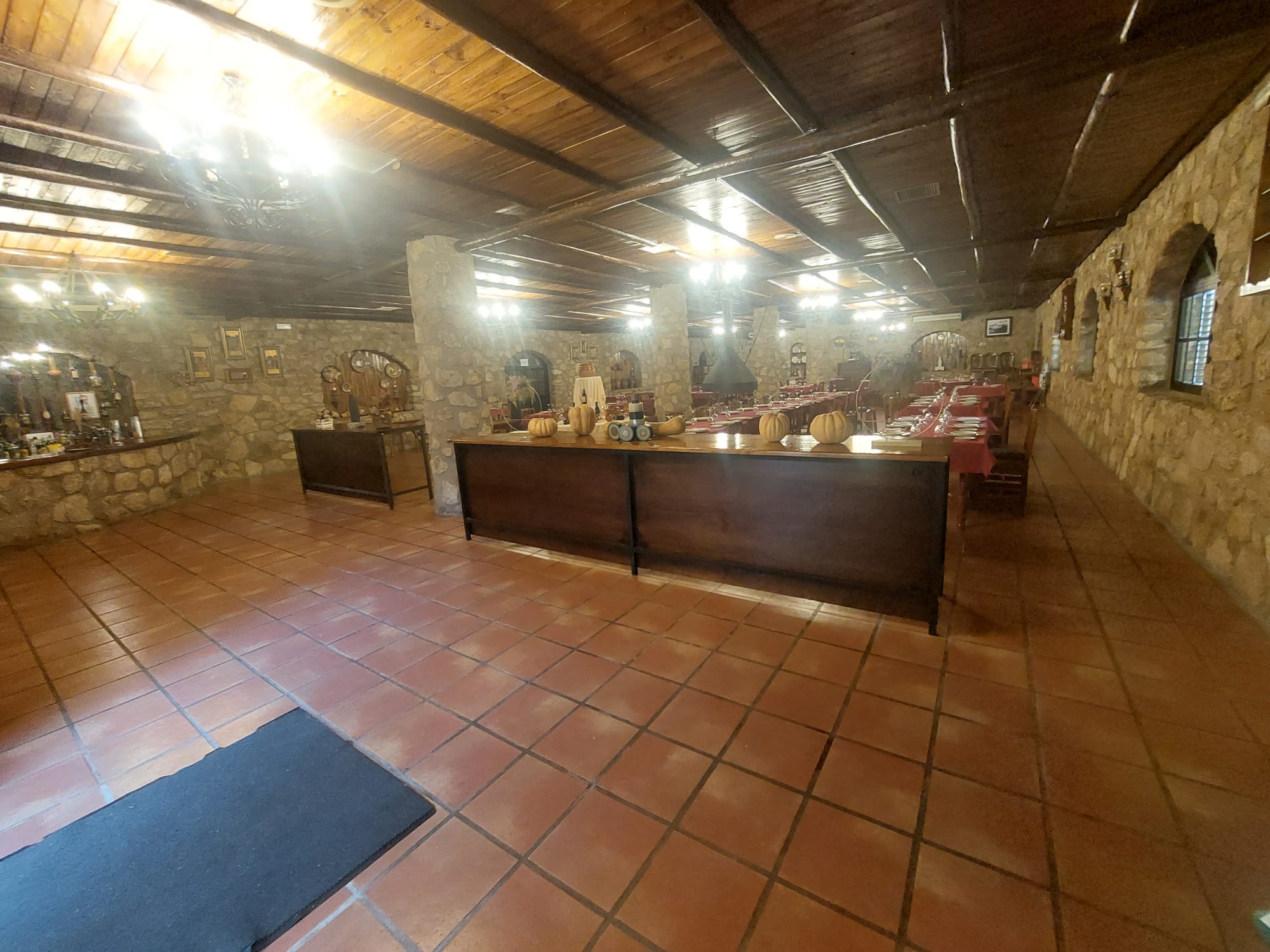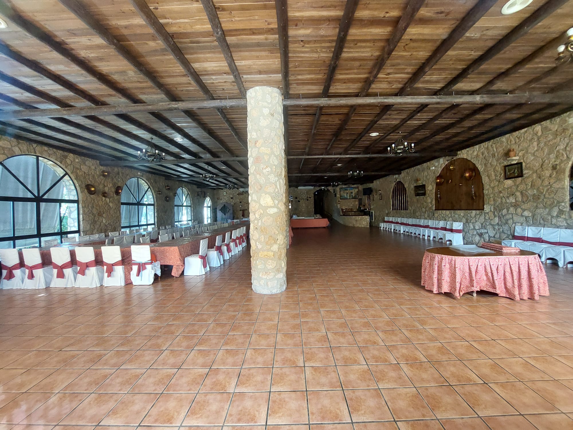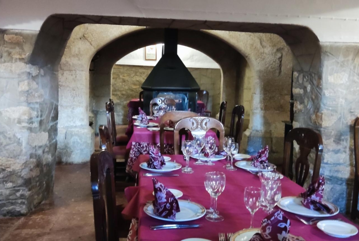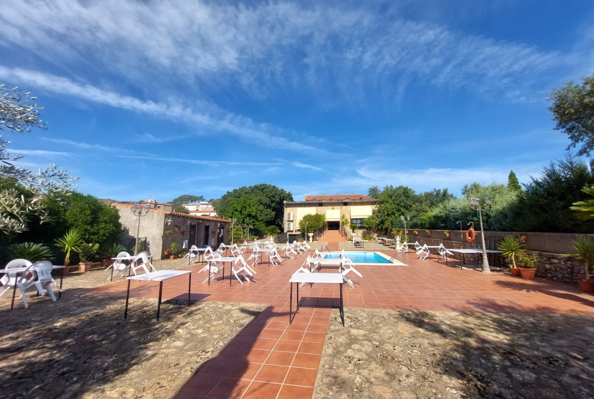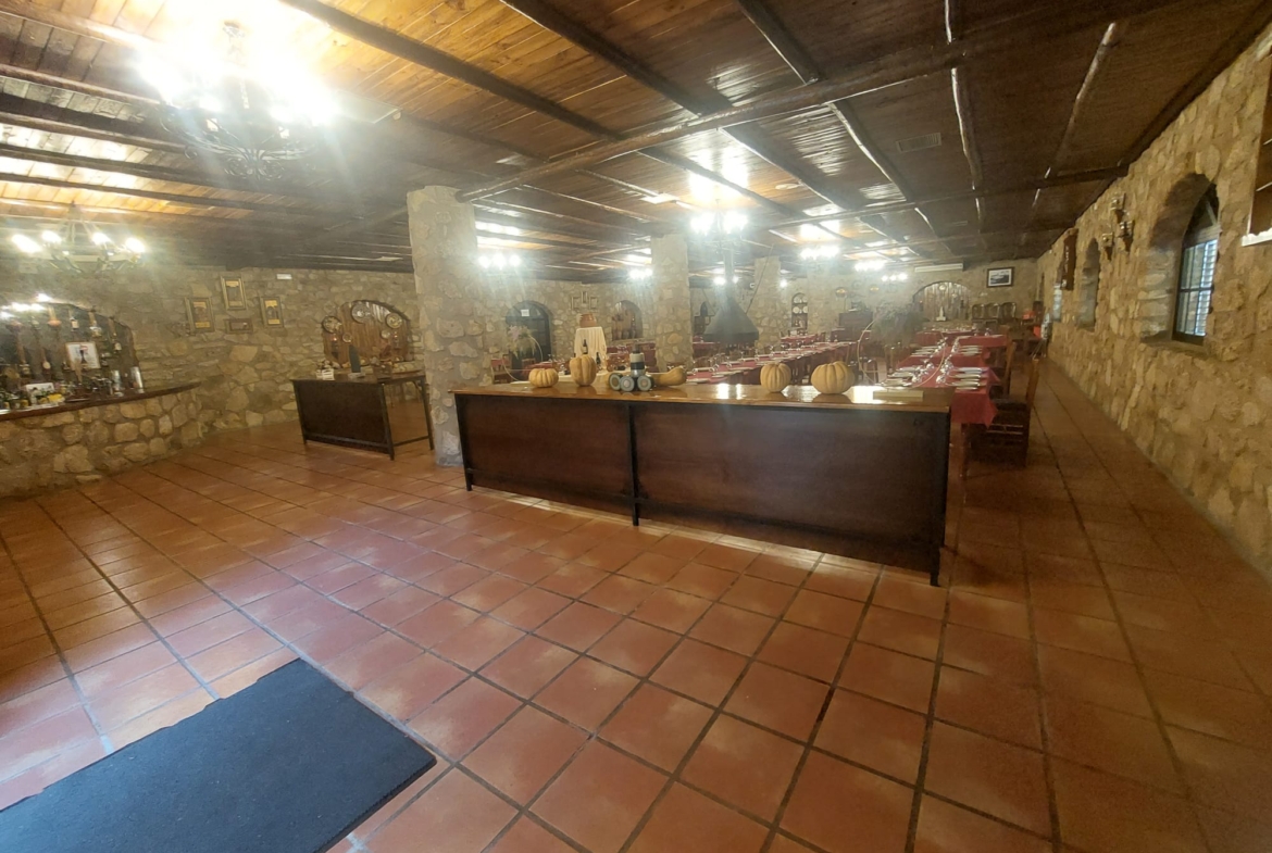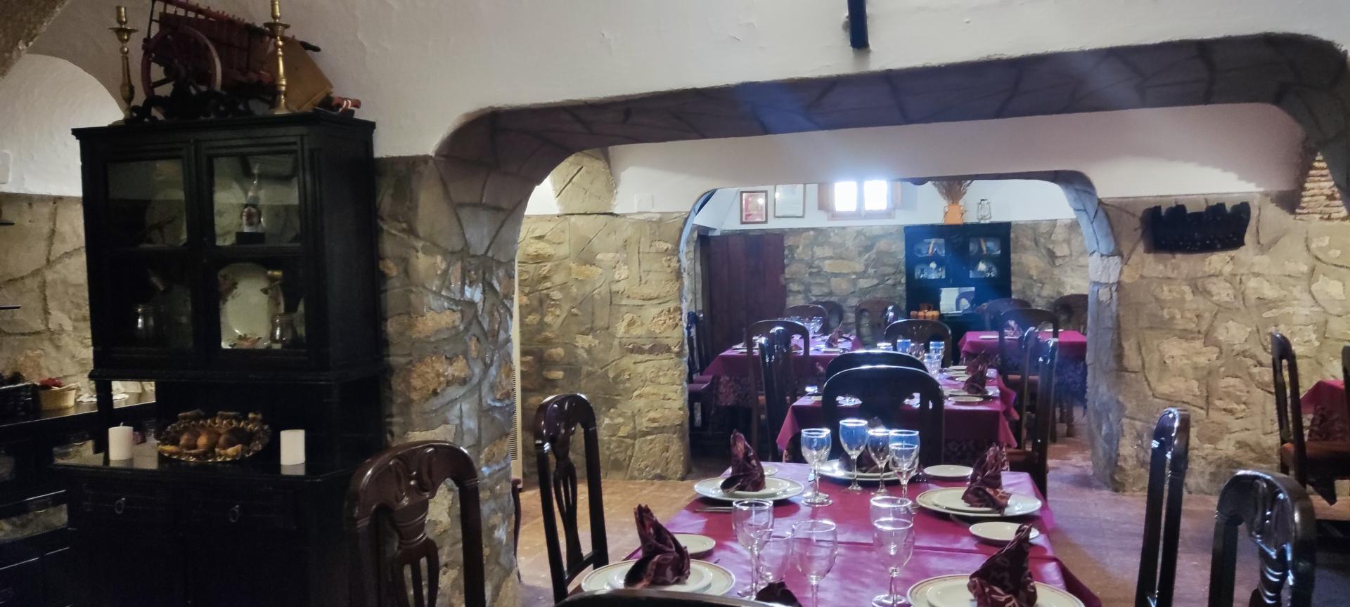El restaurante cuenta con soberbio claustro comedor y dos amplios salones para celebraciones o eventos, unido a un extenso parking para sus clientes. Dispone además de extensas zonas comunes, sumando amplias terrazas y coquetos jardines posteriores. Dispuestos tanto para el disfrute como para el recreo, contando para ello con pista de pádel junto a una generosa piscina de agua salada.