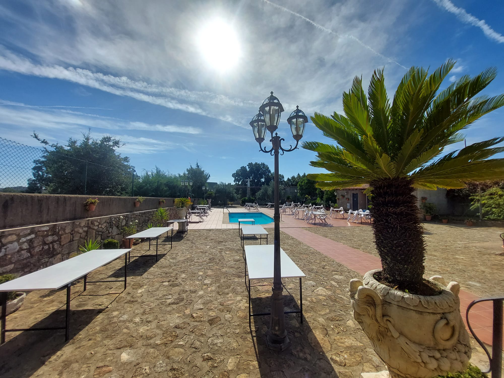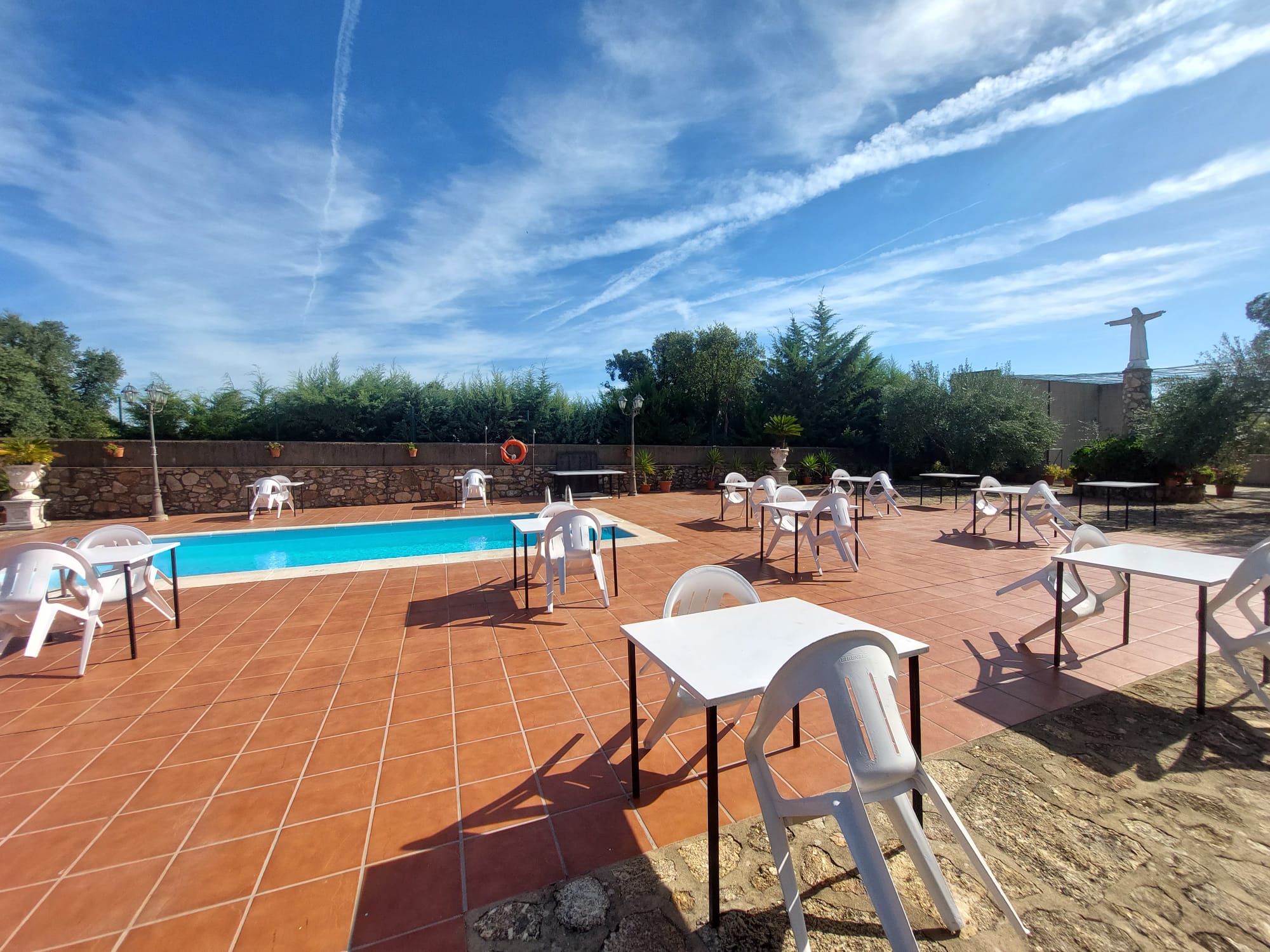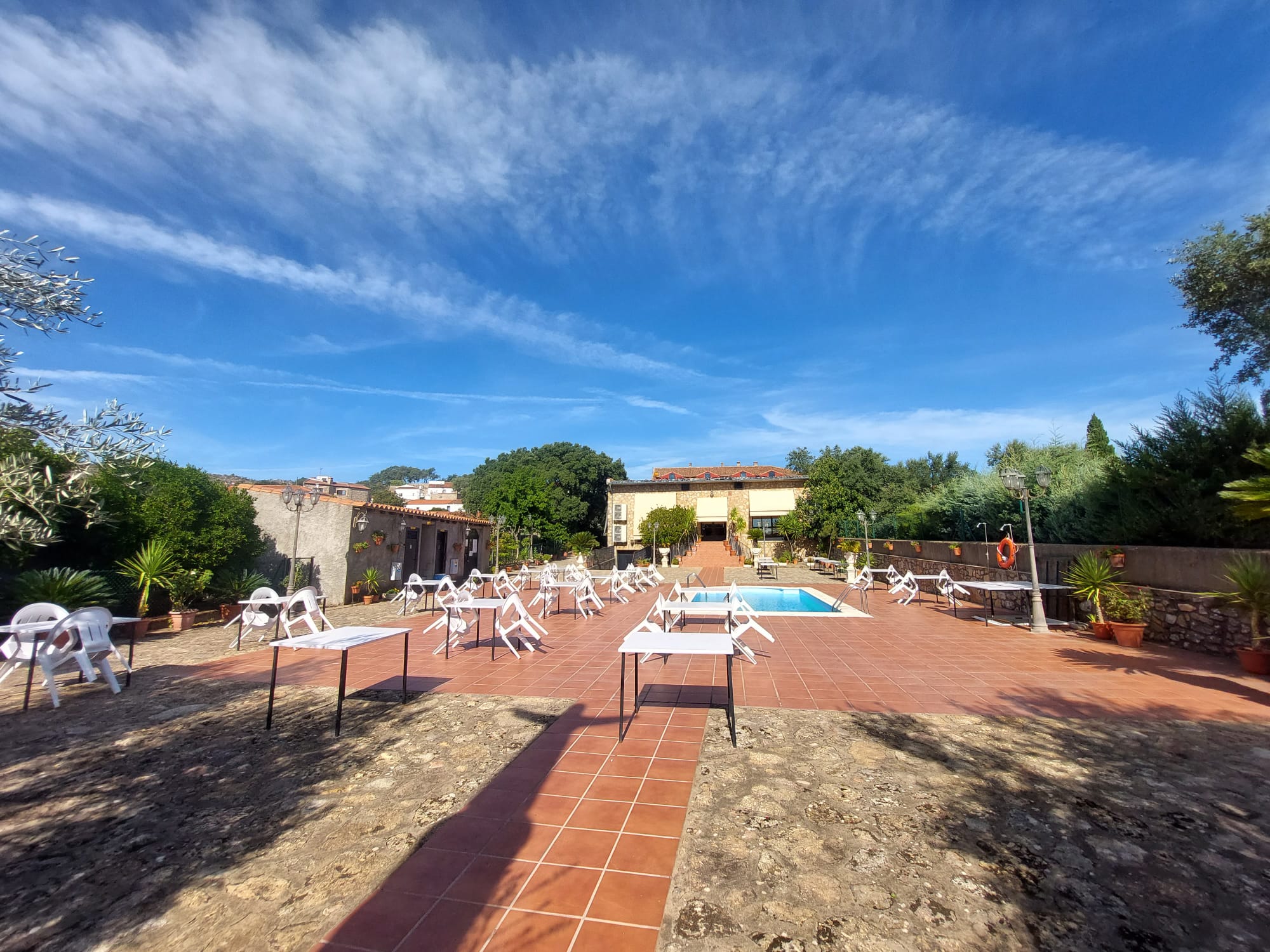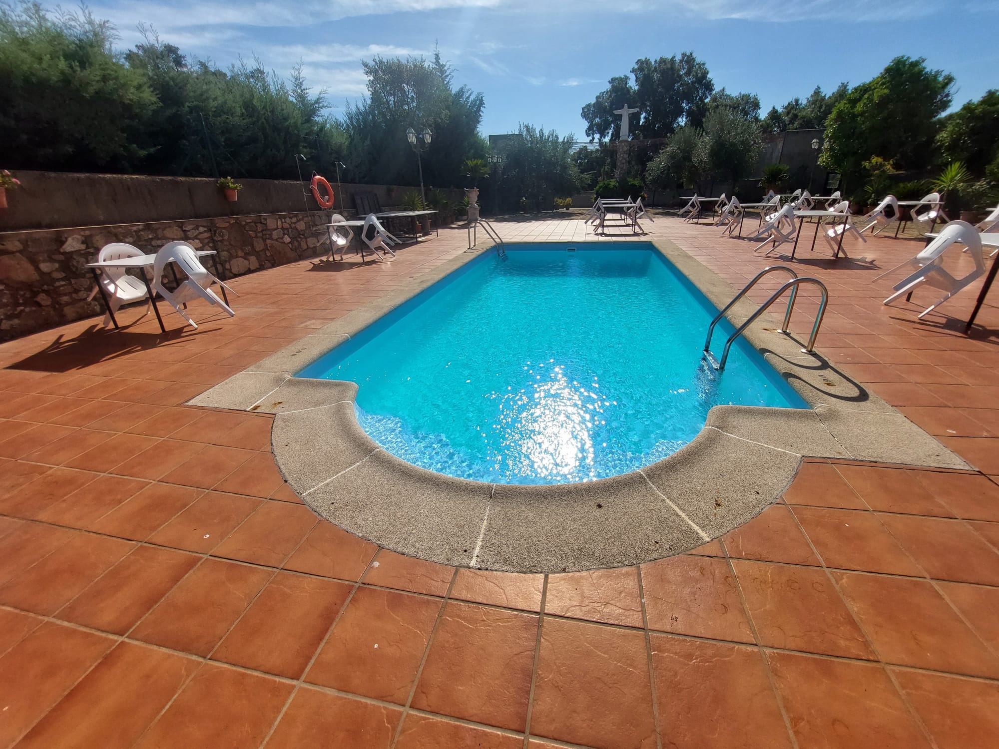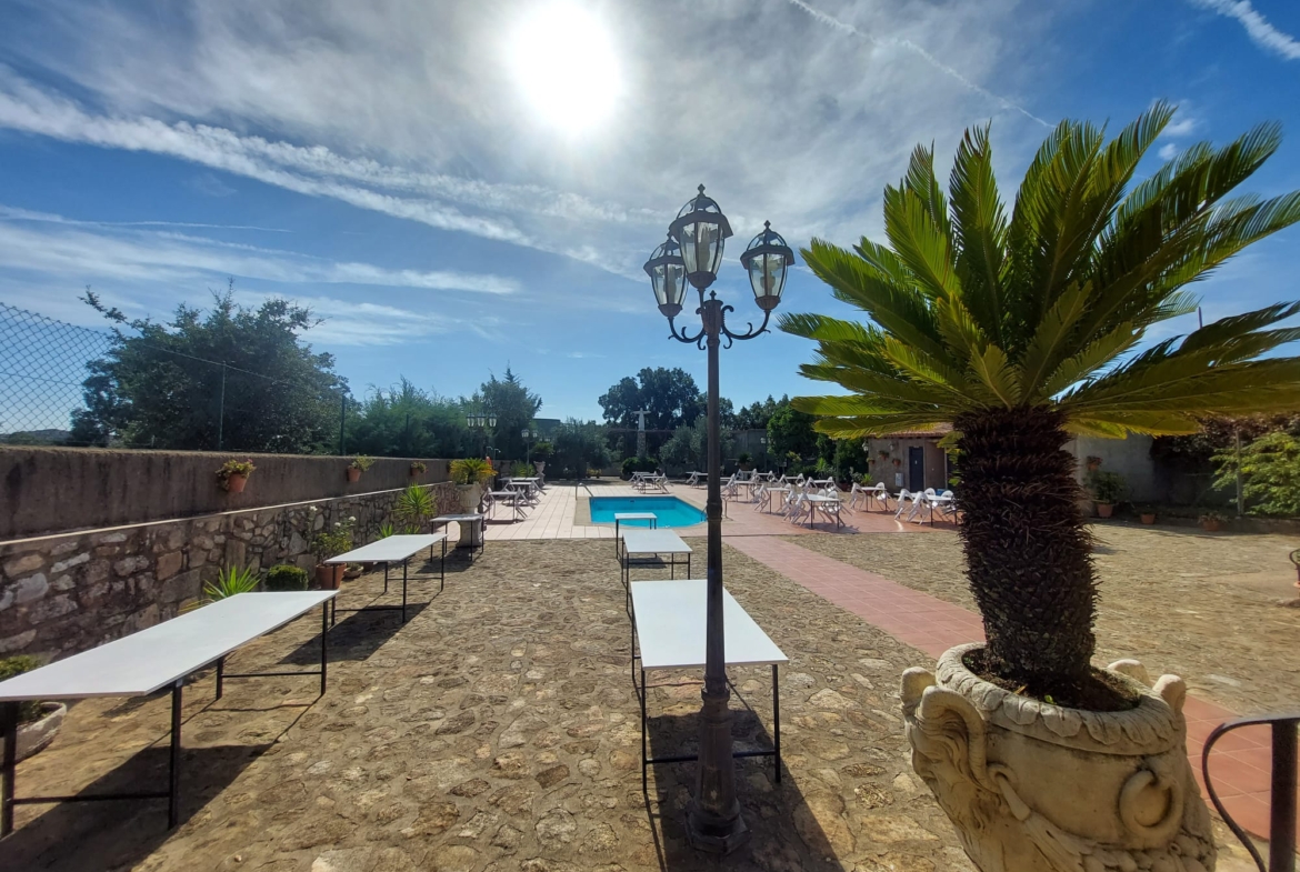 El restaurante cuenta con soberbio claustro comedor y dos amplios salones para celebraciones o eventos, unido a un extenso parking para sus clientes. Dispone además de extensas zonas comunes, sumando amplias terrazas y coquetos jardines posteriores. Dispuestos tanto para el disfrute como para el recreo, contando para ello con pista de pádel junto a una generosa piscina de agua salada.