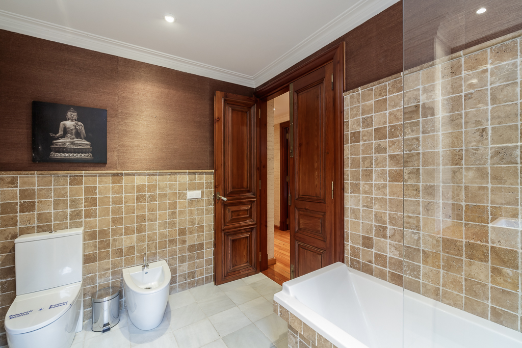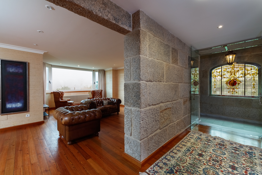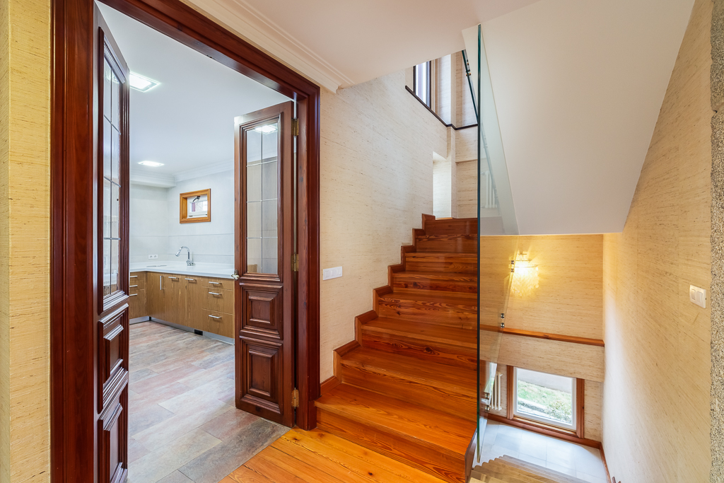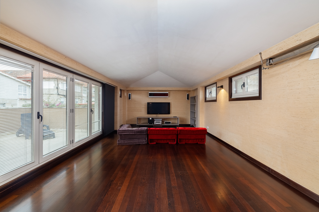 En la segunda planta, el dormitorio principal con baño y generoso y vestidor y salida a una terraza con vistas a la ría. En esta misma planta, otro dormitorio, con salida a terraza, que por su gran tamaño, puede destinarse a salón. zona de esparcimiento. En el sótano, zona de barbacoa, con horno de leña. y acceso a la fabulosa piscina climatizada para ser usada durante todo el año.