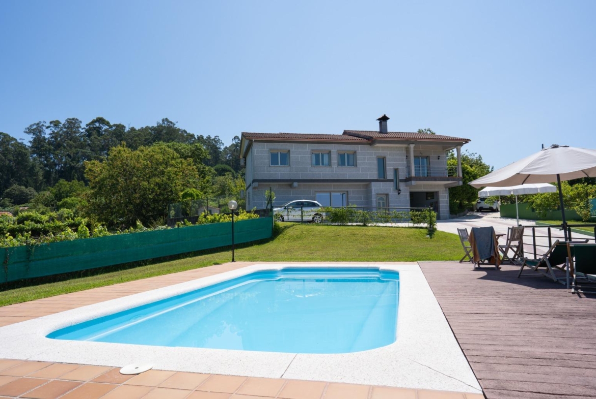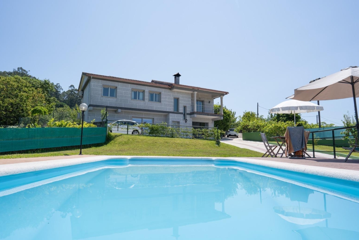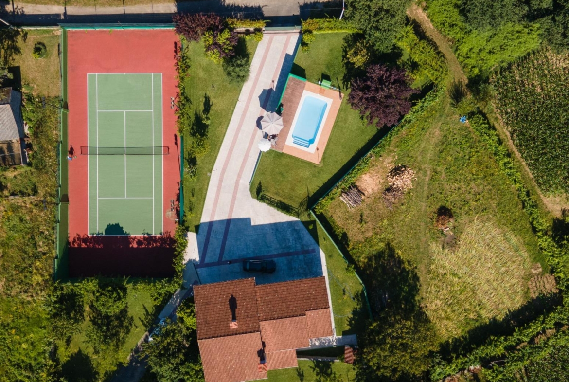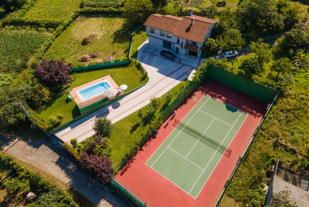 Este chalet independiente se encuentra en el lugar A Poza, en la zona de San Miguel de Cabreira, entre Salvaterra de Miño y Salceda de Caselas, y cuenta con piscina, pista de tenis, gimnasio y asador y es el sueño de cualquier amante de la naturaleza.