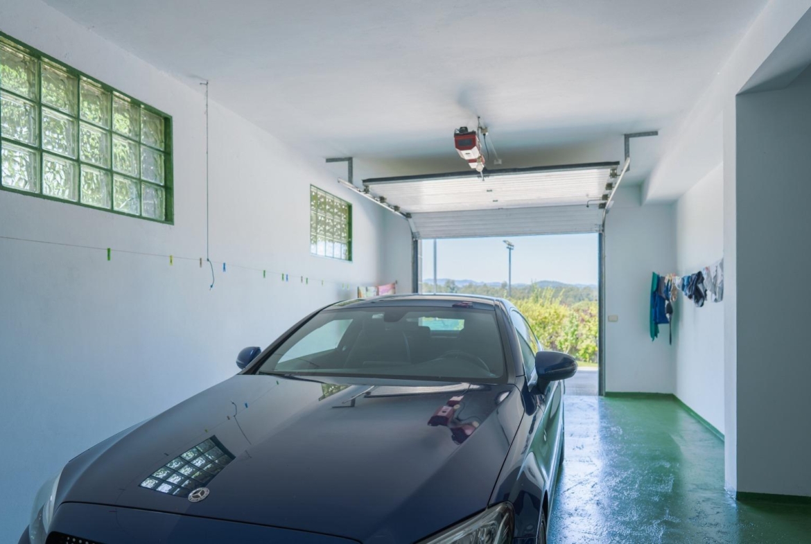 La casa se distribuye en dos plantas. En la parte inferior encontramos el gimnasio, el asador y el garaje con espacio para un coche, además de un baño y acceso directo al jardín. En la planta superior tenemos el salón-comedor con chimenea unido a la cocina y tres dormitorios, el principal con baño en suite, y dos habitaciones individuales.
