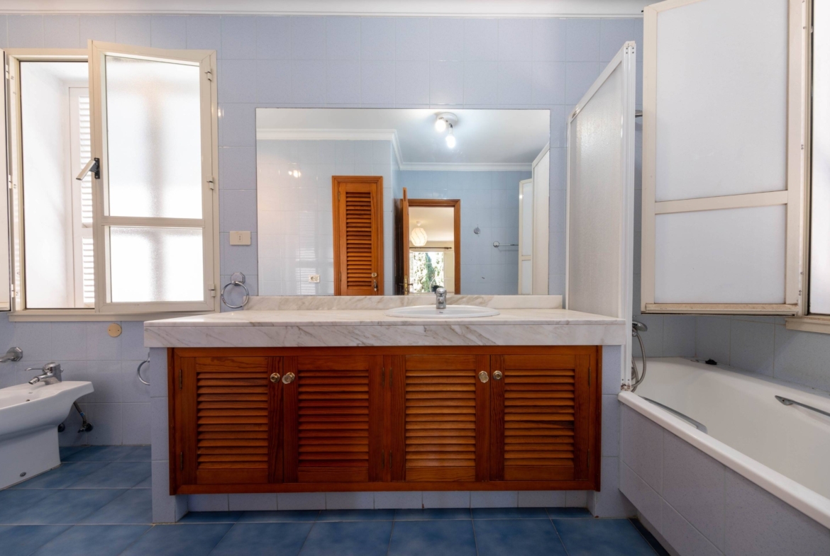 La planta principal cuenta con un salón enorme, completamente exterior, con grandes ventanales que inundan el espacio de luz natural, y una acogedora chimenea que crea un ambiente cálido. Desde aquí se accede al jardín, ideal para disfrutar del aire libre. La cocina, amplia y luminosa, es perfecta para reuniones familiares, con espacio más que suficiente para disfrutar mientras cocinas.