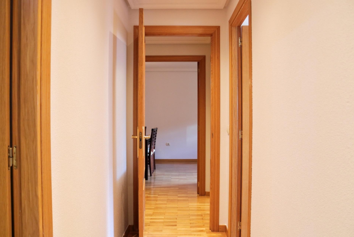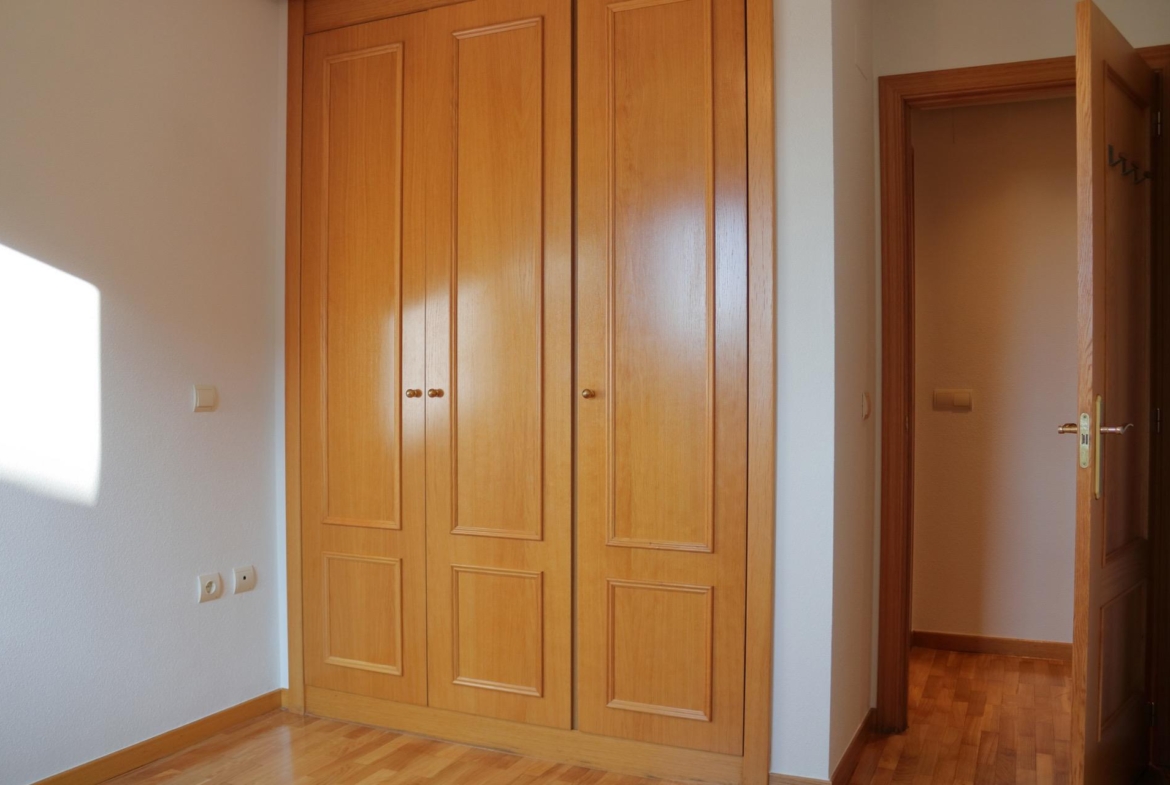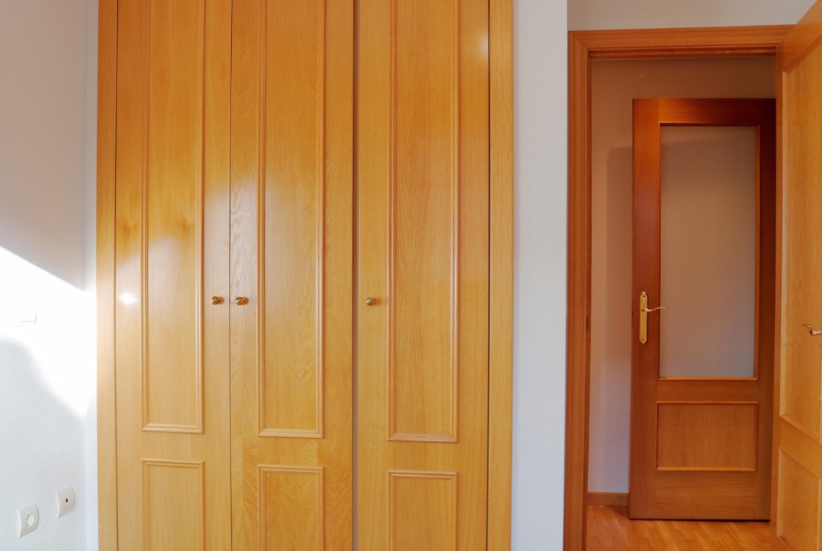 El piso cuenta con dos habitaciones. La principal, con un armario empotrado que optimiza el espacio, se convierte en un refugio personal: un lugar tranquilo donde descansar tras un día agitado, con la luz del atardecer colándose suavemente entre las cortinas. La segunda habitación, igualmente espaciosa y con armario empotrado, es perfecta para adaptarse a tus necesidades: desde un despacho, para trabajar desde casa, hasta una habitación de invitados, con suficiente espacio para que cada uno se sienta cómodo.