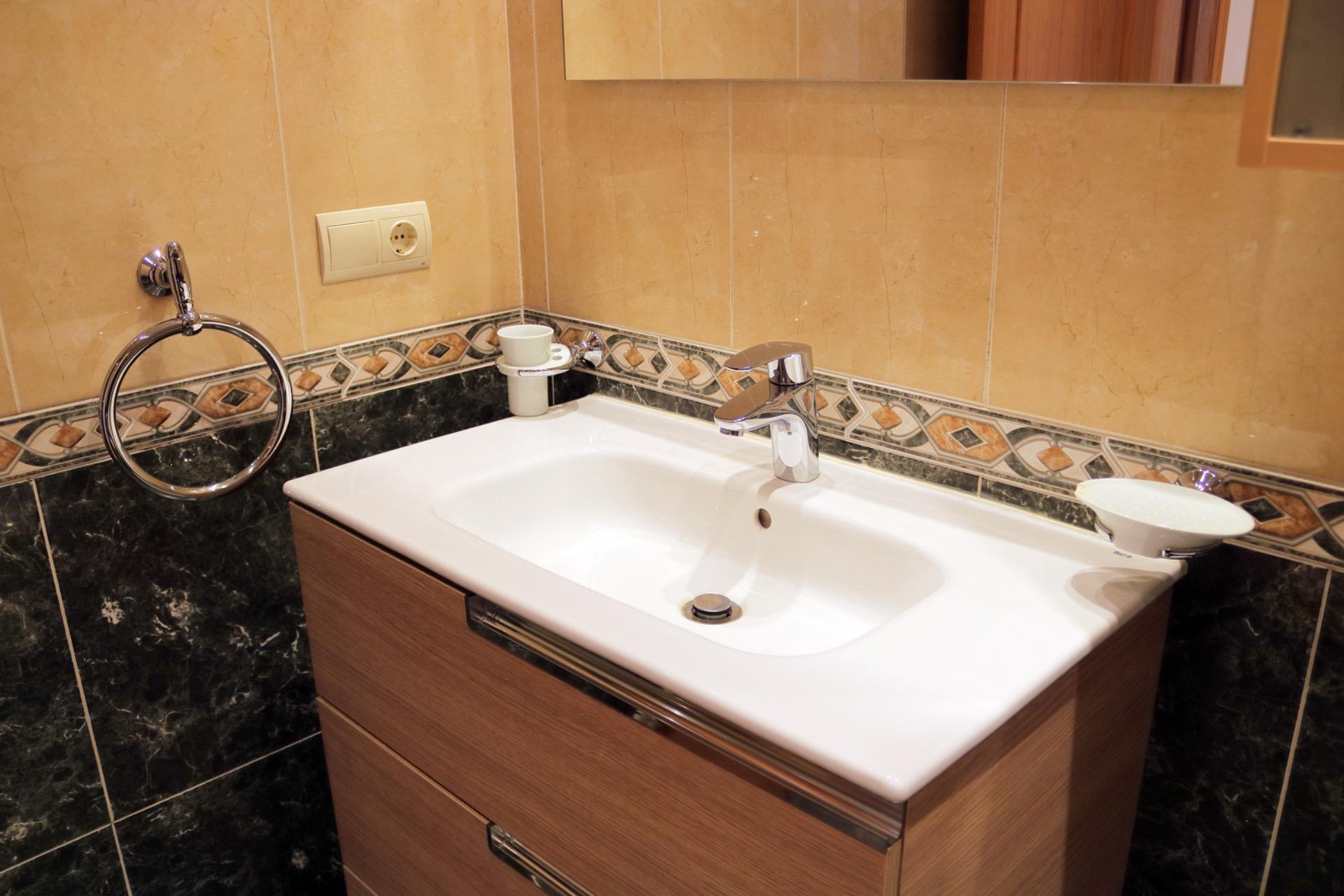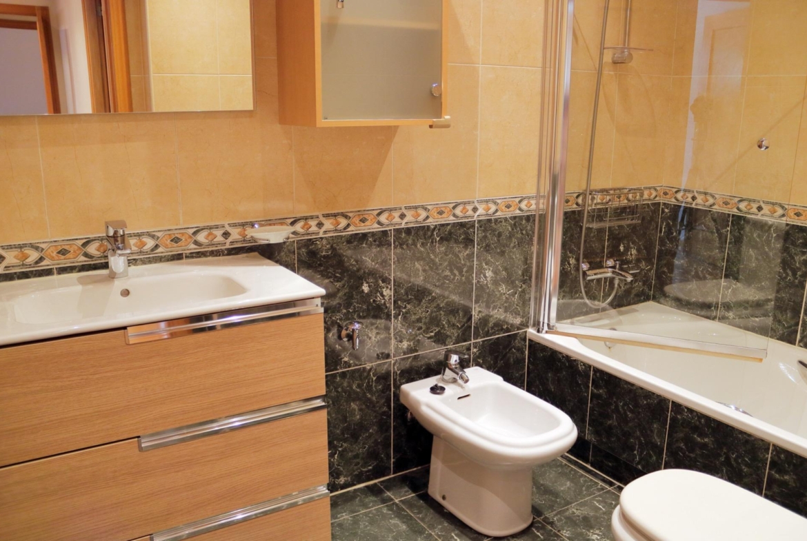 Uno de los puntos fuertes de esta vivienda son sus dos baños, modernos y funcionales. El baño principal, con una moderna bañera y acabados de calidad, es un lugar perfecto para relajarte después de un día largo. El segundo baño, igualmente funcional, tiene ducha y está situado cerca de la segunda habitación, lo que lo convierte en un baño de cortesía ideal para visitas o como espacio adicional para la familia.