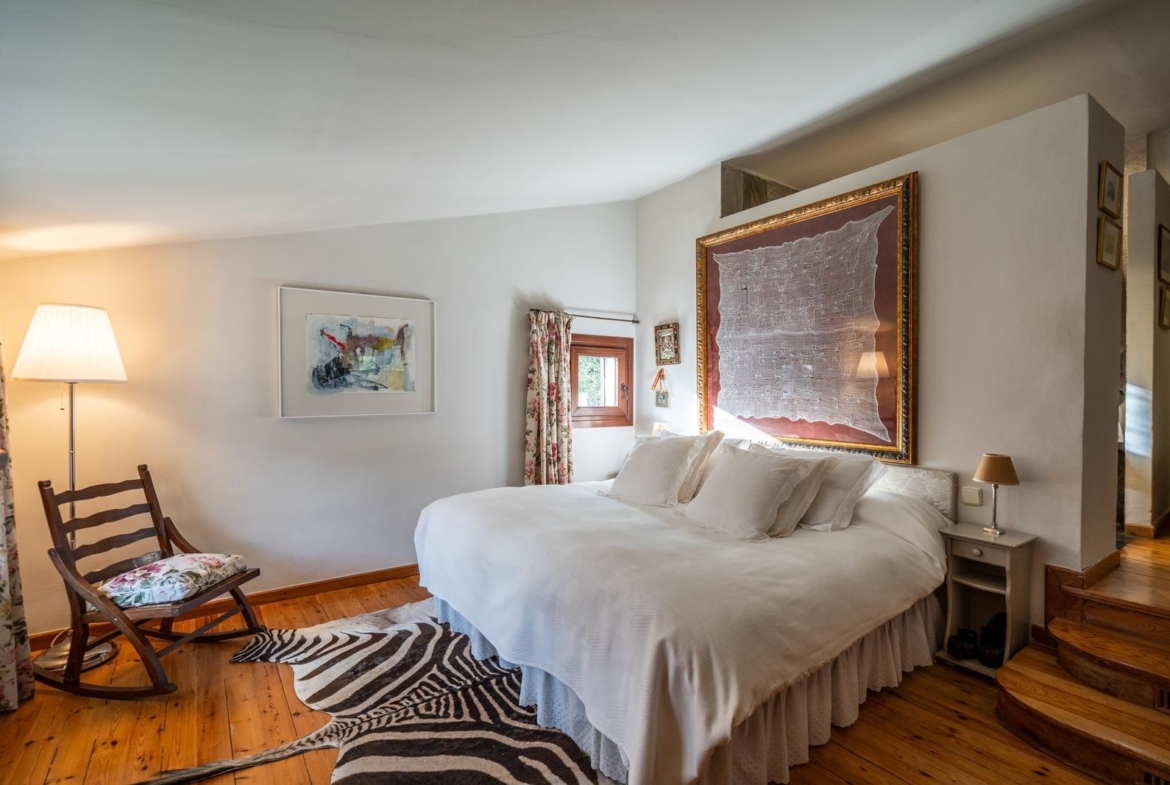 La planta superior está dedicada íntegramente al descanso. Ofrece cuatro dormitorios en total, dos de ellos en suite, uno con ducha y otro con bañera. El dormitorio principal destaca no solo por su amplitud, sino también por su chimenea, que aporta un encanto especial. Un cuarto de baño adicional da servicio a las otras estancias de esta planta.