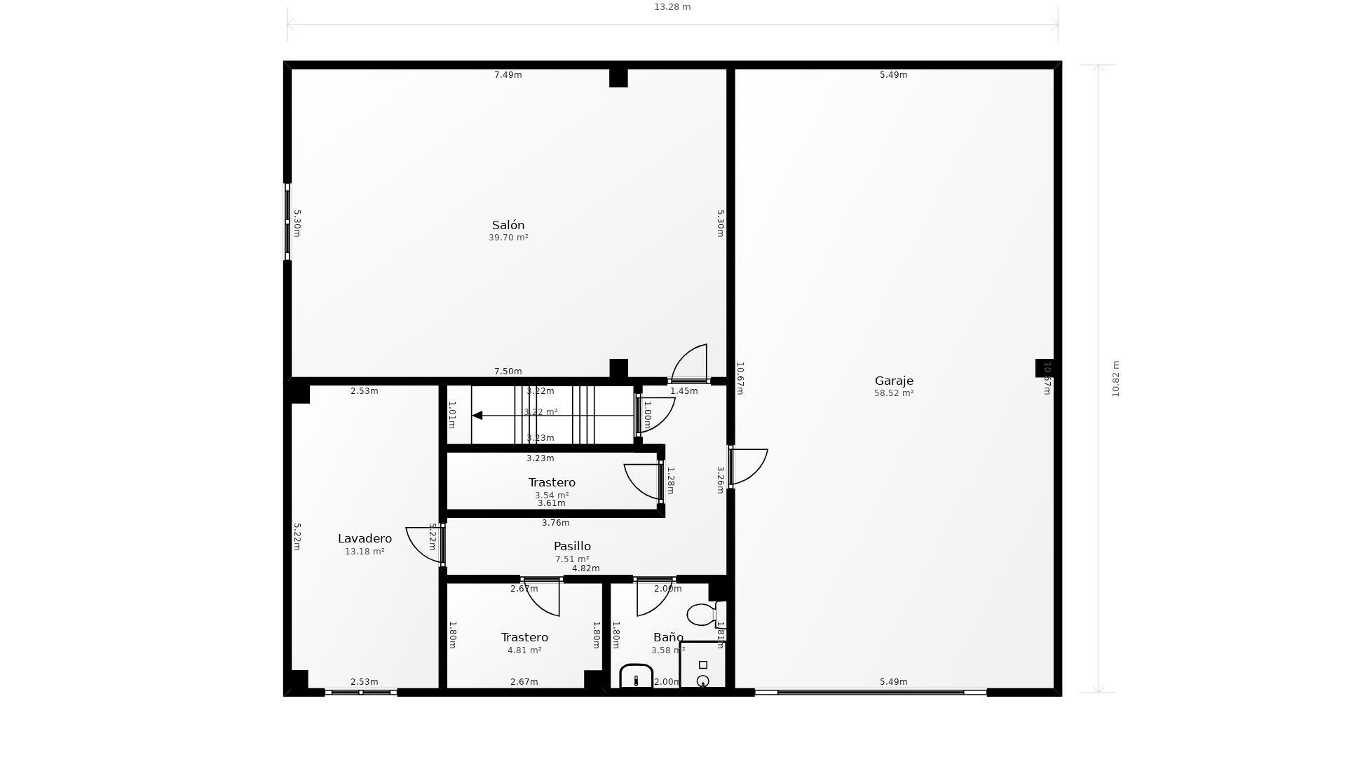 • Planta principal: espectacular salón con chimenea de leña, orientado al sur, que recibe luz solar durante todo el día; una habitación en suite con vestidor y baño; cocina moderna con sensación de recién estrenada y un aseo de exquisito diseño.