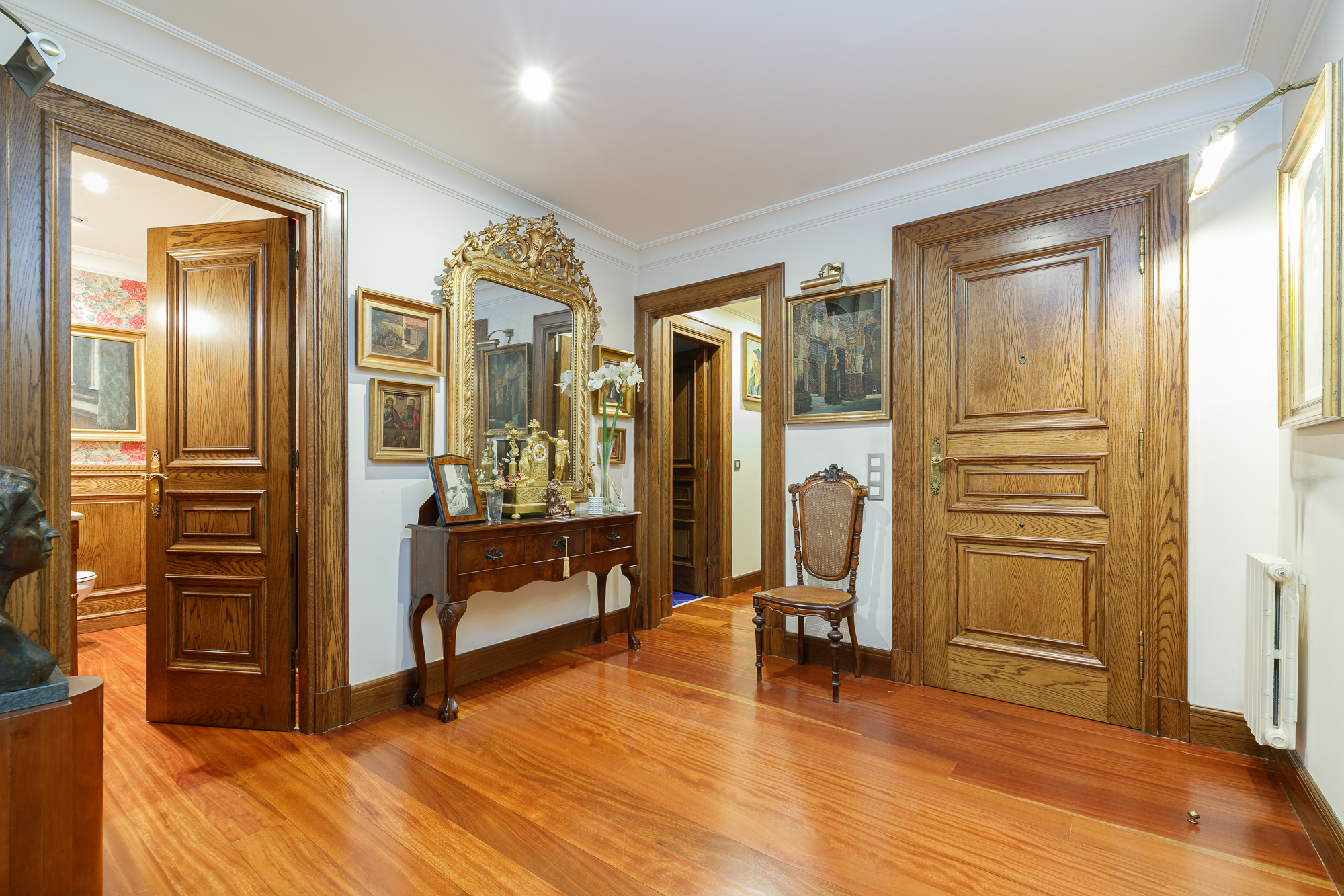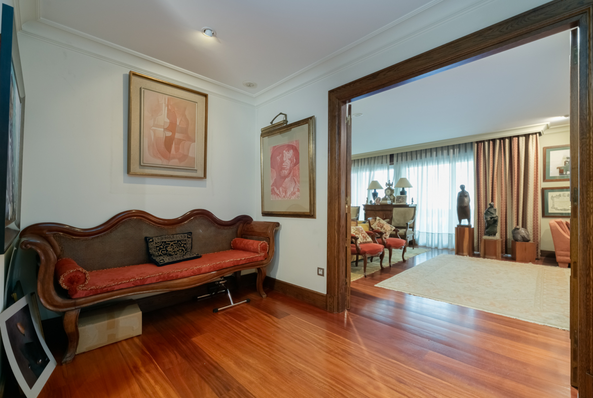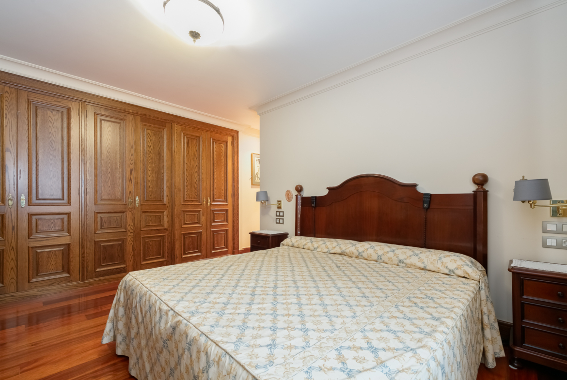En la zona de noche, tres amplios dormitorios y dos baños, uno de ellos integrado en el dormitorio principal, mucho armario y almacenaje, las mejores calidades, y la sensación de vivir en un piso único y exclusivo.