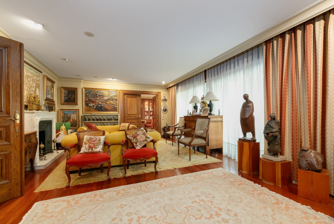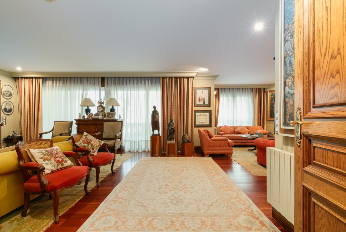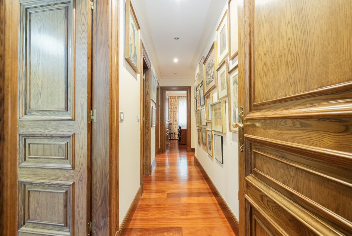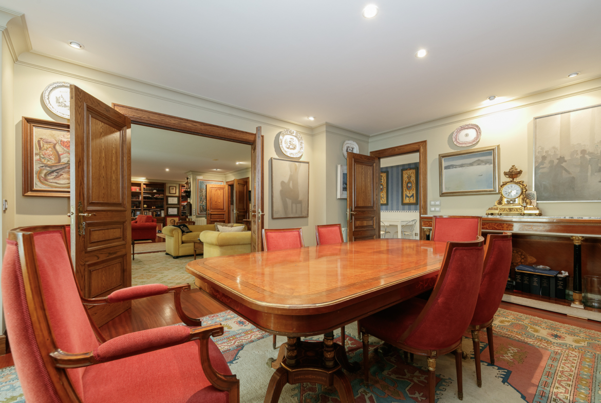 Un amplio vestíbulo nos recibe y nos conduce a un gran salón, con salida a una preciosa terraza, un despacho y un espacioso comedor.