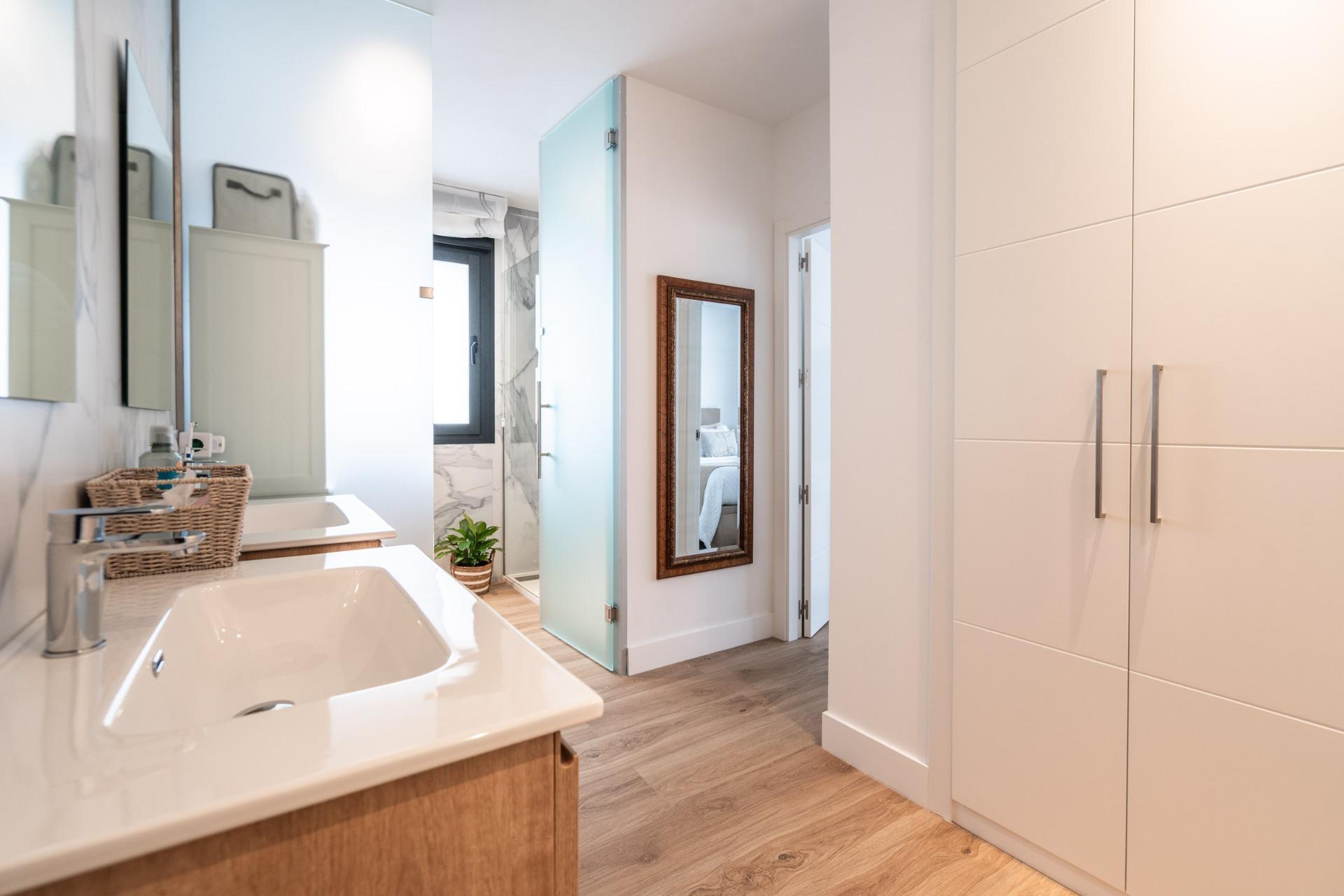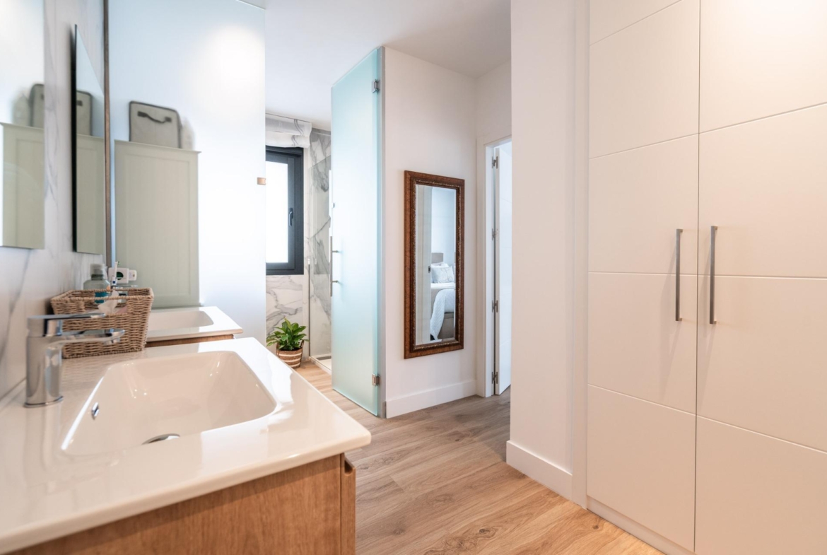 Entre sus calidades destacan los armarios empotrados, sistema de alarma, vigilancia 24 horas, placas solares y calefacción por aerotermia, una solución eficiente y sostenible que garantiza confort durante todo el año.