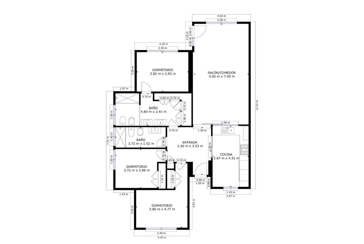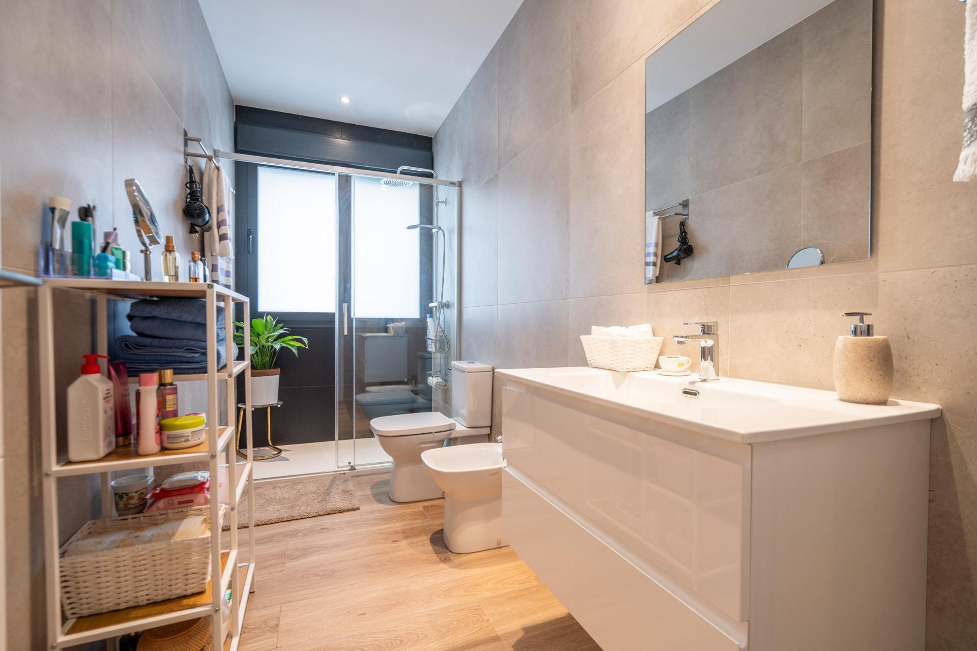 La vivienda dispone de tres habitaciones dobles y dos cuartos de baño completos. El dormitorio principal cuenta con baño en suite y salida directa a la terraza, proporcionando un espacio íntimo y exclusivo. Además, la propiedad incluye plaza de parking, sótano y trastero, ofreciendo soluciones prácticas de almacenamiento.