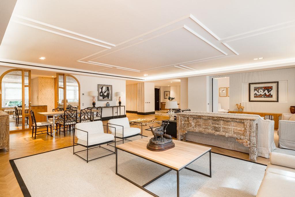 Este impresionante inmueble, de 380m2, combina diseño excepcional y materiales de primera calidad, situado en una distinguida finca de 1960, está ubicado estratégicamente entre los prestigiosos barrios de Salamanca y el Viso.
