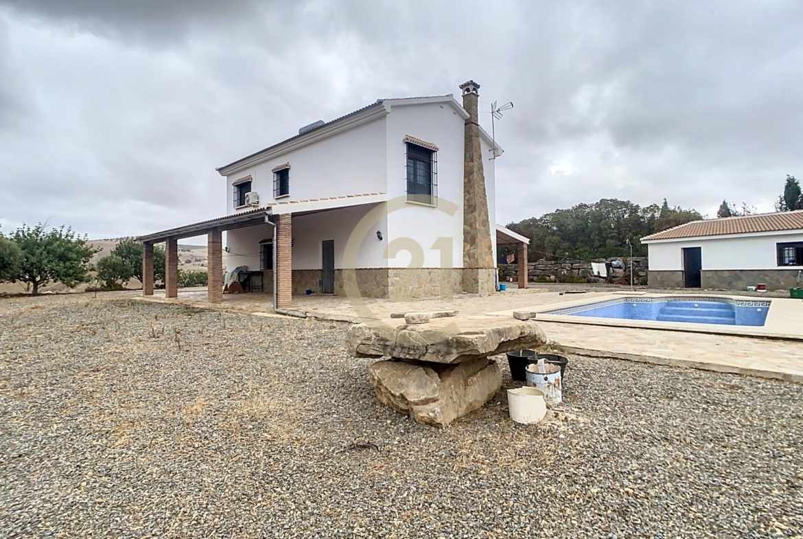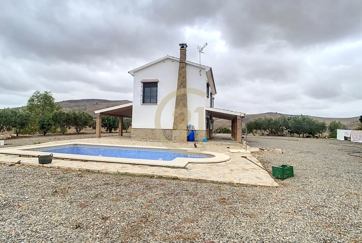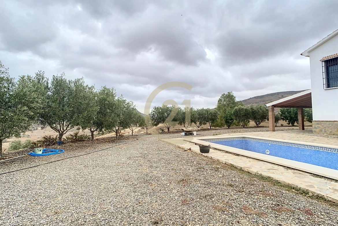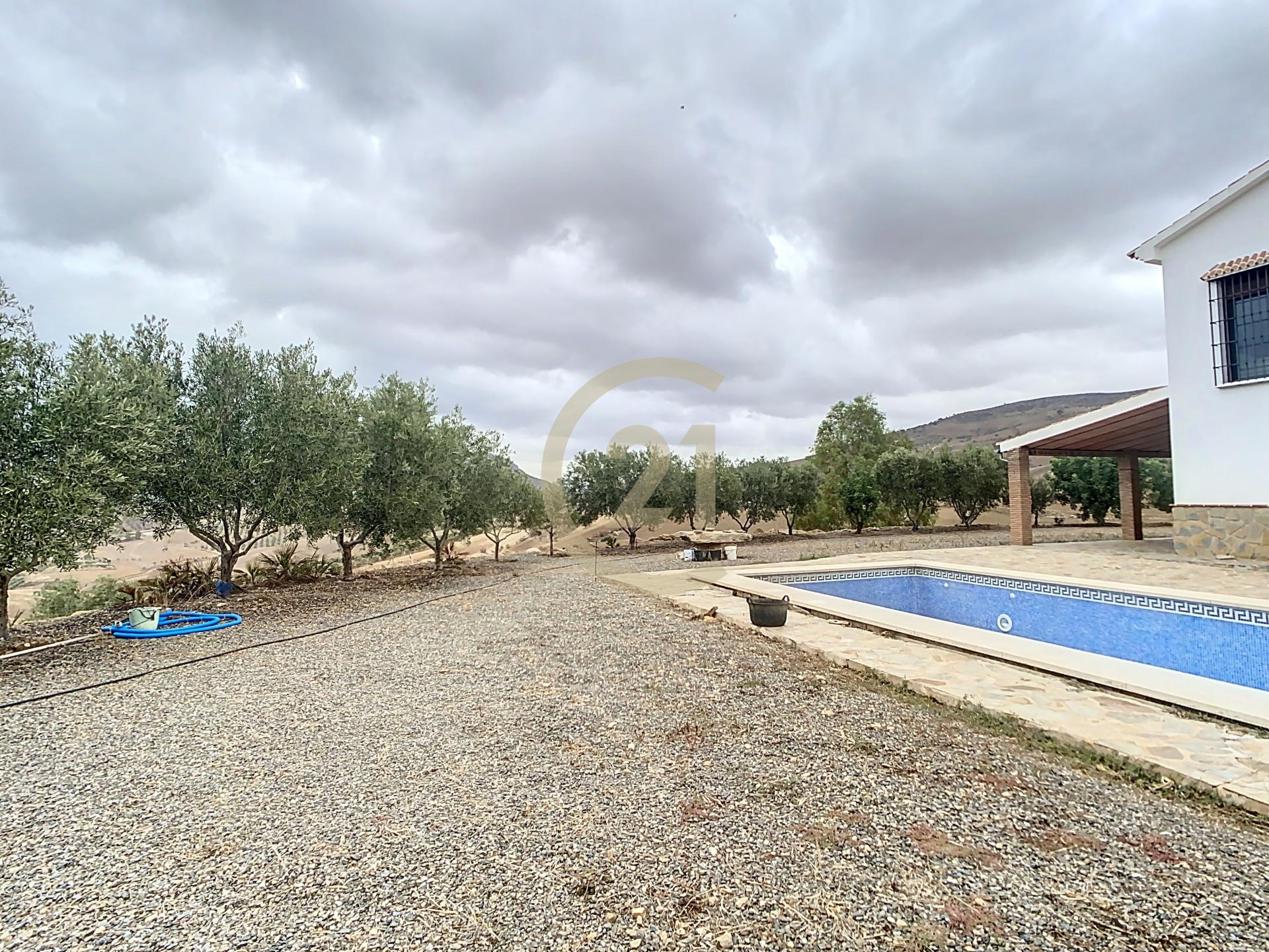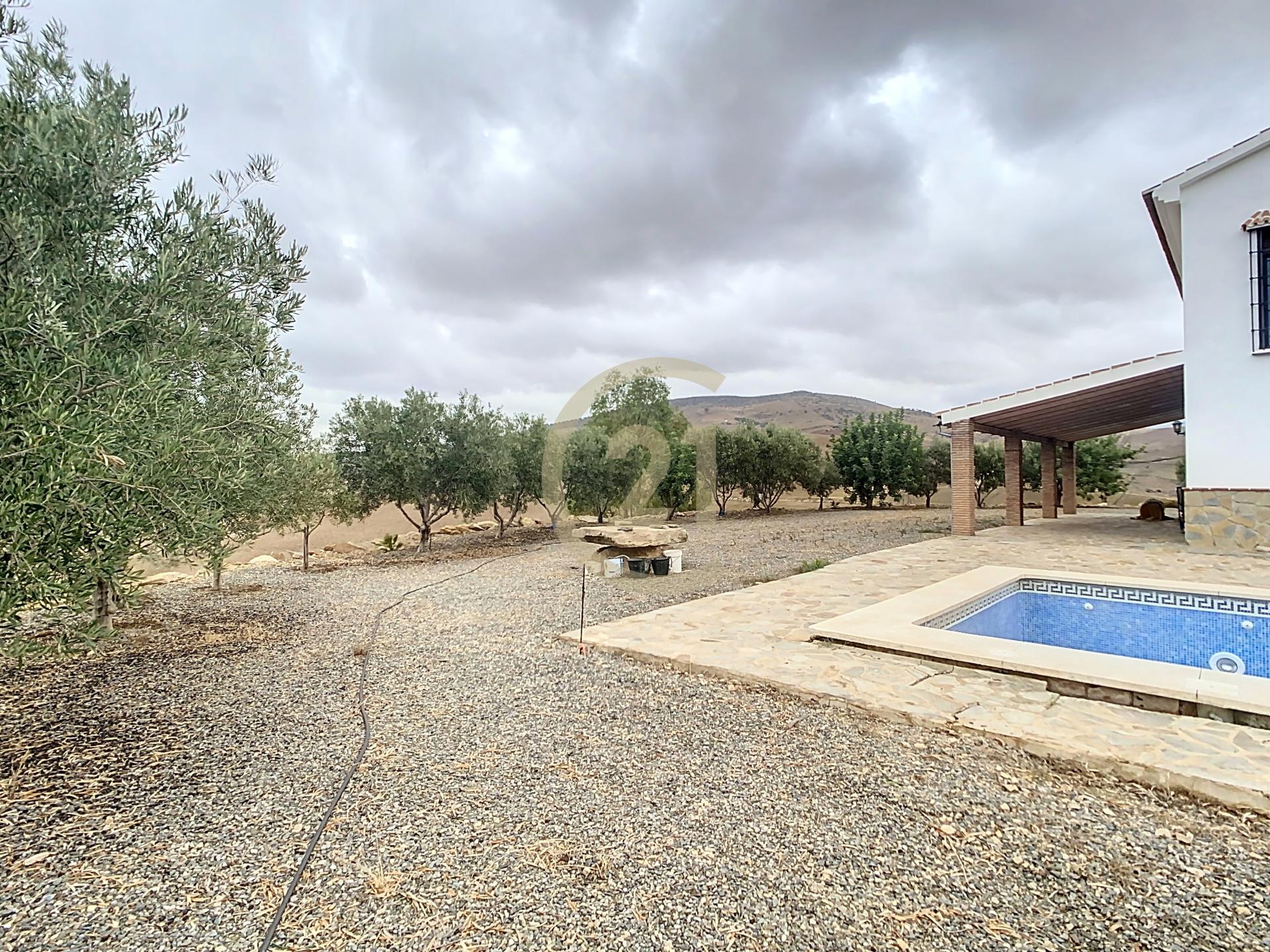Bienvenidos a esta encantadora casa de campo con olivos, de cultivo ecológico, en ´Álora, Esta propiedad única ofrece una combinación perfecta de comodidad y encanto tradicional, con amplios espacios interiores, una piscina privada y vistas impresionantes a los campos de olivos circundantes.