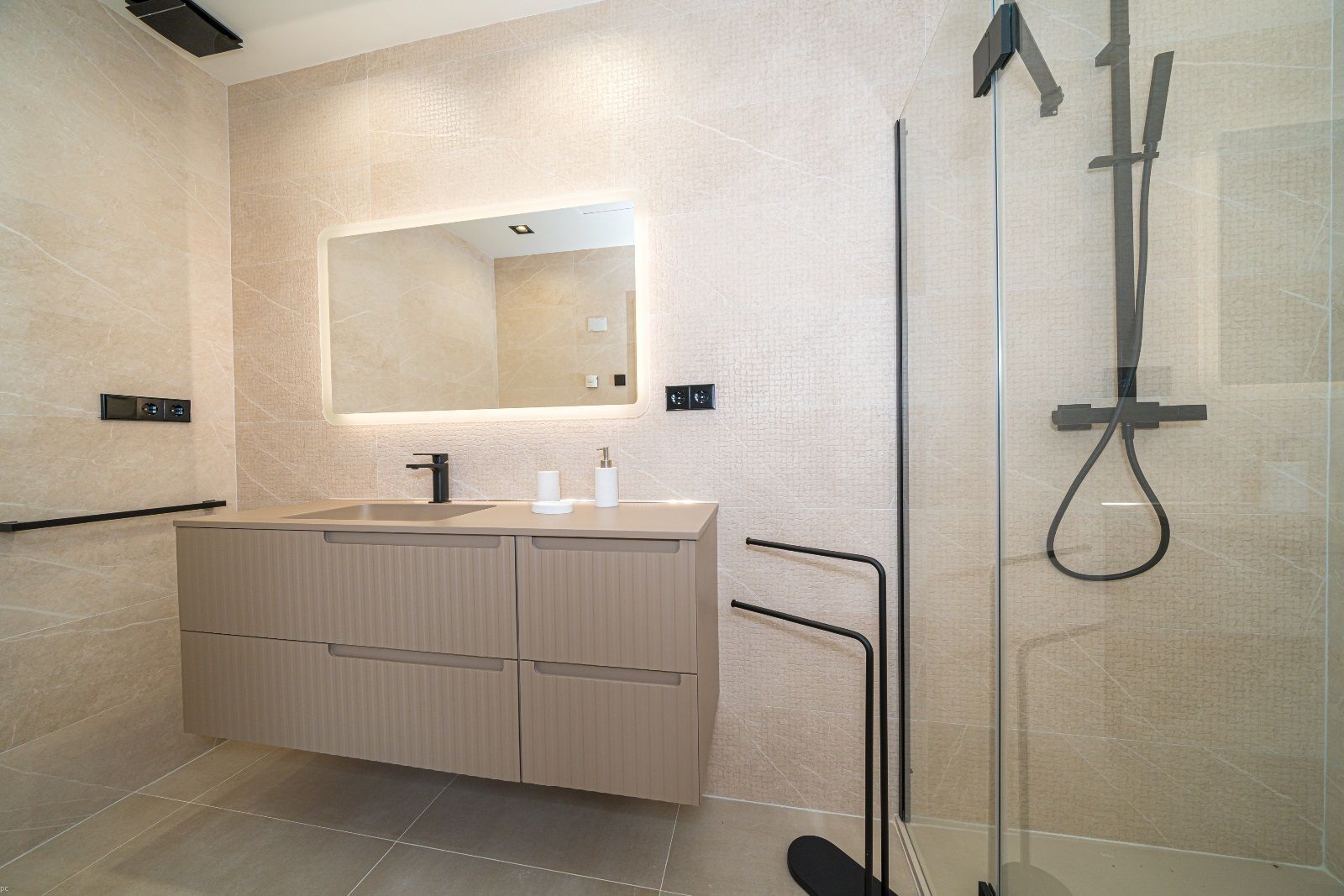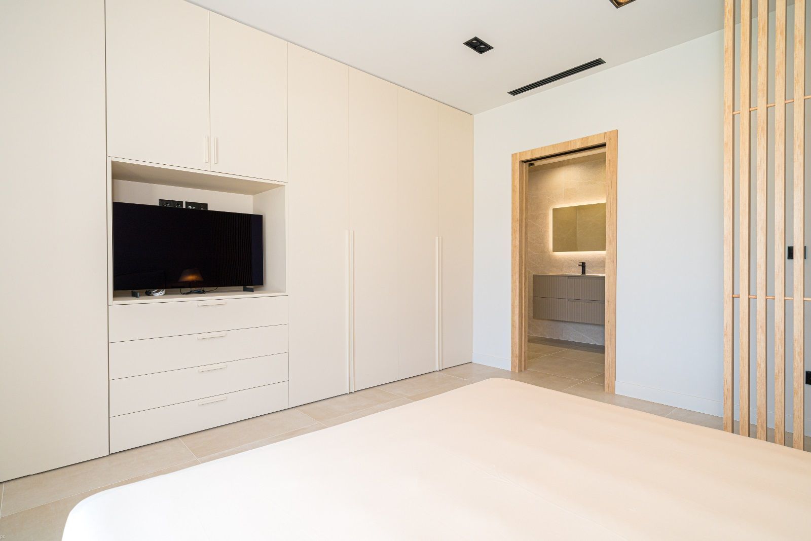 La propiedad cuenta con tres habitaciones espaciosas, cada una de ellas con su propio baño privado. Cada detalle en estas habitaciones ha sido cuidadosamente seleccionado, desde los suelos radiantes hasta los armarios empotrados, que brindan estilo y una solución de almacenamiento perfecta.