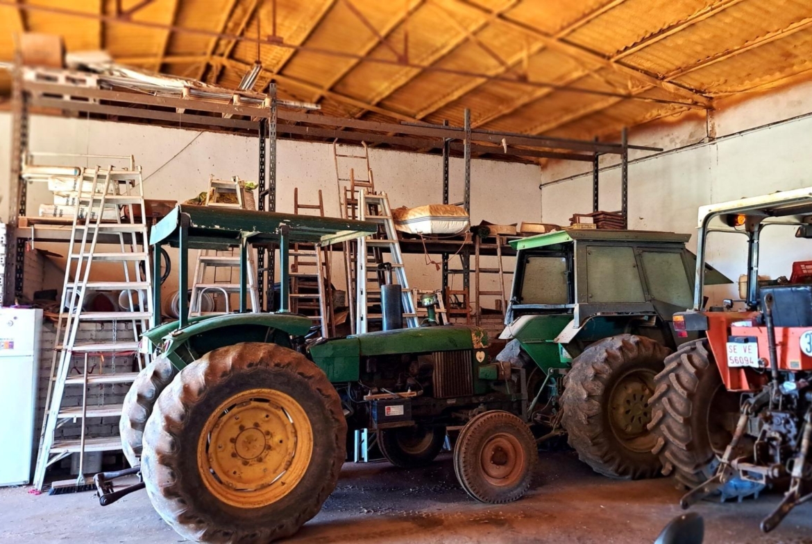 La finca cuenta con una serie de edificaciones aptas para el desarrollo de la actividad, ya que se trata de una explotación activa de olivos que cuenta actualmente con 3.000 gordales y 1.500 manzanillo, cumpliendo con todas las normativas y permisos correspondientes a dicha actividad. Toda ella abastecida con riego por goteo.
