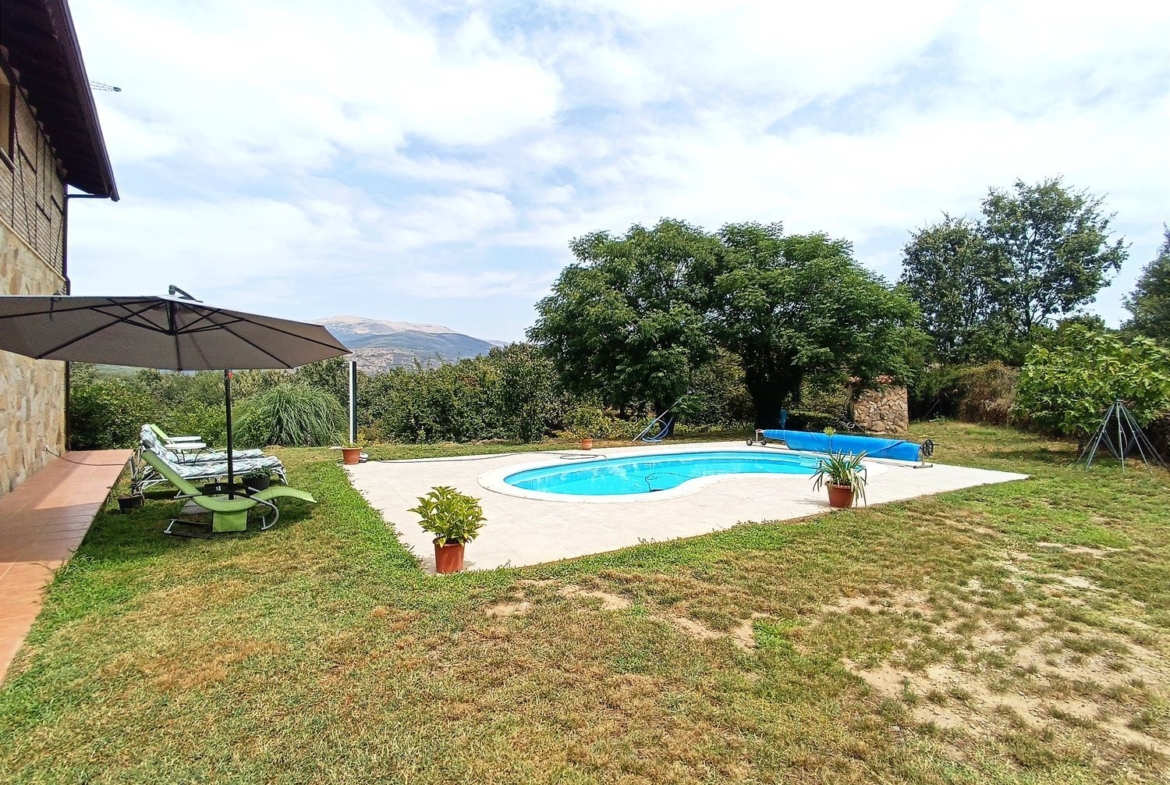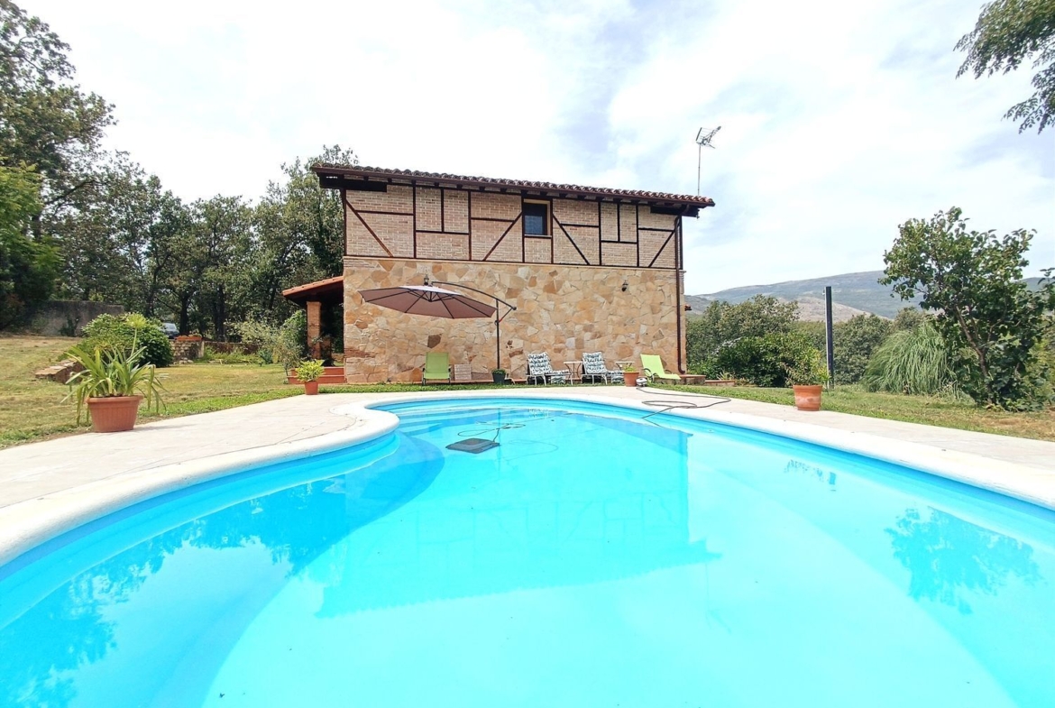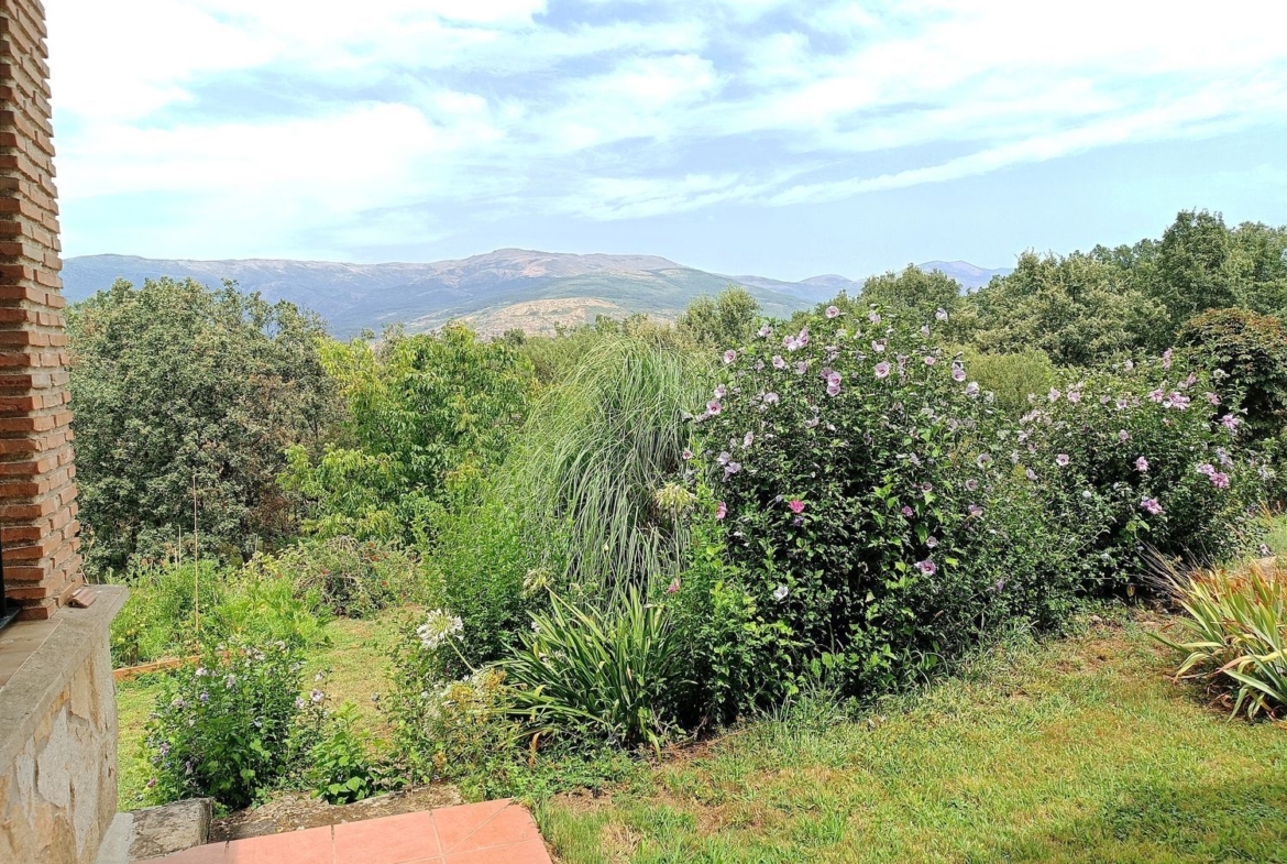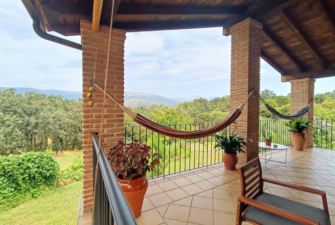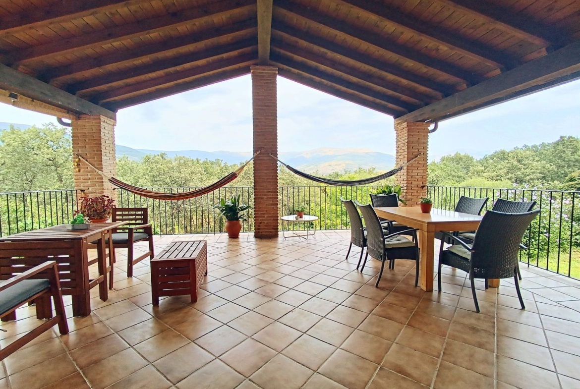 – Espacios Exteriores Únicos: Finca vallada con cuatro accesos, árboles frutales, un arroyo de agua limpia que fluye todo el año, y un porche donde relajarse y disfrutar de las vistas contemplando la Sierra de Gredos.
