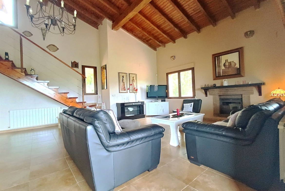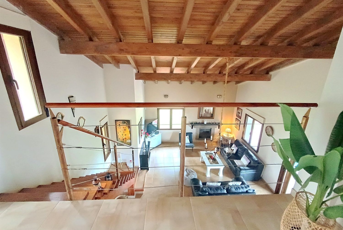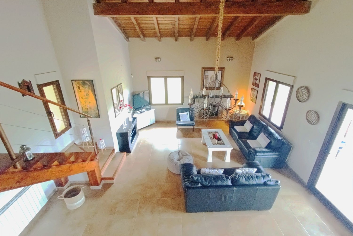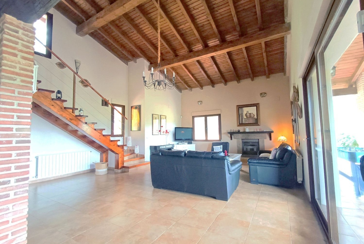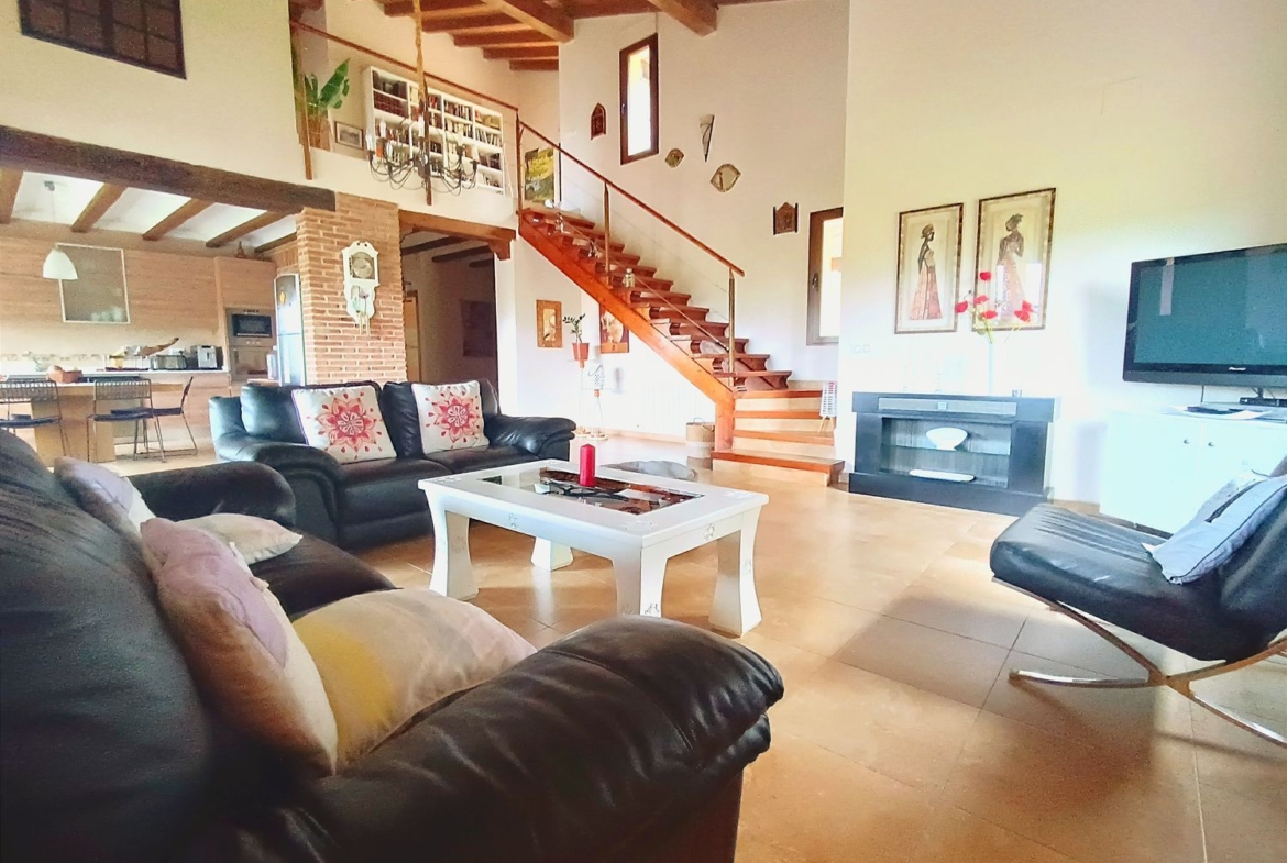 – Ambientes Cálidos, modernos y Acogedores: Techos interiores de madera con vigas vistas, chimenea de hierro fundido, y un porche con vistas a la Sierra de Gredos y al Monasterio de Yuste.