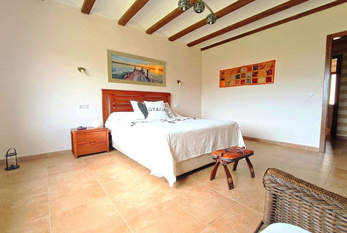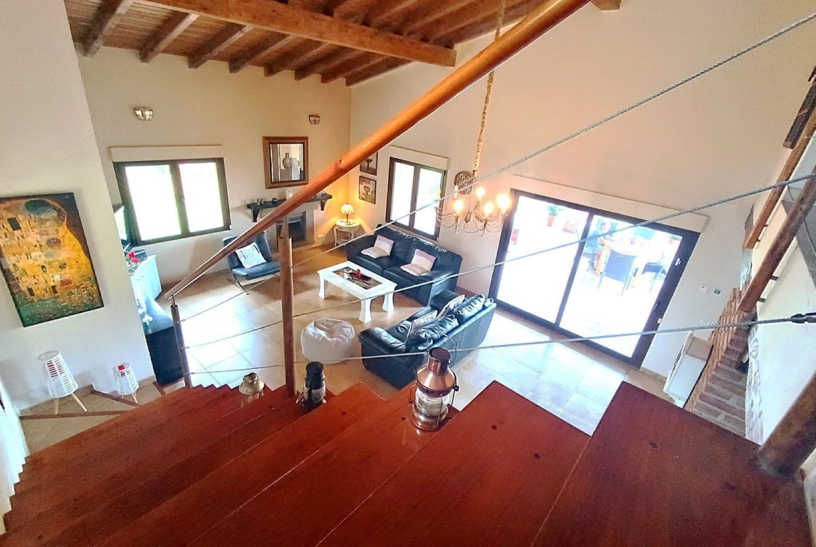 – Sostenibilidad y Confort: Paneles solares para agua caliente, caldera mixta de gasoil, y tres pozos que abastecen el sistema de riego y piscina.