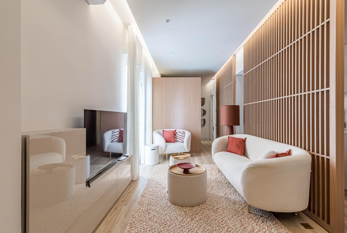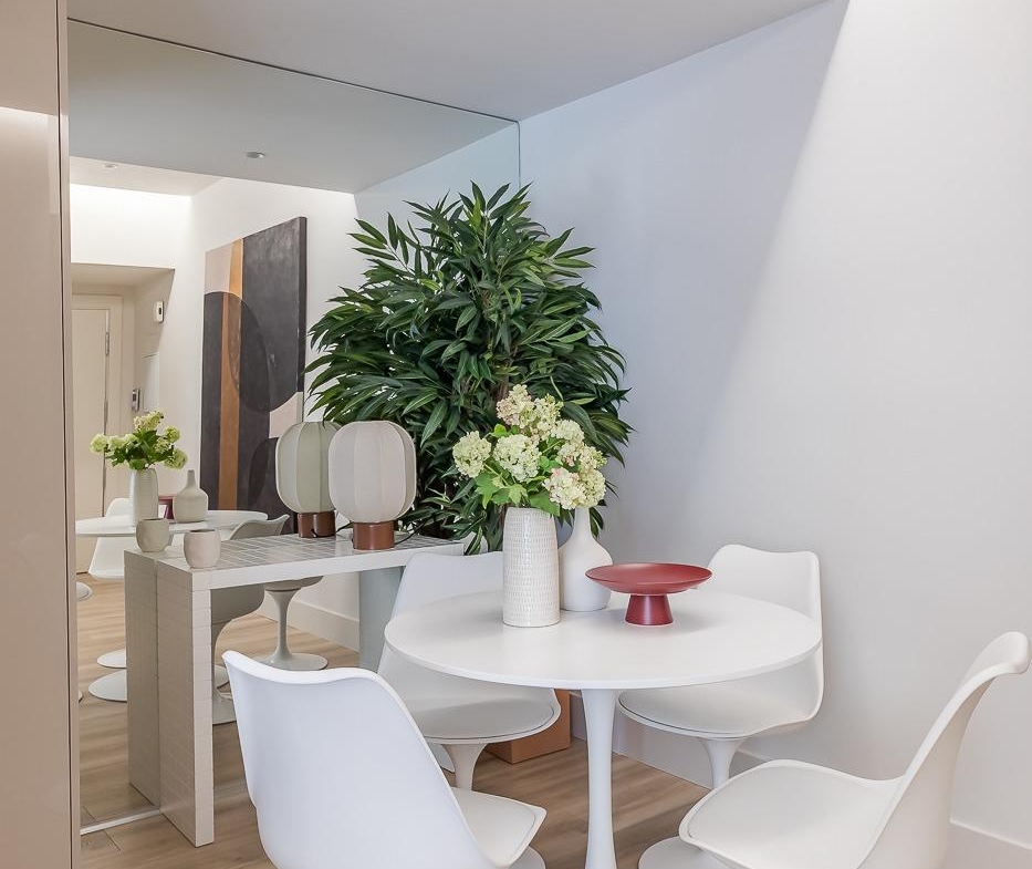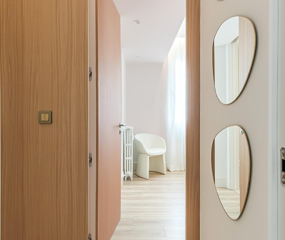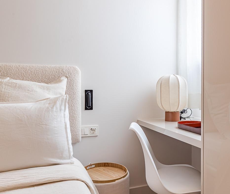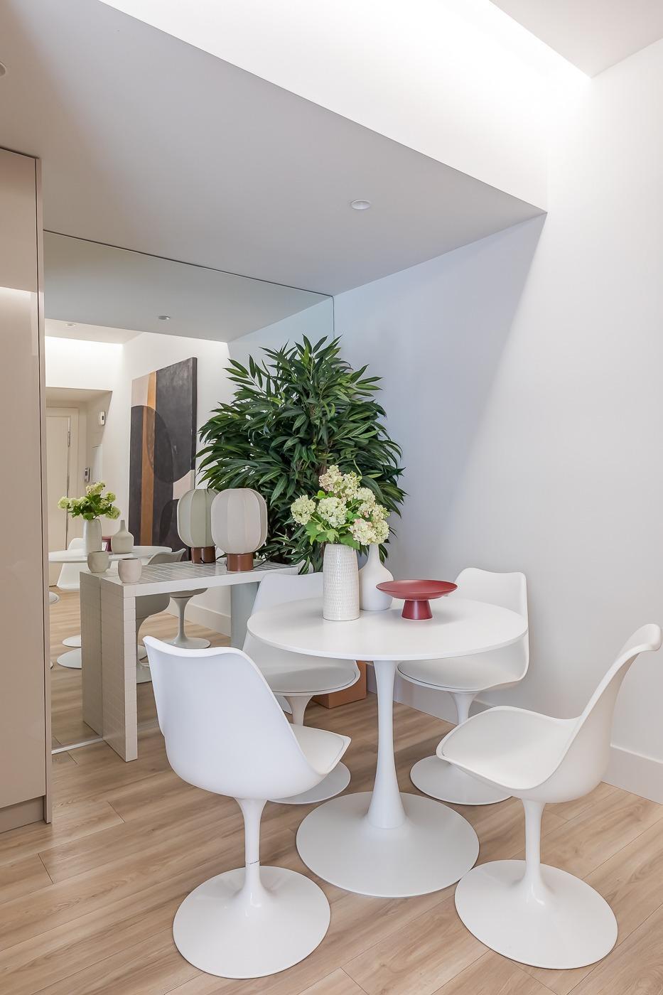 La vivienda, de 77 metros cuadrados, ha sido reformada con un diseño contemporáneo y materiales de altísima calidad. La distribución es inteligente y funcional, con espacios luminosos y perfectamente aprovechados. Al entrar tenemos un salón comedor y una cocina totalmente equipada y separada con una estética celosía. El salón cuenta con una agradable terraza. De frente discurre un pasillo que nos lleva a los dos dormitorios en suite que cuentan con su baño privado ofreciendo el máximo confort y privacidad. Los acabados de lujo, los suelos de madera natural, la cocina de diseño y la cuidada iluminación hacen de esta propiedad un auténtico oasis urbano para quienes buscan estilo, calidad y bienestar.