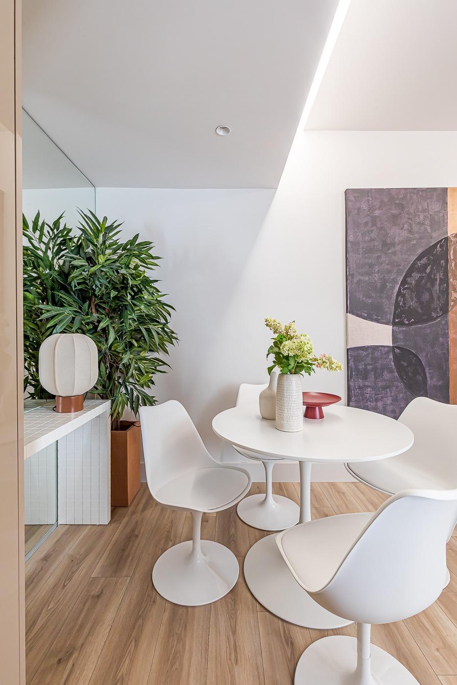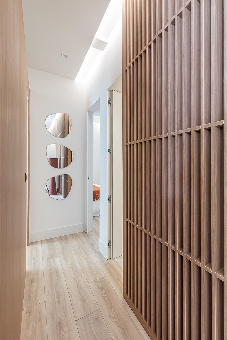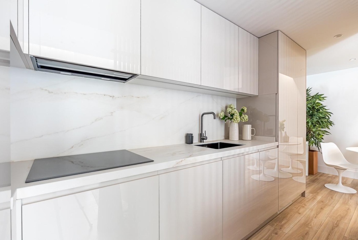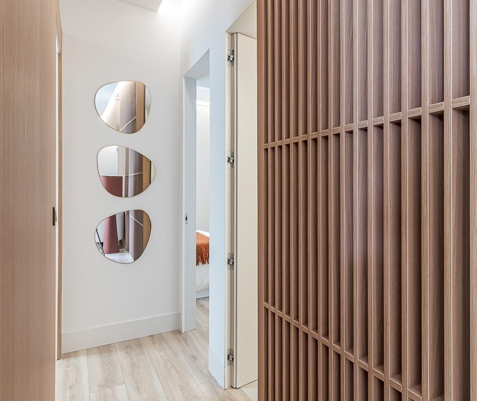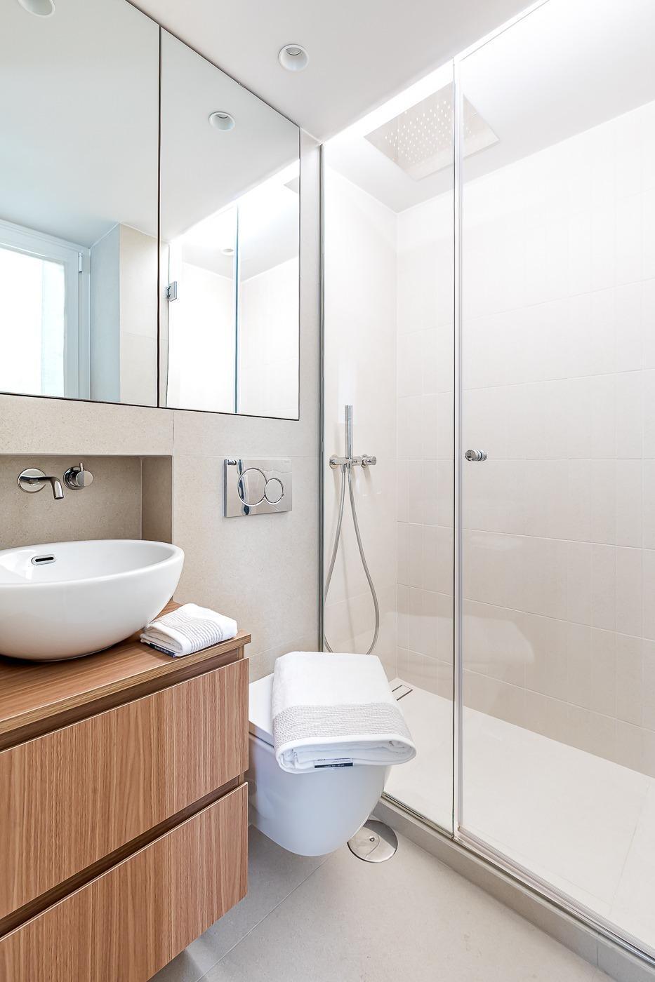 La vivienda, de 77 metros cuadrados, ha sido reformada con un diseño contemporáneo y materiales de altísima calidad. La distribución es inteligente y funcional, con espacios luminosos y perfectamente aprovechados. Al entrar tenemos un salón comedor y una cocina totalmente equipada y separada con una estética celosía. El salón cuenta con una agradable terraza. De frente discurre un pasillo que nos lleva a los dos dormitorios en suite que cuentan con su baño privado ofreciendo el máximo confort y privacidad. Los acabados de lujo, los suelos de madera natural, la cocina de diseño y la cuidada iluminación hacen de esta propiedad un auténtico oasis urbano para quienes buscan estilo, calidad y bienestar.