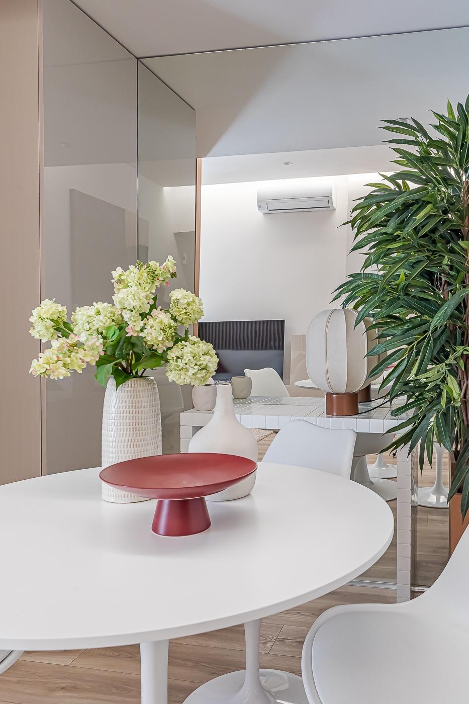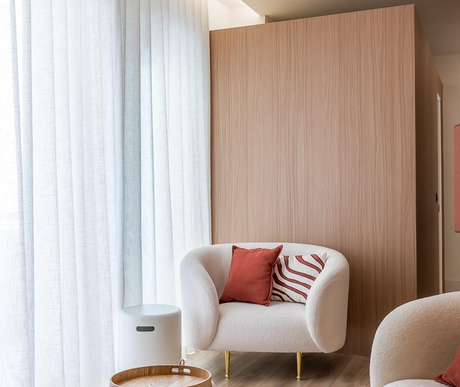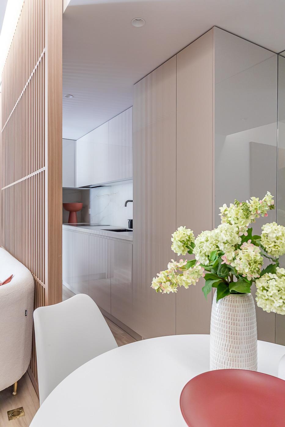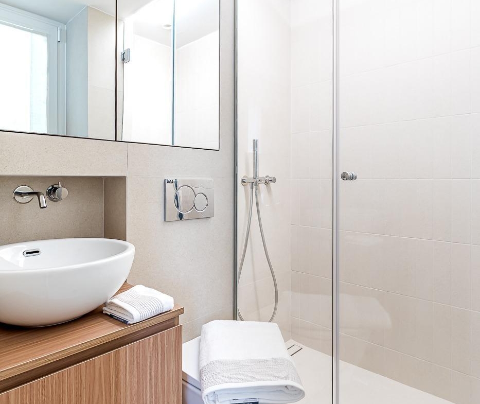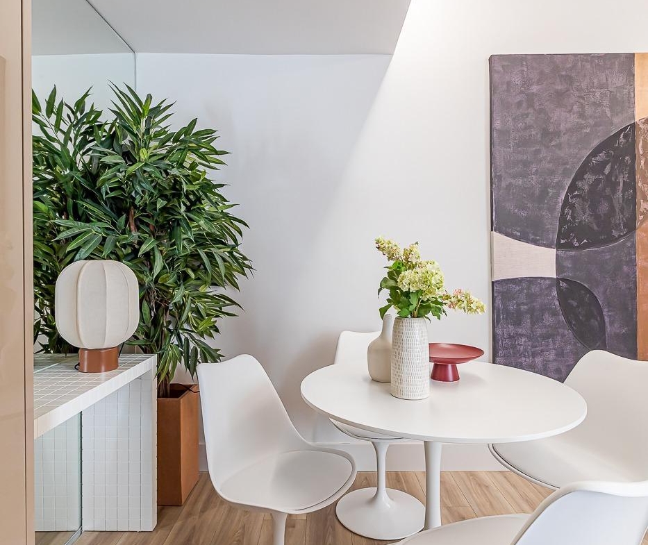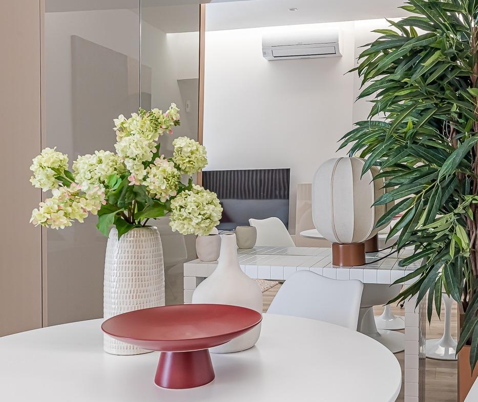 La vivienda, de 77 metros cuadrados, ha sido reformada con un diseño contemporáneo y materiales de altísima calidad. La distribución es inteligente y funcional, con espacios luminosos y perfectamente aprovechados. Al entrar tenemos un salón comedor y una cocina totalmente equipada y separada con una estética celosía. El salón cuenta con una agradable terraza. De frente discurre un pasillo que nos lleva a los dos dormitorios en suite que cuentan con su baño privado ofreciendo el máximo confort y privacidad. Los acabados de lujo, los suelos de madera natural, la cocina de diseño y la cuidada iluminación hacen de esta propiedad un auténtico oasis urbano para quienes buscan estilo, calidad y bienestar.