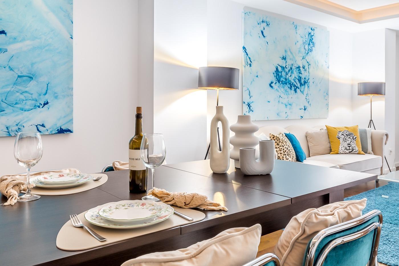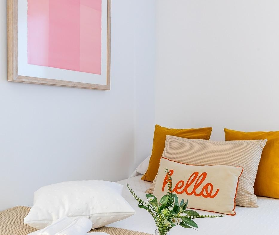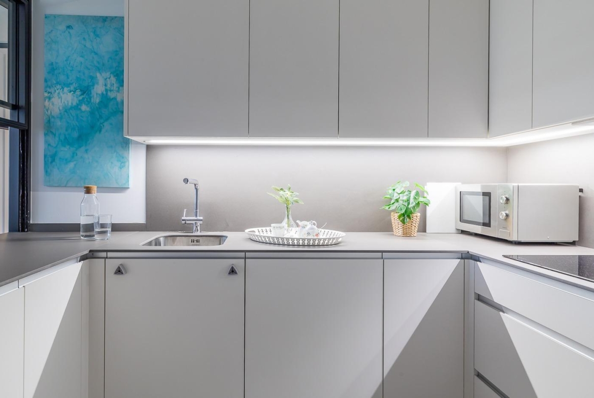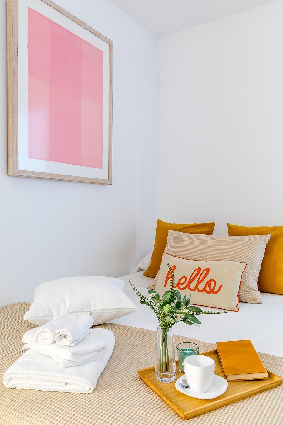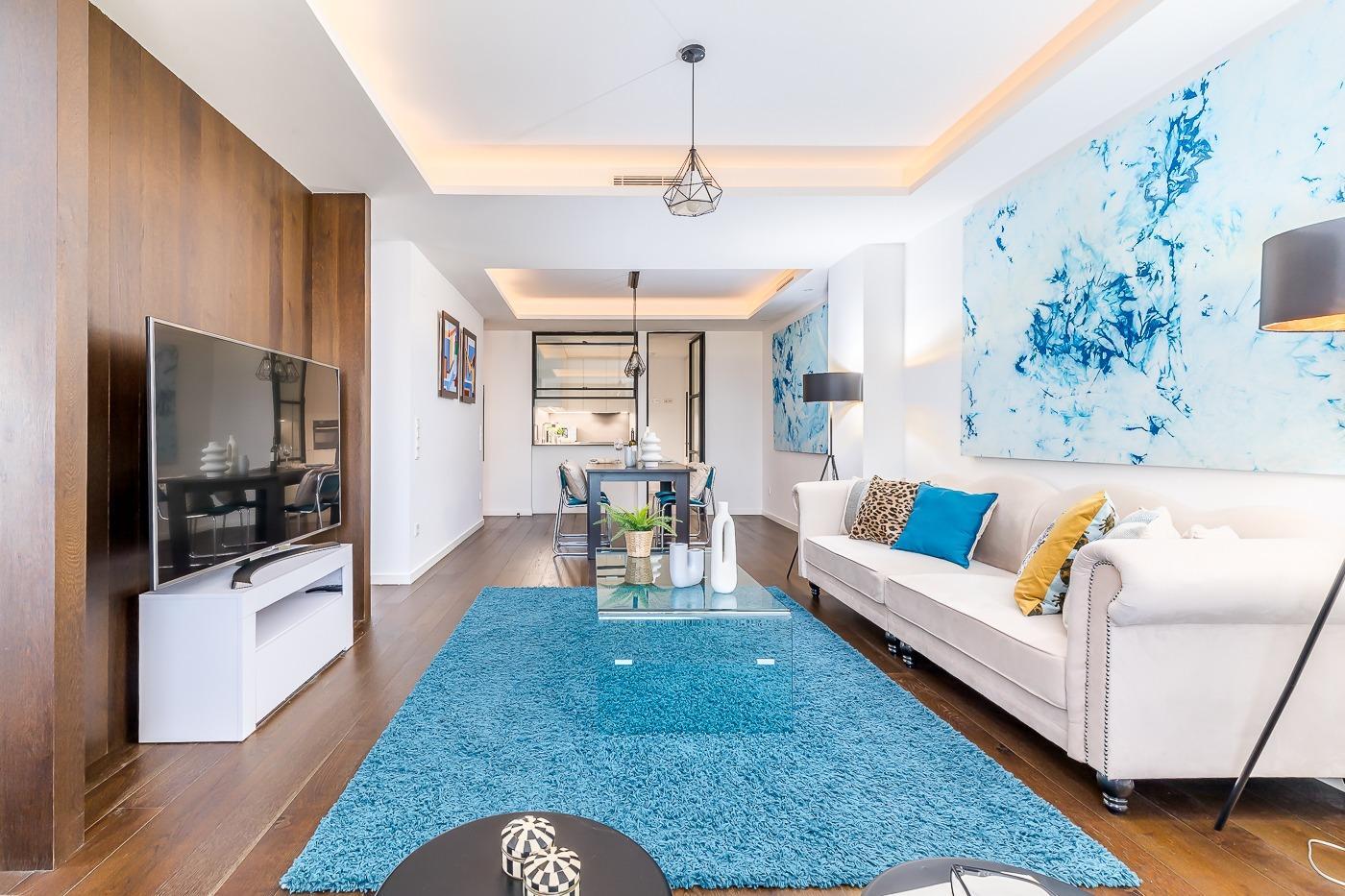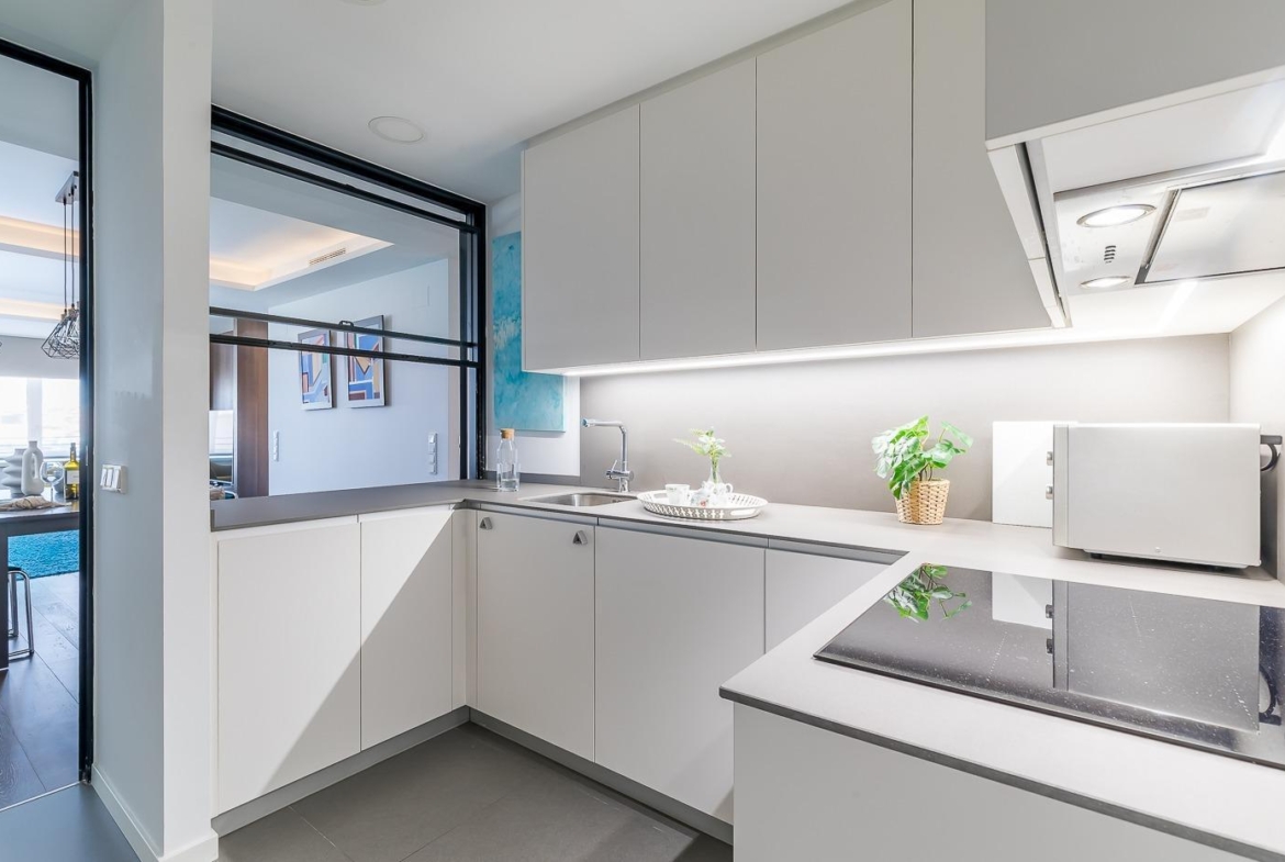 Este piso de dos habitaciones en la octava planta de un edificio en las cercanías de Plaza España se distribuye: al entrar con un amplio hall alargado en el que tenemos un armario empotrado de gran capacidad, a la izquierda una puerta nos lleva al dormitorio secundario con baño incorporado en suite, a la derecha el dormitorio principal también con baño incluido y zona de vestidor, desde el hall de frente accedemos al salón-comedor con cocina totalmente equipada con electrodomésticos marca premium separada con una cristalera. El piso es exterior y esta a una buena altura lo que le confiere gran luminosidad.