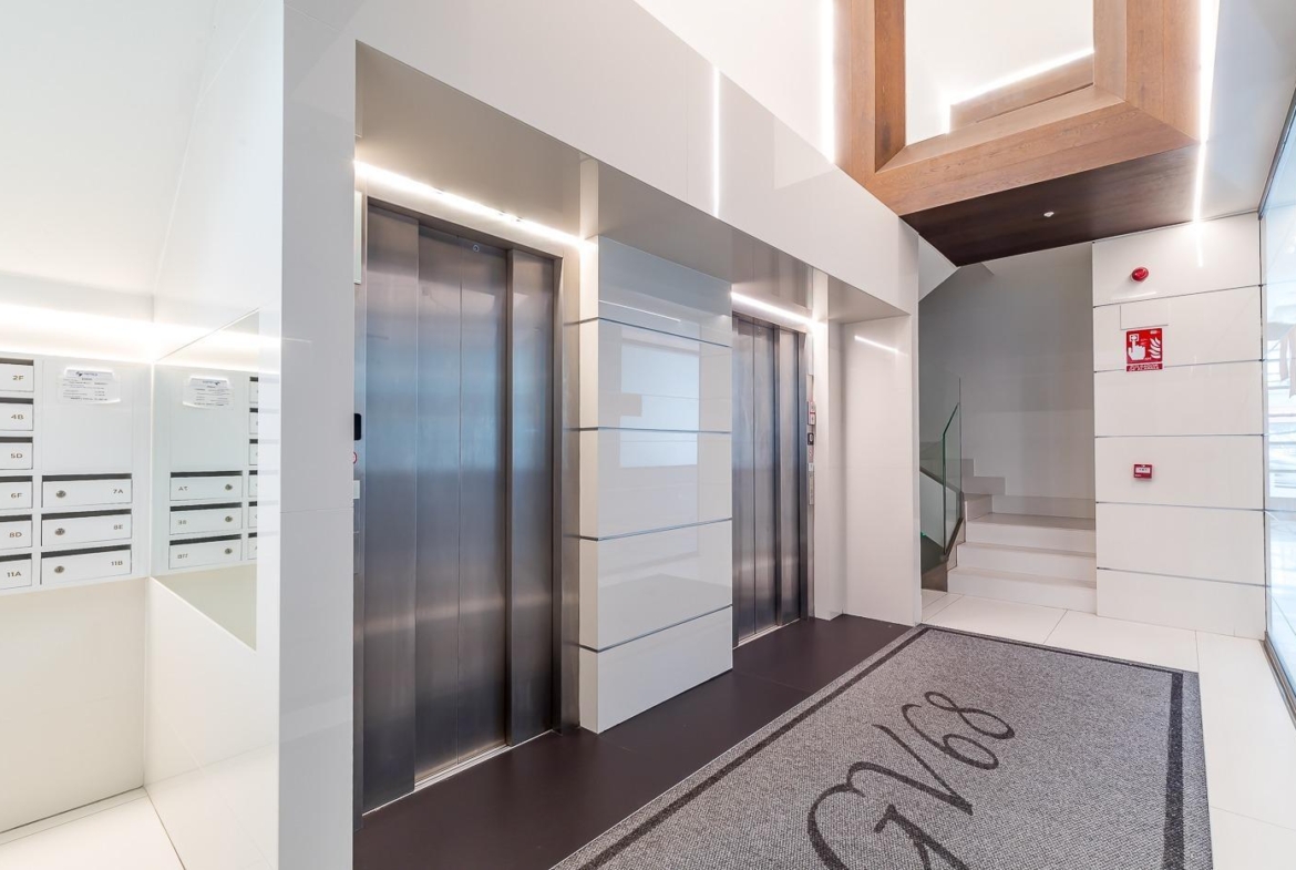 En la azotea del edificio hay gimnasio y una piscina al aire libre con zonas comunes y unas fantásticas vistas del centro de la ciudad. Además en el precio está incluida una plaza de garaje automatizada dentro de la misma finca cuyo funcionamiento consiste en dejar el coche en la entrada y un elevador se encarga del resto.