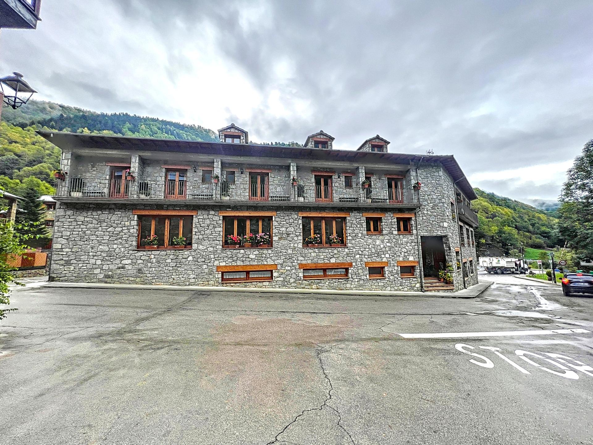 HOTEL CON MUCHO ENCANTO DE PIEDRA Y BIEN UBICADO(SET CASES), CON FACHADA DE PIEDRA A PIE DE LAS PISTAS DE ESKI , CONSTA DE 4 PLANTAS