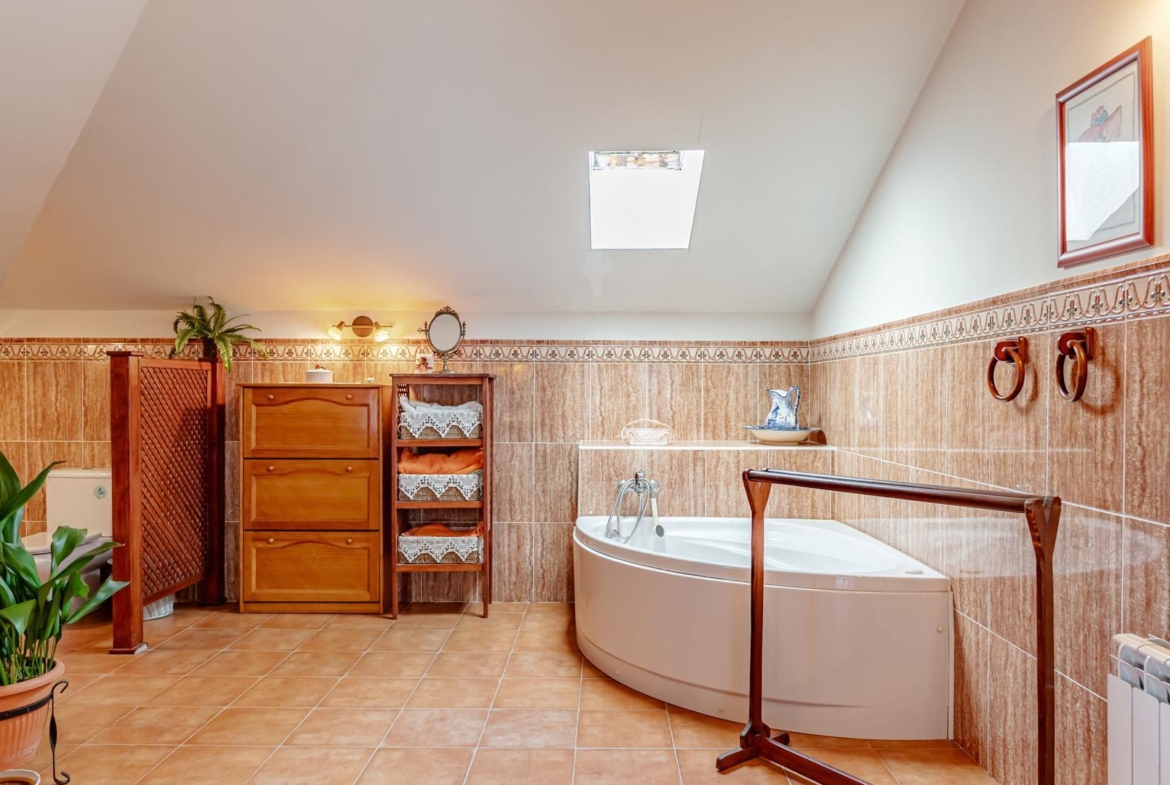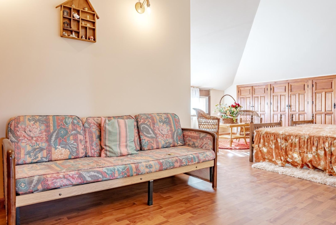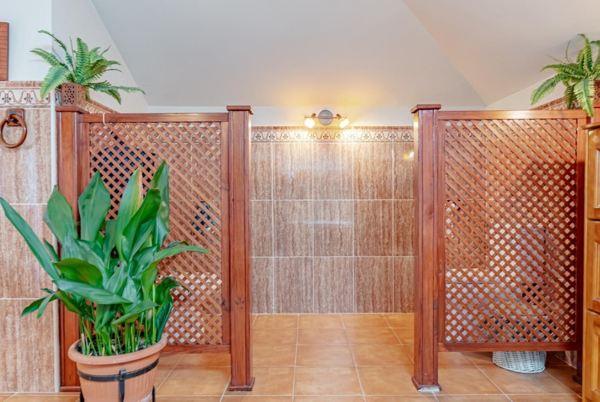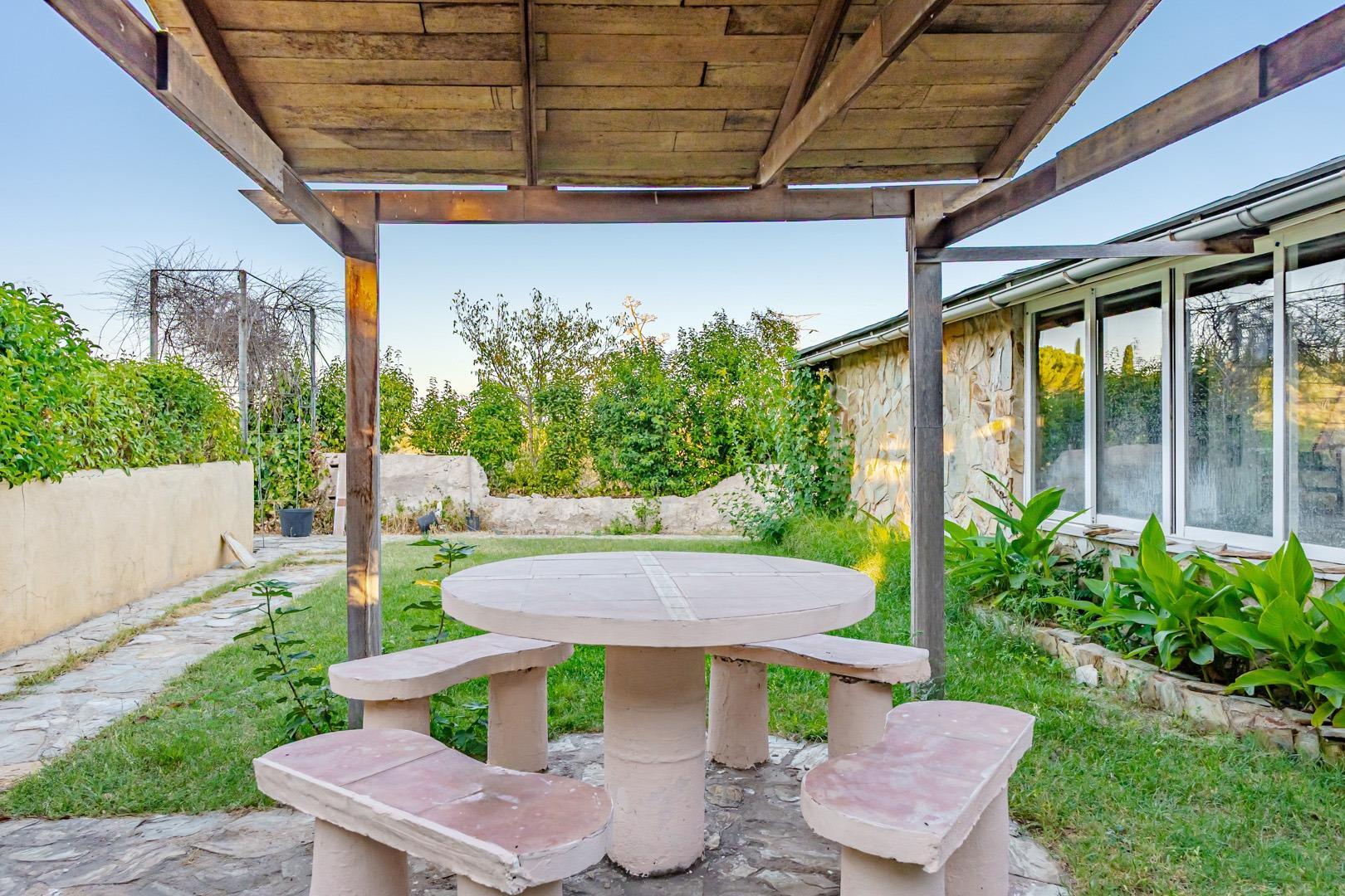 En el exterior encontramos amplias zonas de aparcamiento con capacidad para 4 vehículos, dos espacios de taller y distintas áreas ajardinadas que aportan privacidad y encanto a la finca.