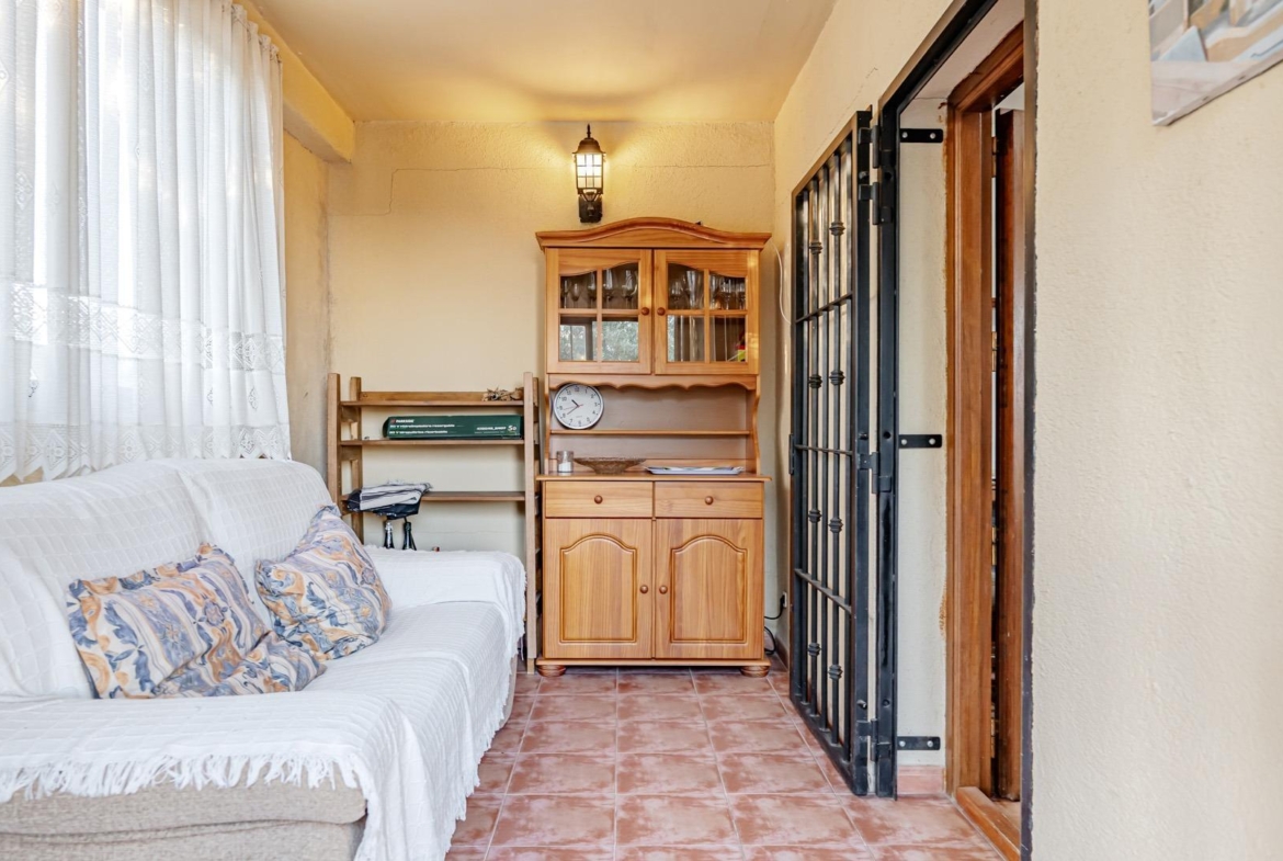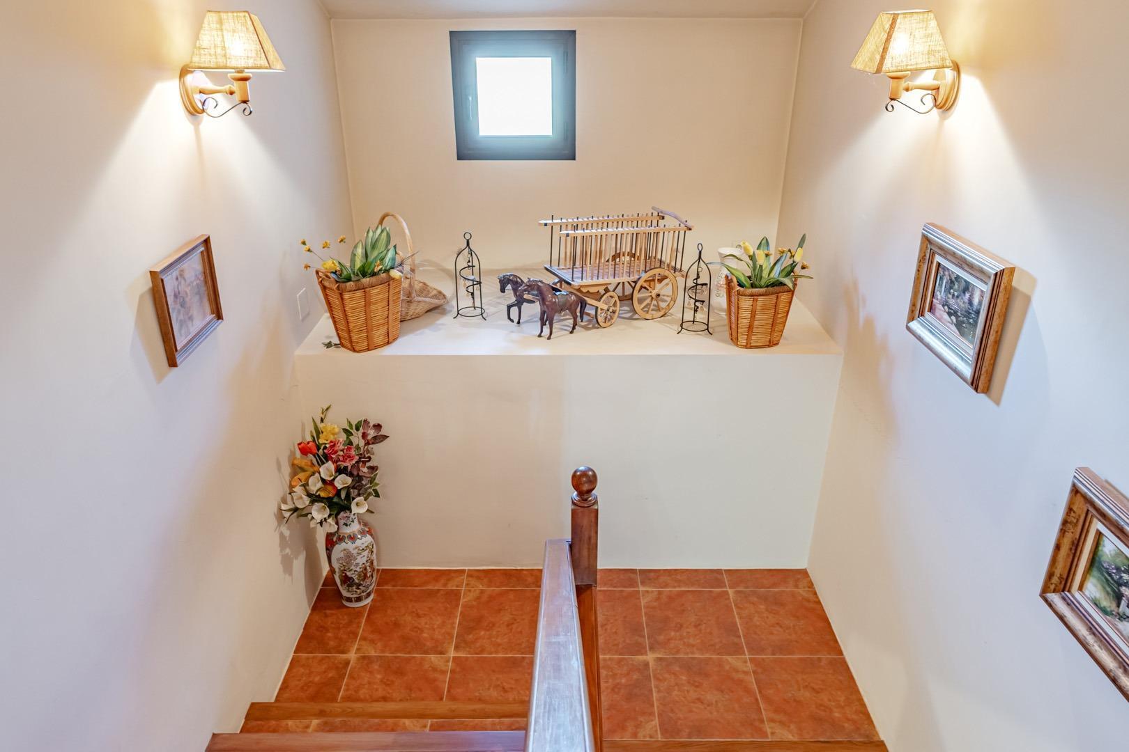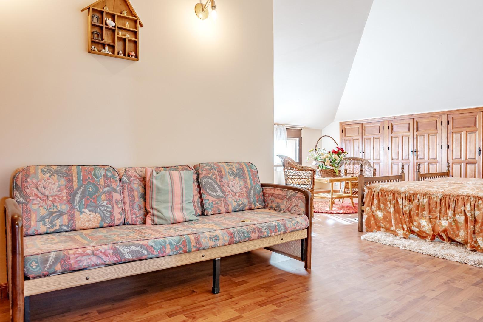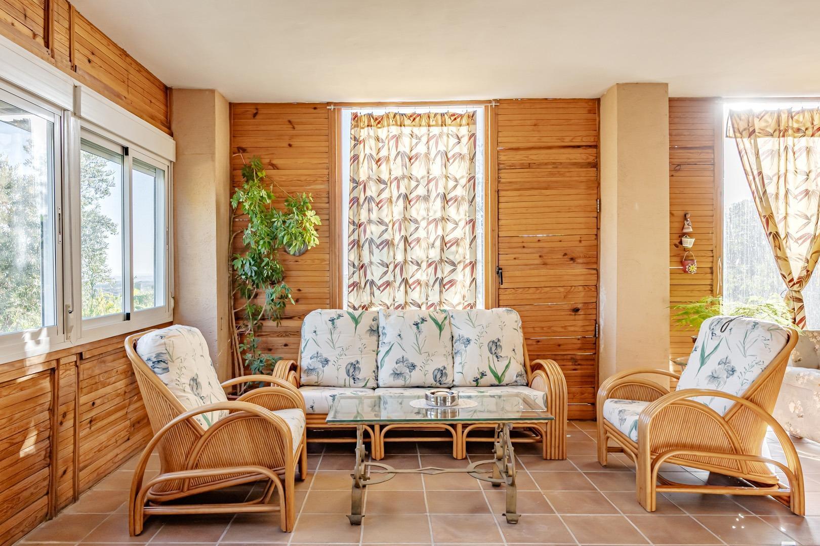 Planta principal: espacioso salón-comedor con grandes ventanales, amplia cocina totalmente equipada, aseo de cortesía y dormitorio con baño en suite. Desde esta planta se accede a un agradable porche y terraza con vistas a la finca.