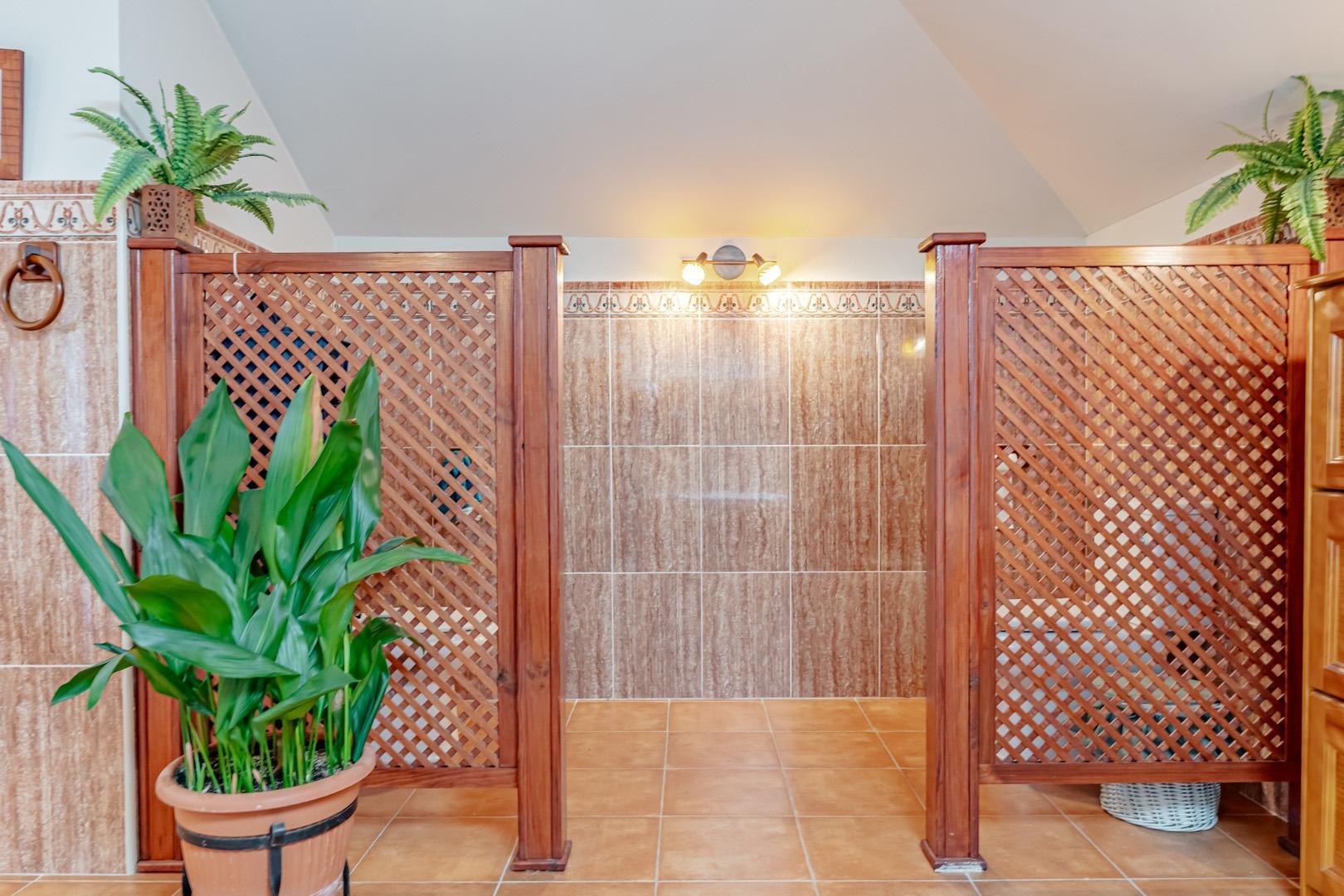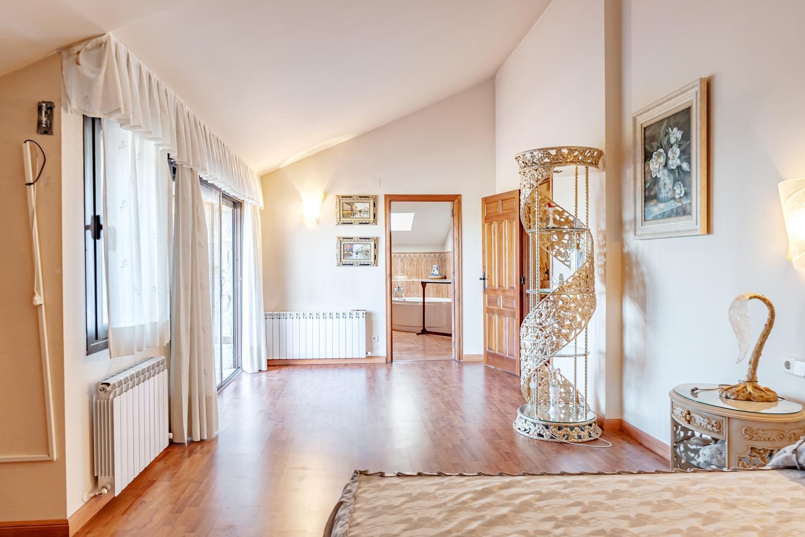 Planta superior: tres dormitorios dobles, todos ellos con baño en suite y armarios empotrados.
