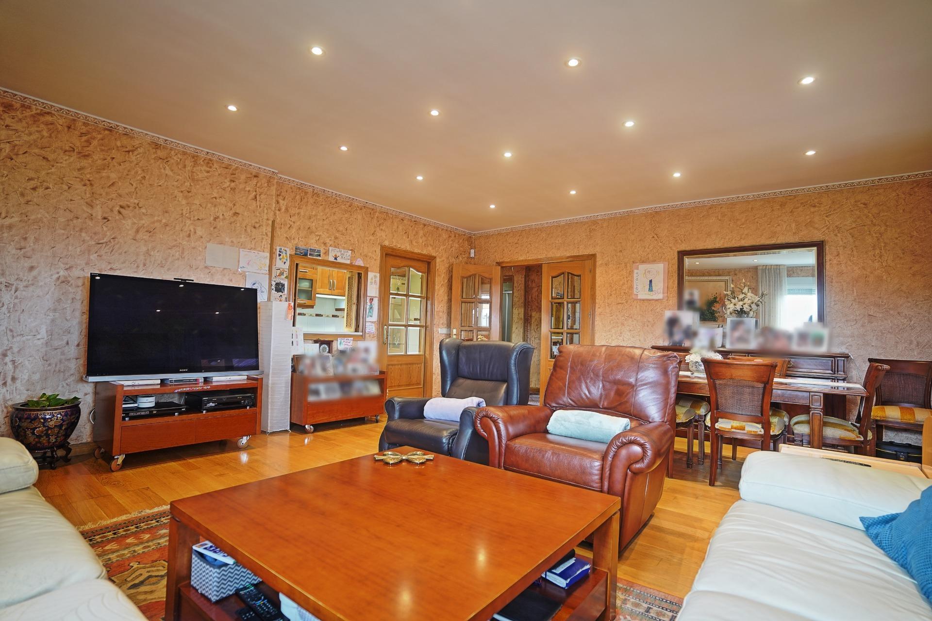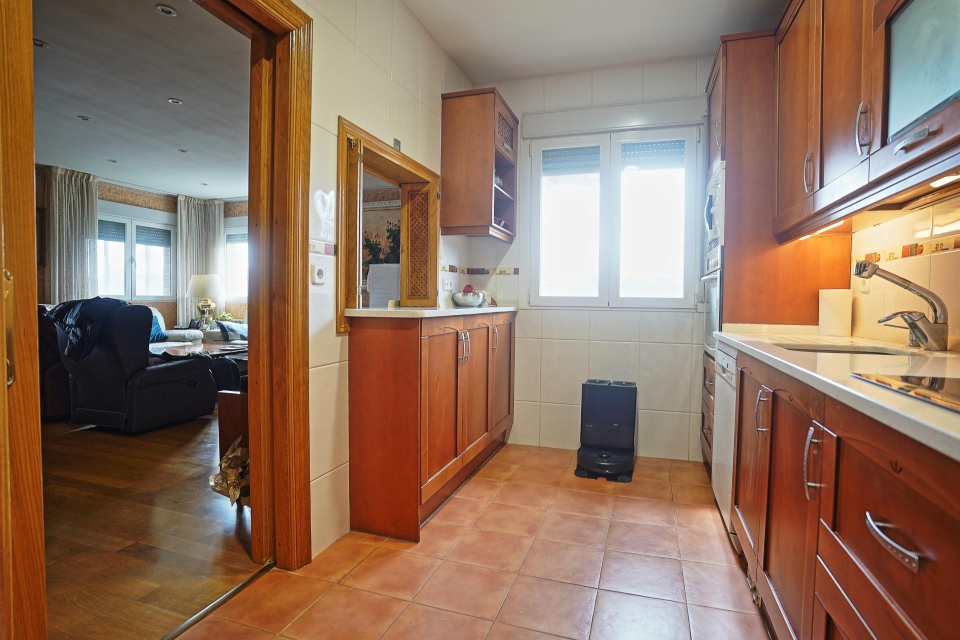 La vivienda distribuida en una sola planta con unos 220 m2, se accede a través de un porche de unos 35 m2 que se encuentra en altura, con 7 peldaños de escalera, para evitar problemas de humedad, desde el distribuidor accedemos a la izquierda al salón comedor con chimenea de 35 m2, con varias ventanas y mucha luz, desde el que se accede directamente a la cocina, aunque ésta dispone también de un acceso independiente desde el pasillo de distribución.