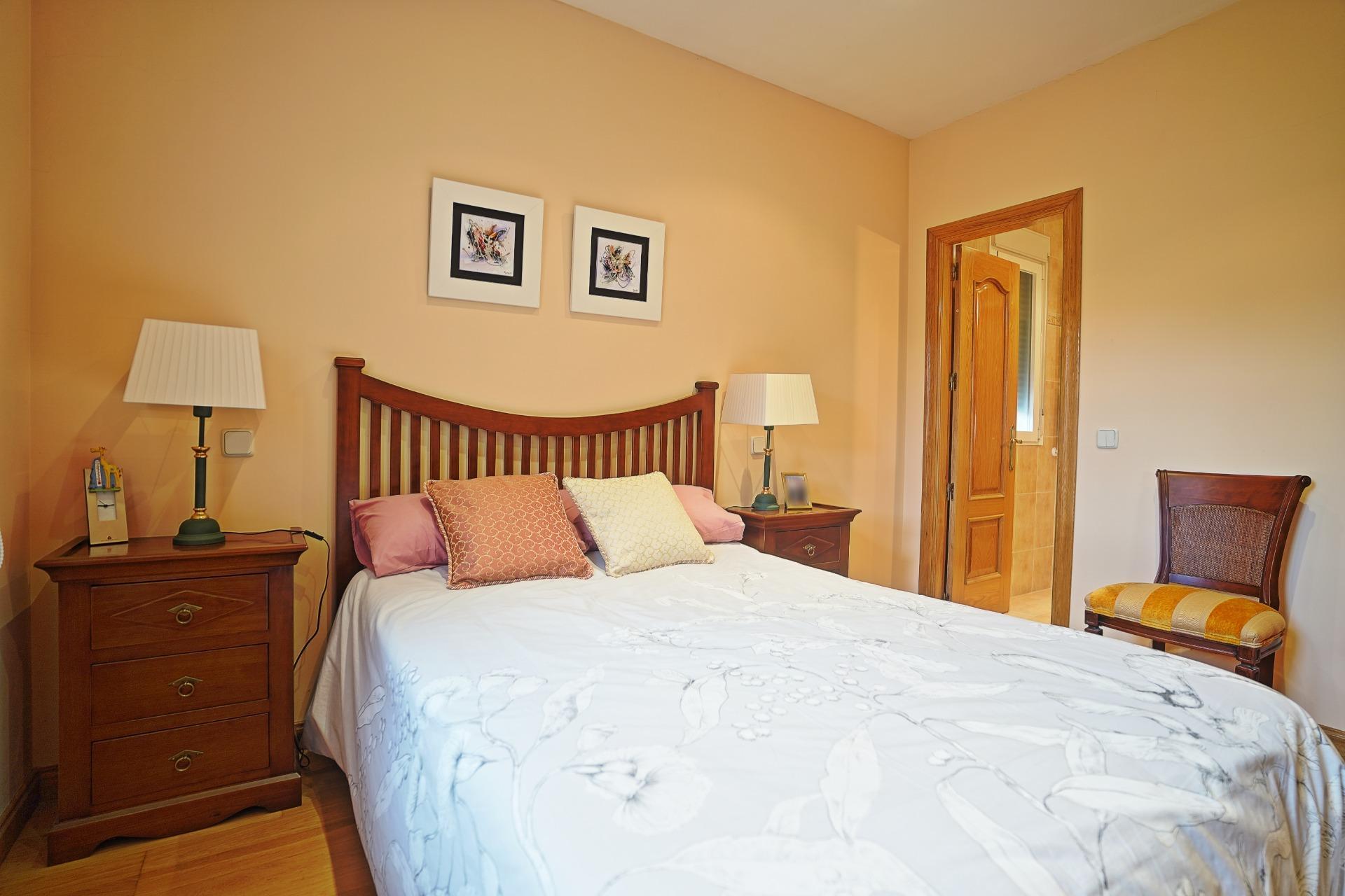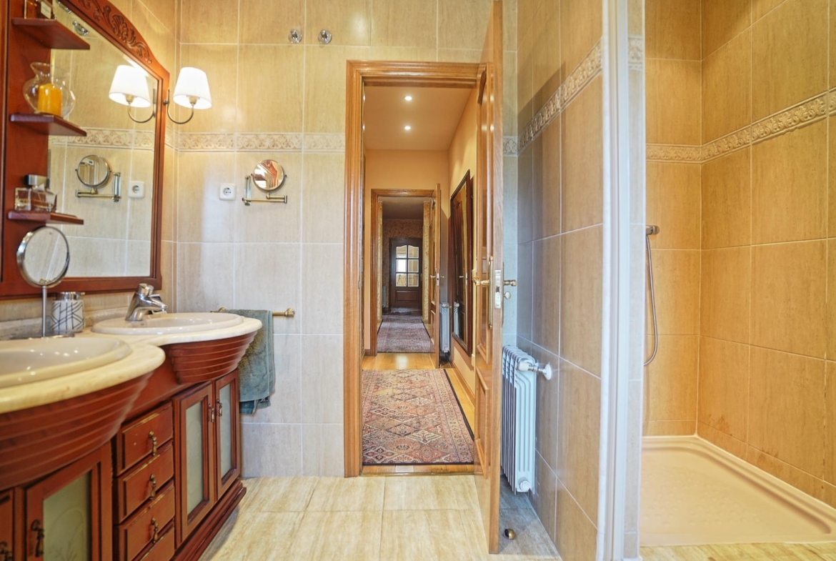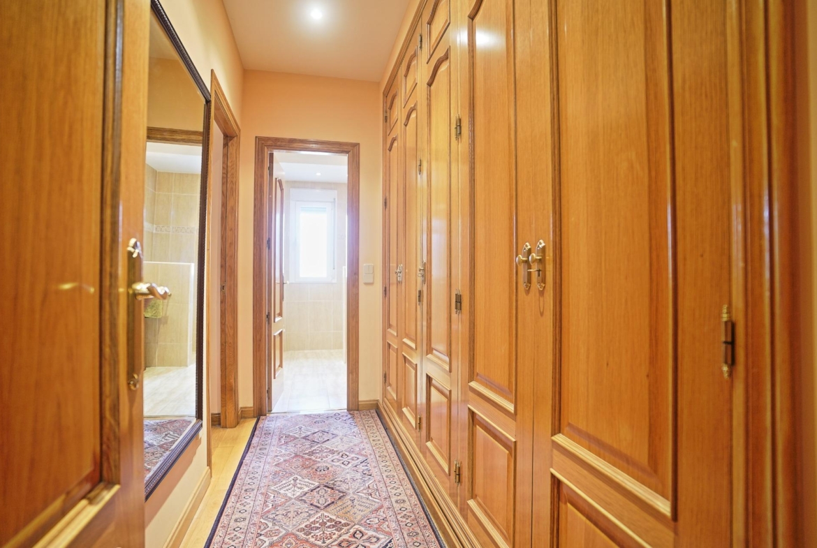 Continuando por el distribuidor central, nos encontramos a la derecha con un cuarto de baño y un dormitorio. Este dormitorio cuenta con un segundo cuarto de baño en su interior. A la izquierda se accede a un segundo dormitorio, y al final del distribuidor se encuentra el dormitorio principal, que dispone de una zona de vestidor, y un cuarto de baño con ducha y mueble doble seno, con acceso desde este espacio.