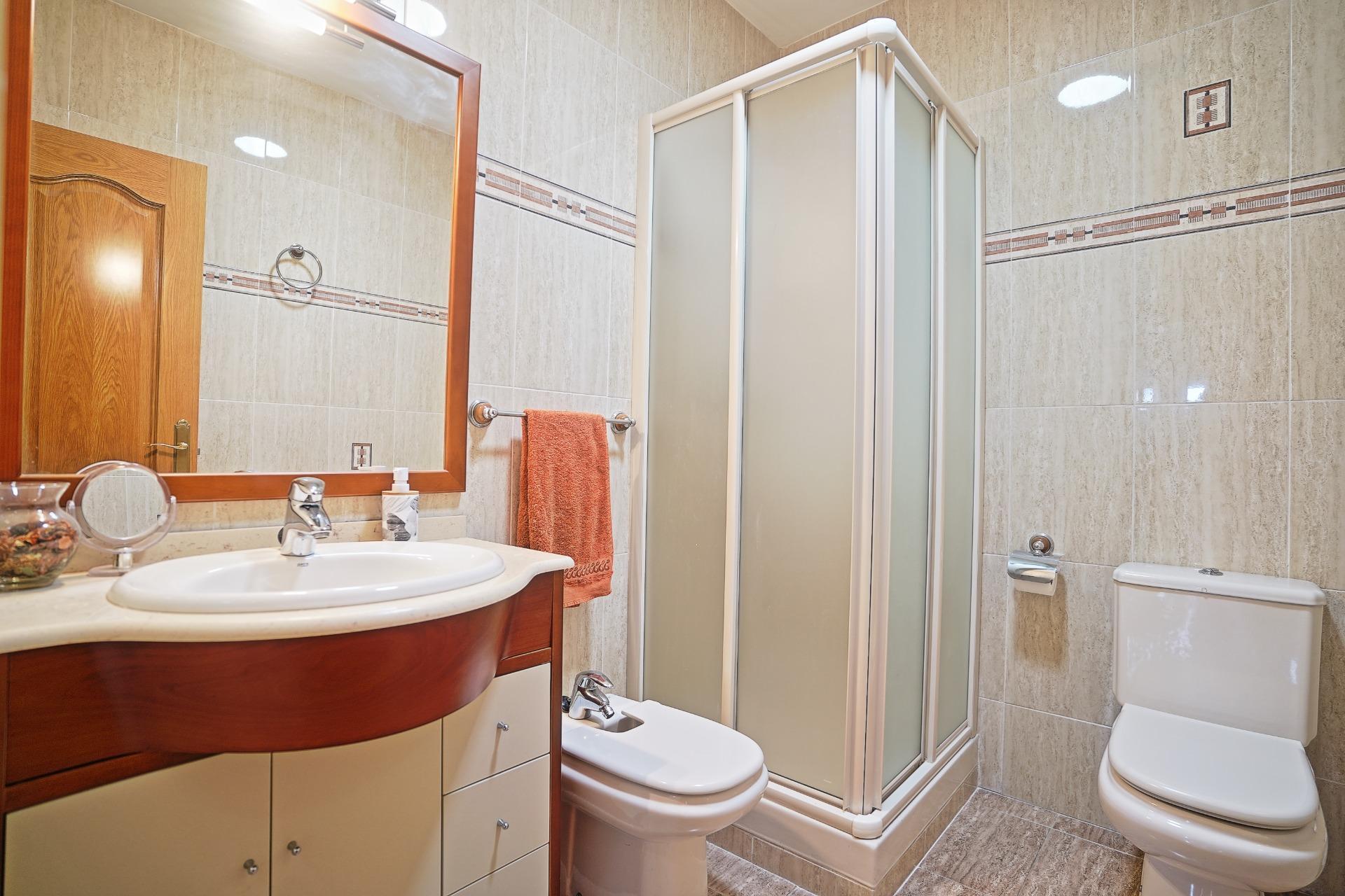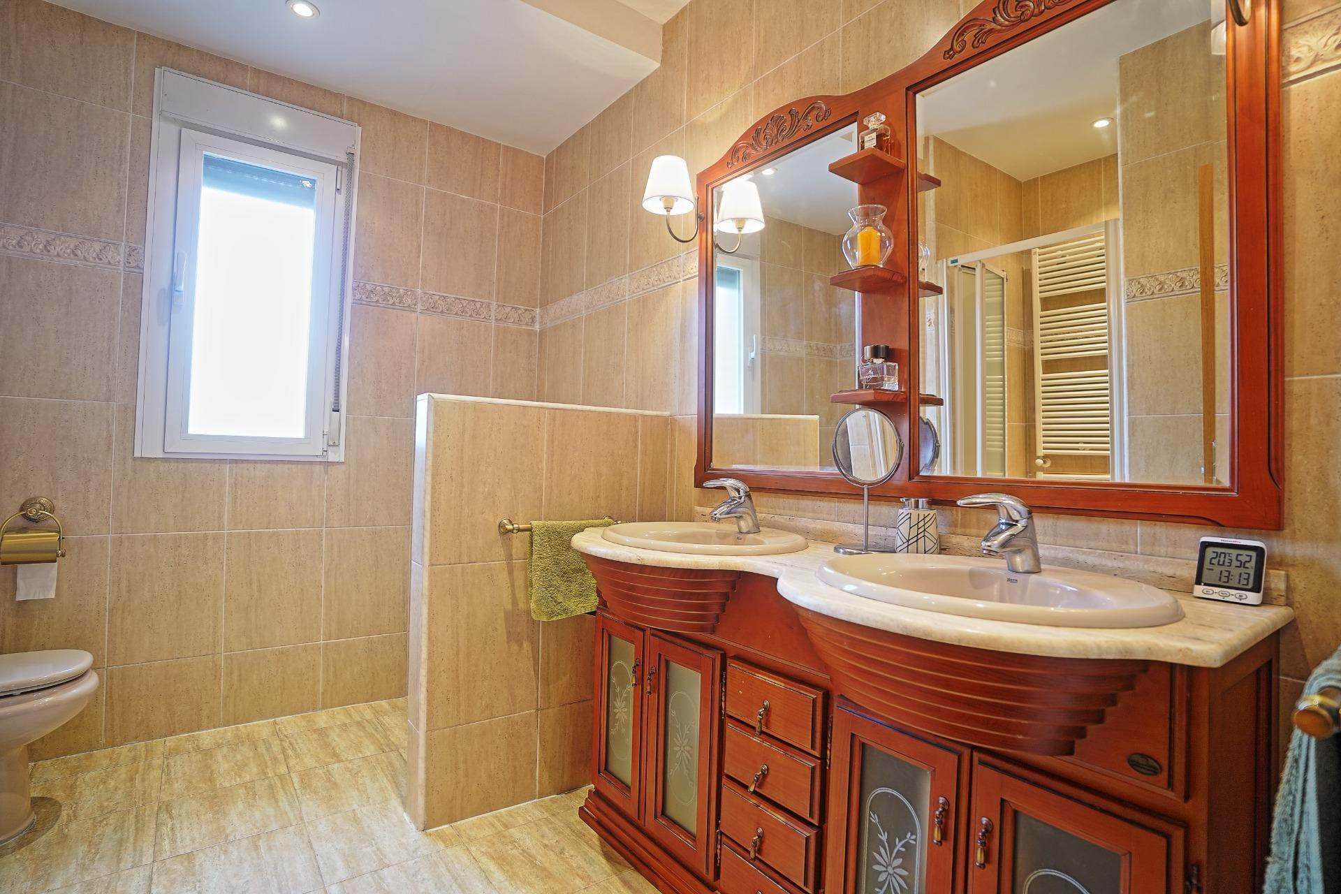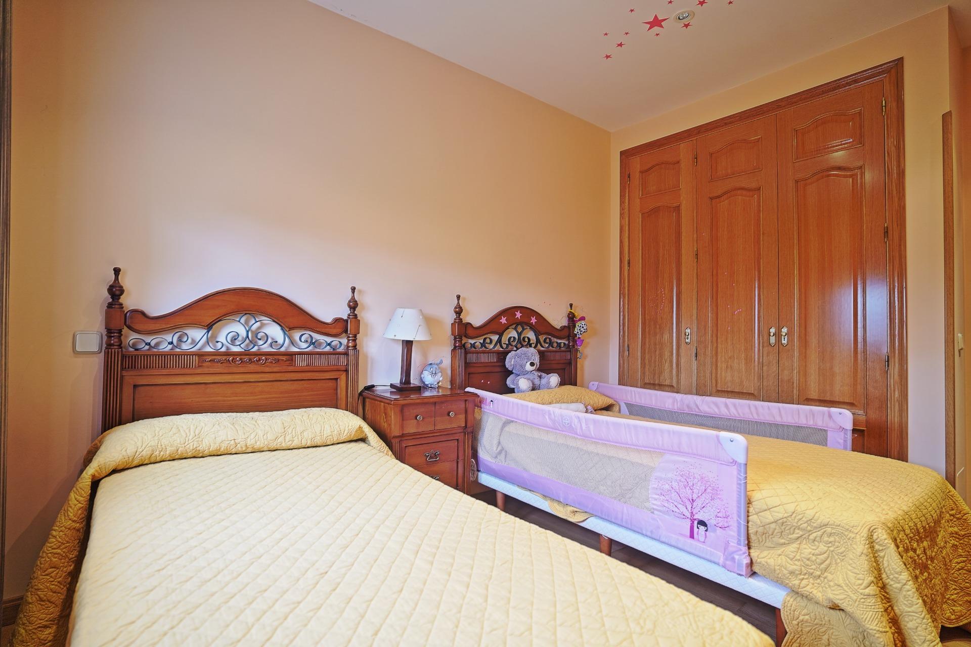 Continuando por el distribuidor central, nos encontramos a la derecha con un cuarto de baño y un dormitorio. Este dormitorio cuenta con un segundo cuarto de baño en su interior. A la izquierda se accede a un segundo dormitorio, y al final del distribuidor se encuentra el dormitorio principal, que dispone de una zona de vestidor, y un cuarto de baño con ducha y mueble doble seno, con acceso desde este espacio.
