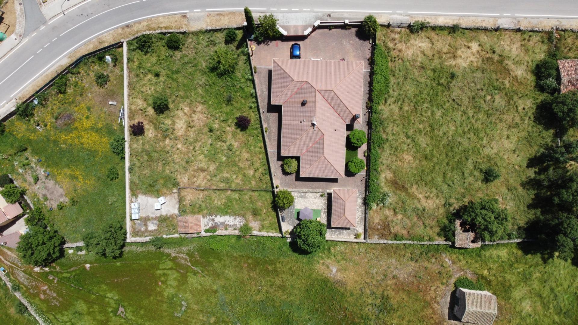 Parcela: Con 872 m2 solada en casi su totalidad con hormigón prensado, y se accede a ella por puerta principal de peatones o por puerta de garaje mecanizada, cuenta también con grandes arboles y arbustos y la valla perimetral es de piedra y maya.
