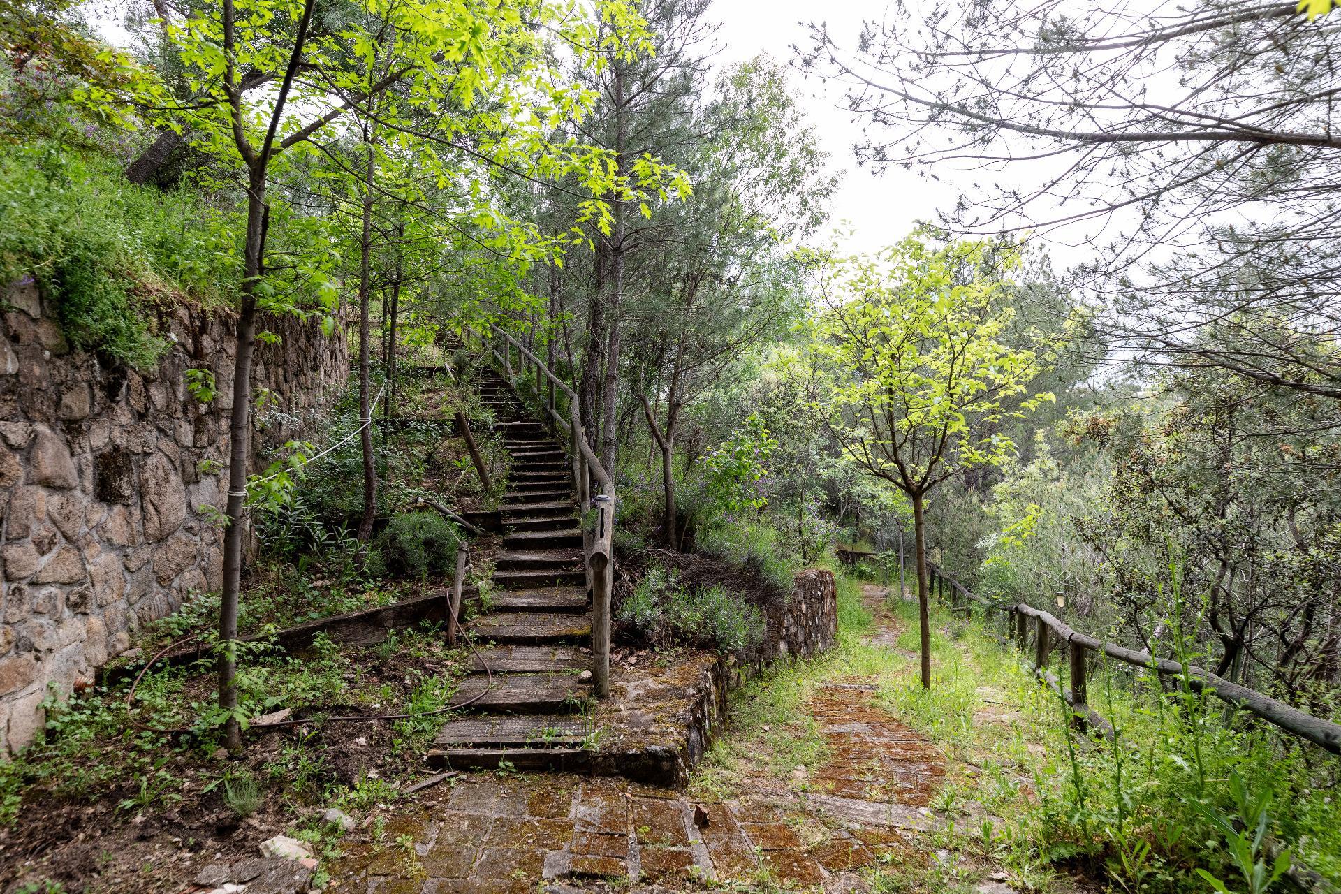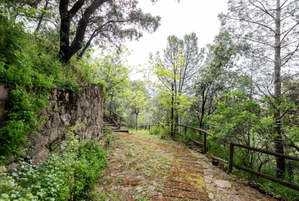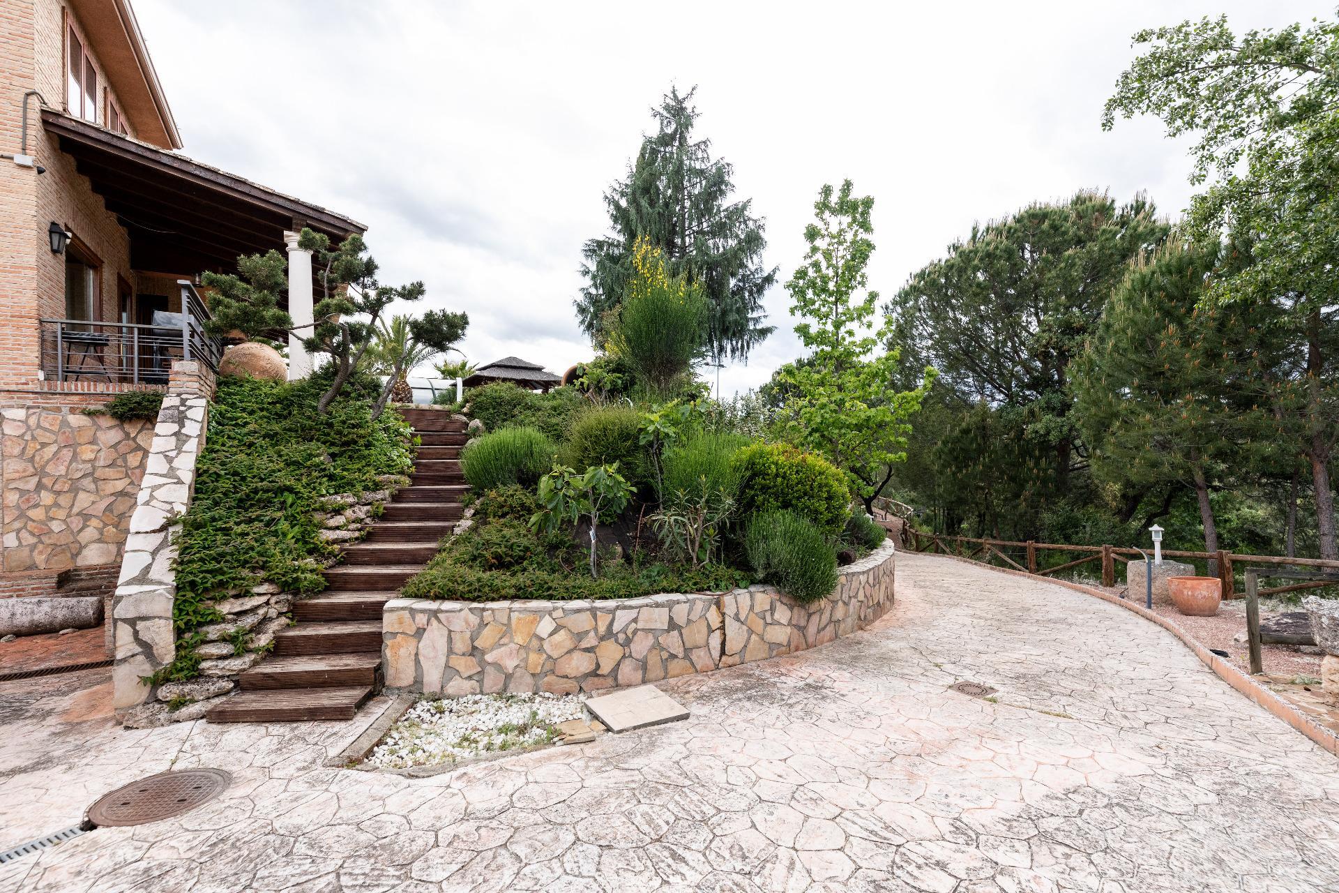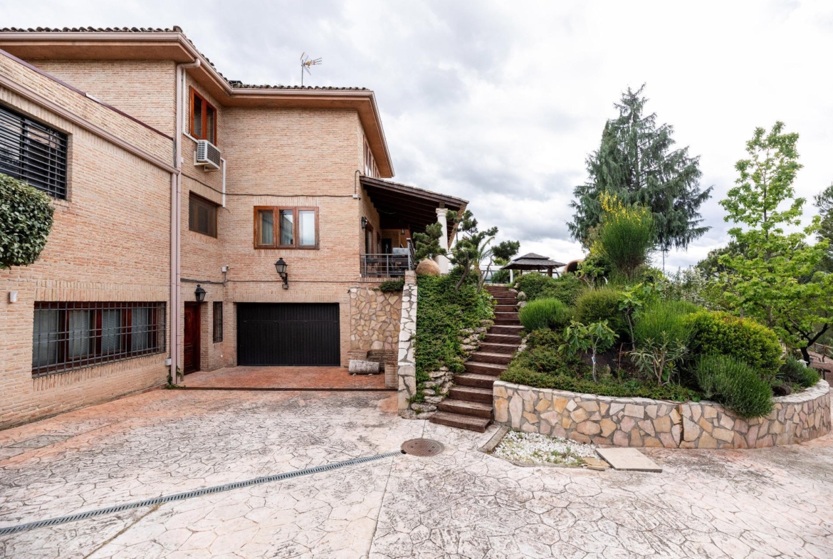 El exterior de la propiedad es un auténtico oasis. Un jardín amplio rodea la vivienda, con una pérgola cubierta ideal para reuniones y una piscina climatizada que permite disfrutar del baño durante todo el año. También dispone de una pista de pádel de alta calidad con iluminación artificial y varias zonas ajardinadas con frondosa vegetación.
