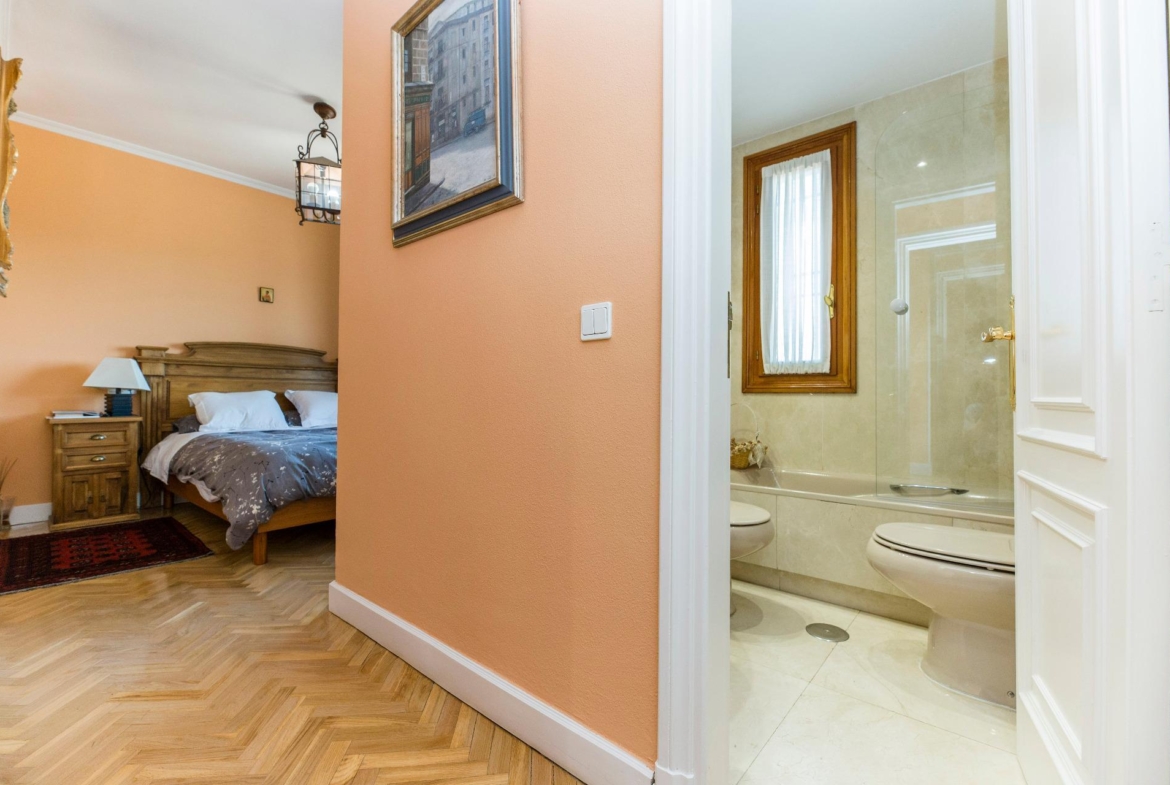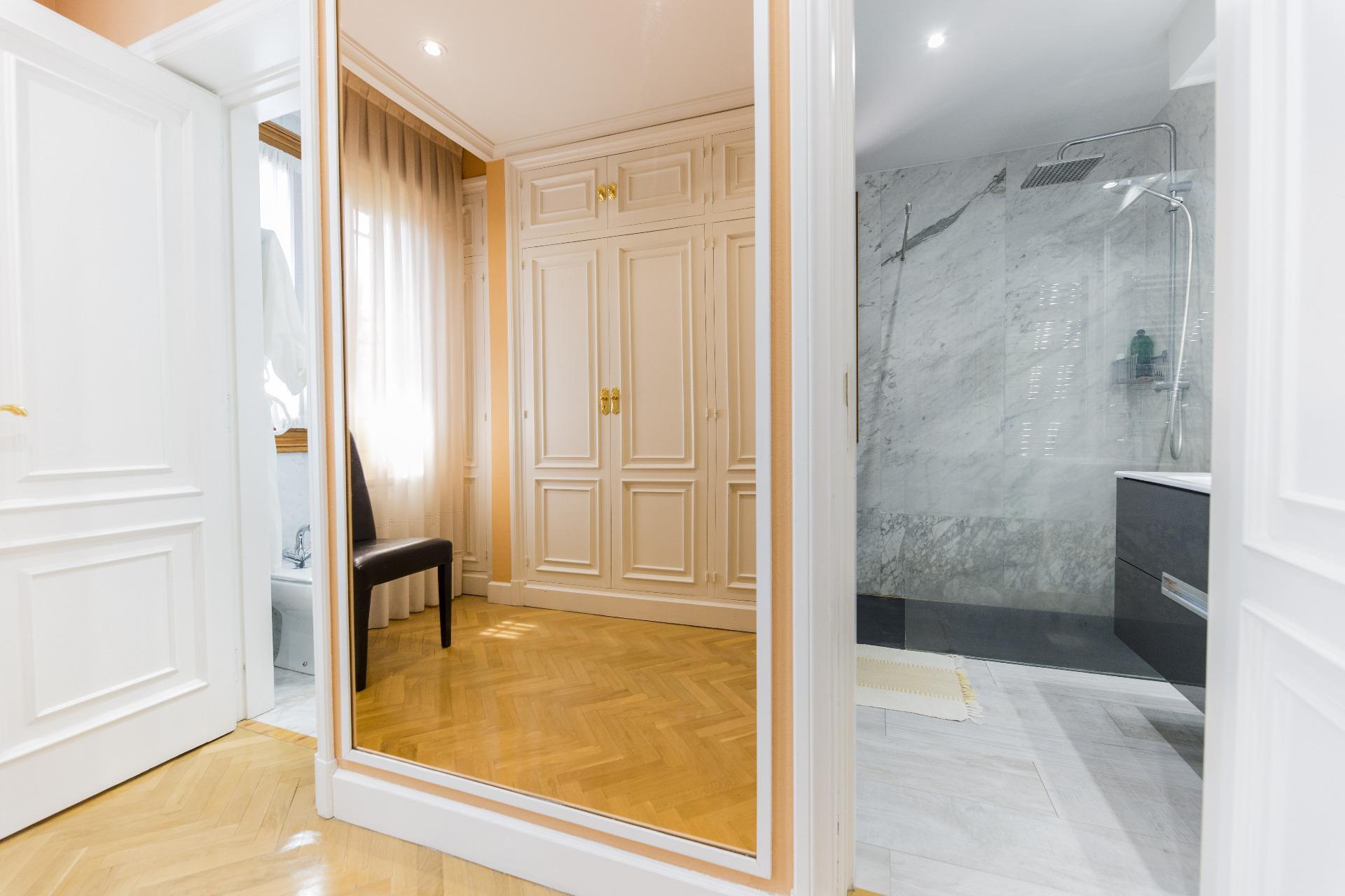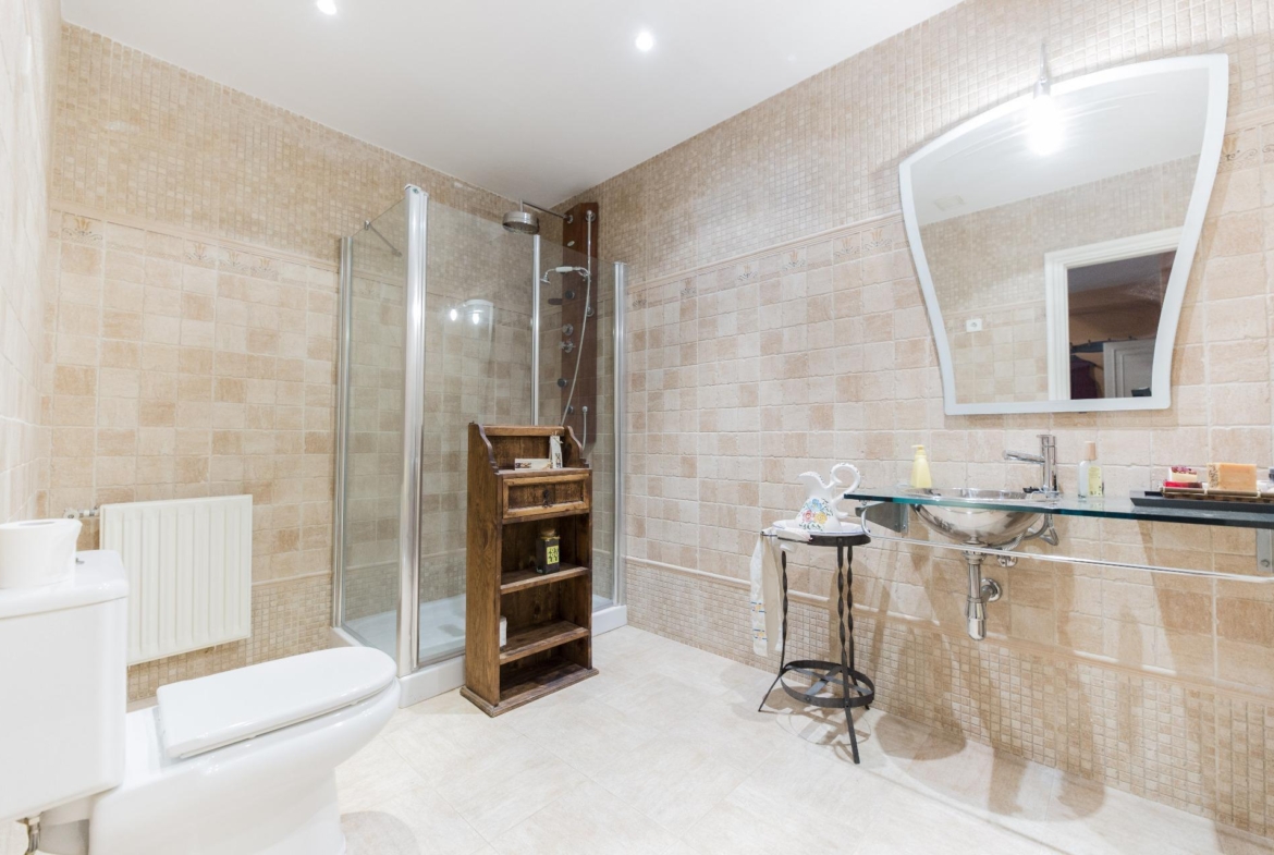 En la planta superior se ubican cuatro dormitorios, dos de ellos con baño en suite. La habitación principal, además de sus dos baños privados, cuenta con un gran vestidor y una acogedora zona de estar. Desde aquí, se accede a una terraza con vistas panorámicas.