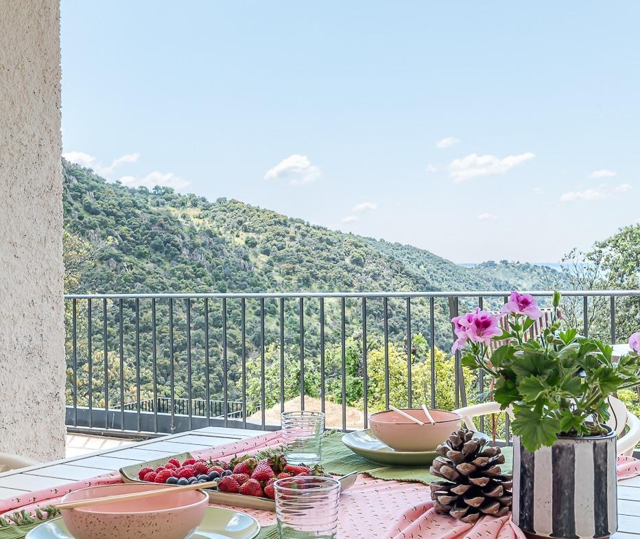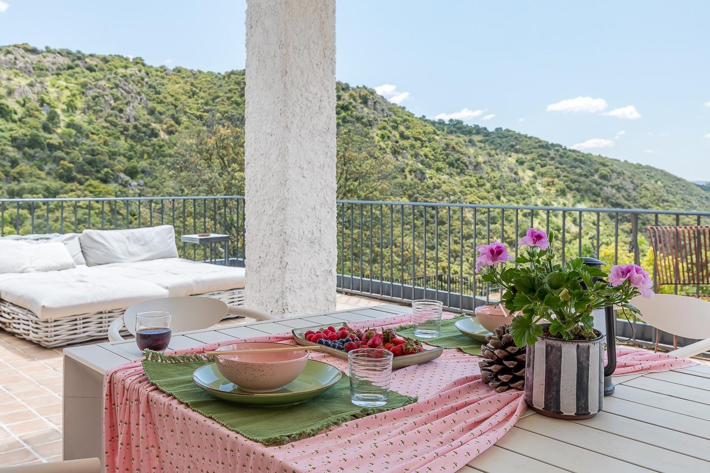 Desde el hall de la vivienda por la derecha llegamos a un amplísimo salón-comedor con una pequeña terraza con unas maravillosas vistas a la garganta del río Guadarrama, vistas que puedes divisar desde cualquier punto del salón.
