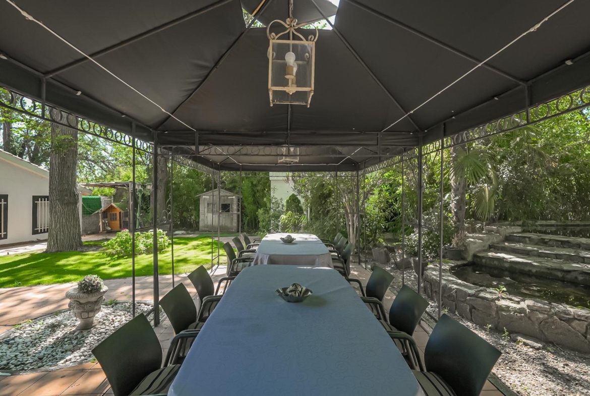 En esta finca podrás disfrutar de una piscina de 12×7 metros con una zona para cuarto de baño, un encantador cenador con una barbacoa de obra para disfrutar de reuniones al aire libre y comidas deliciosas, todo ello complementado con un estanque decorativo que se alimenta de un manantial de agua potable, que fluye durante todo el año, y 2 pozos de gran profundidad con depósito e instalación de filtros de materia orgánica y antical.
