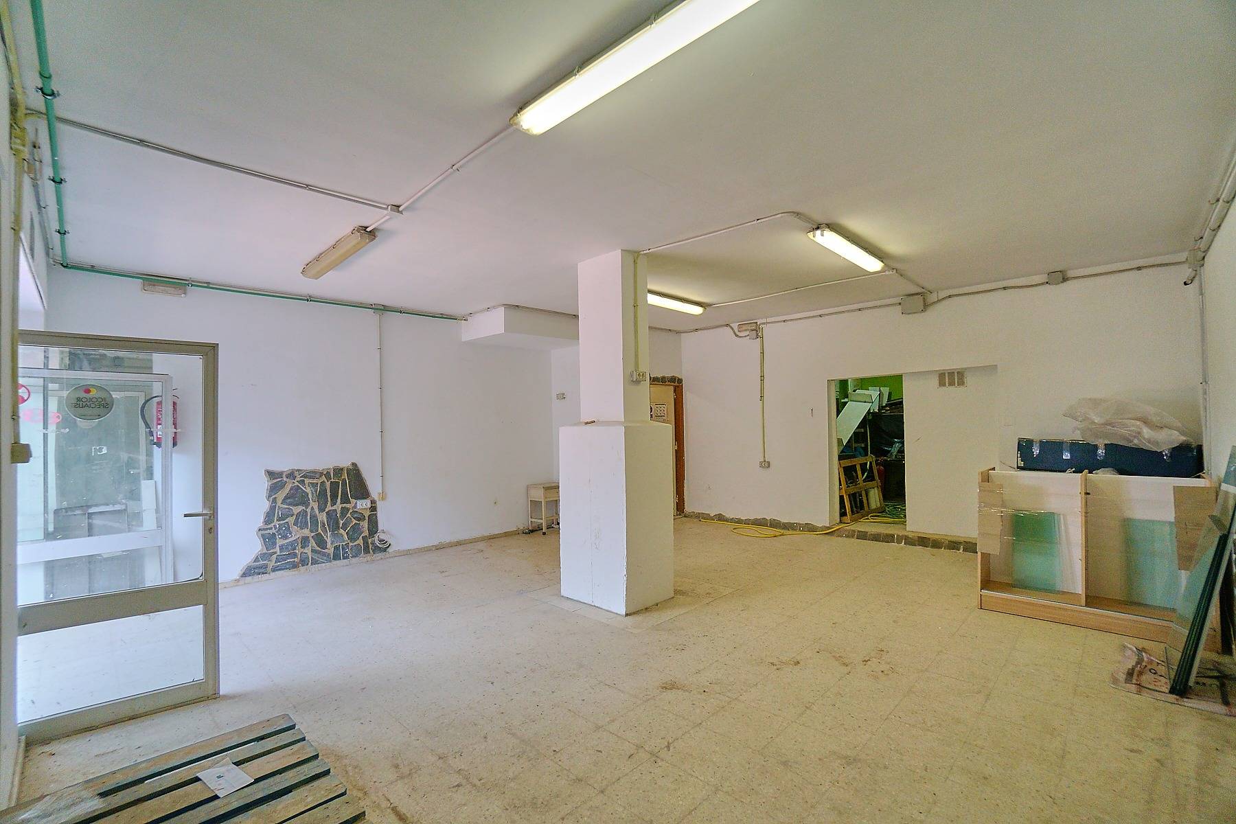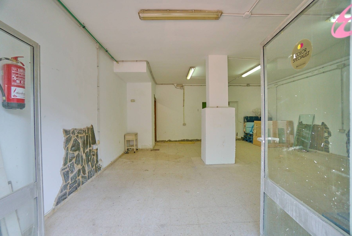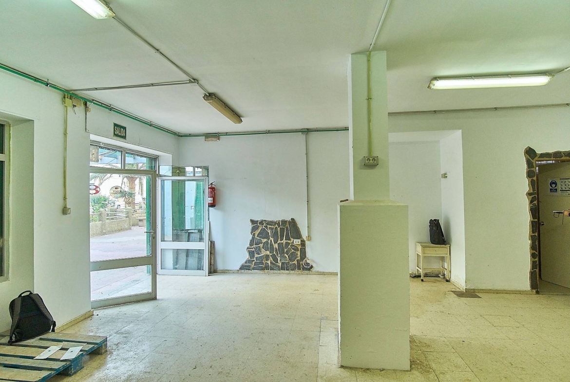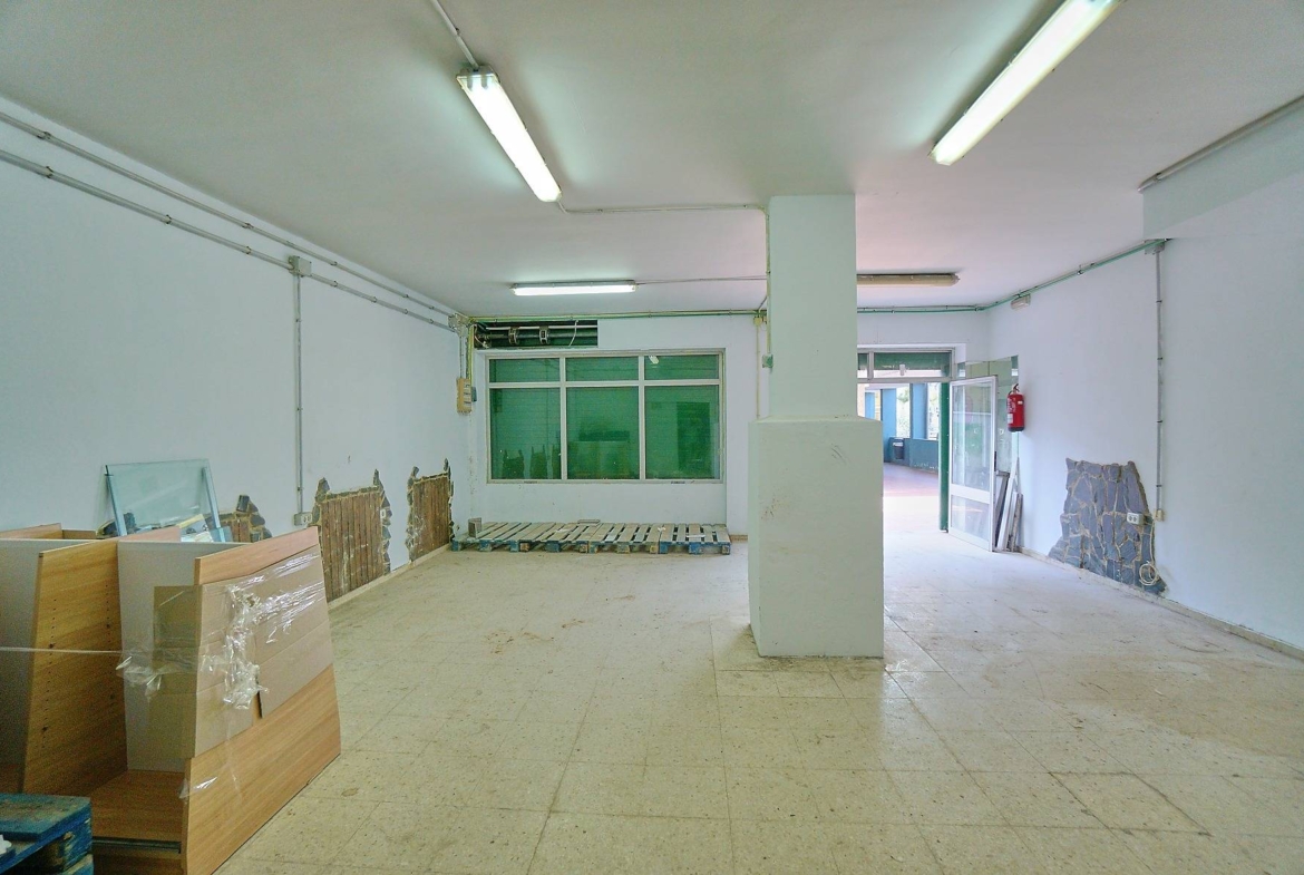 El local es diáfano, ideal para montar cualquier tipo de negocio de cara al público, dispone de un aseo y una amplia estancia que puede utilizarse como despacho o almacén.