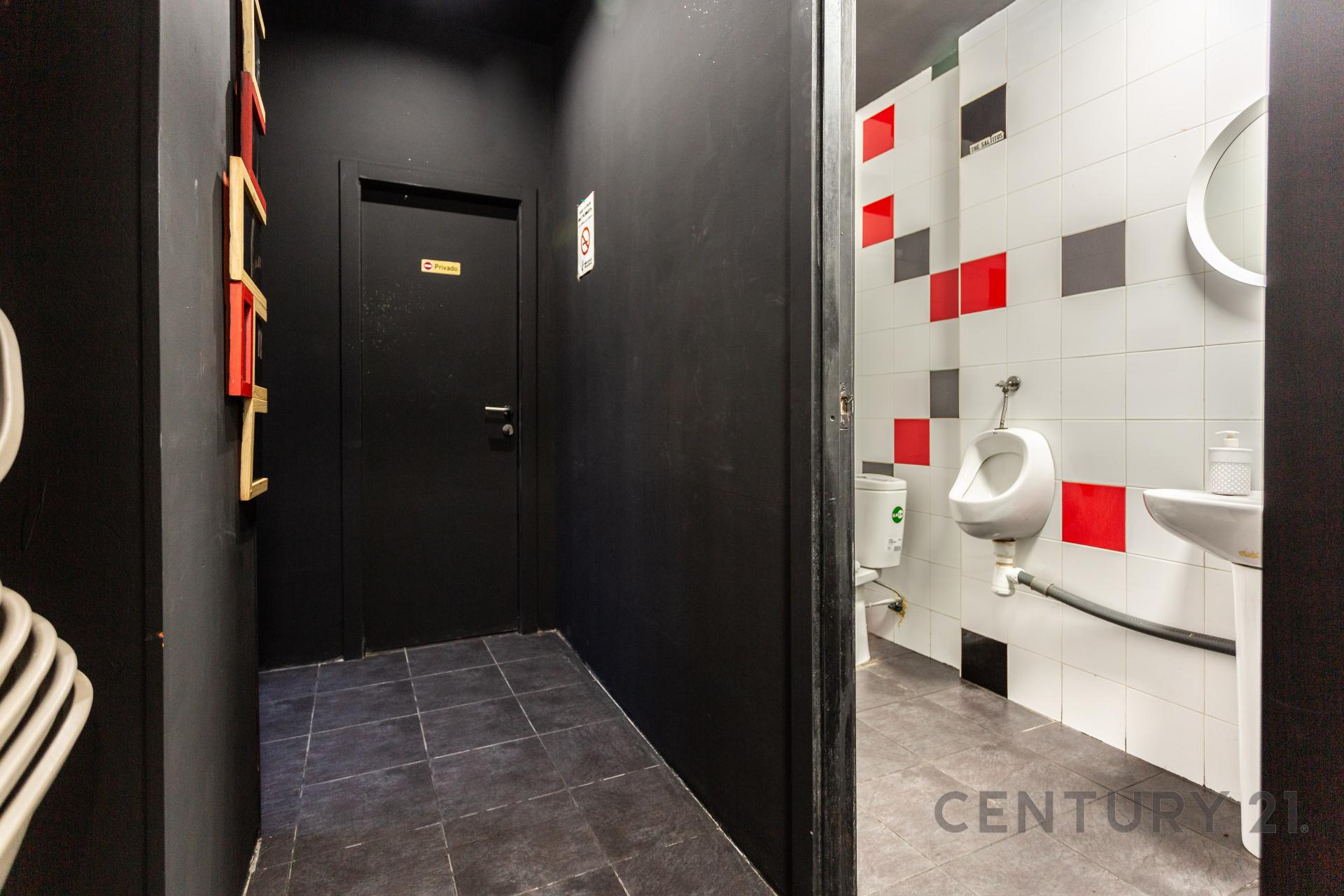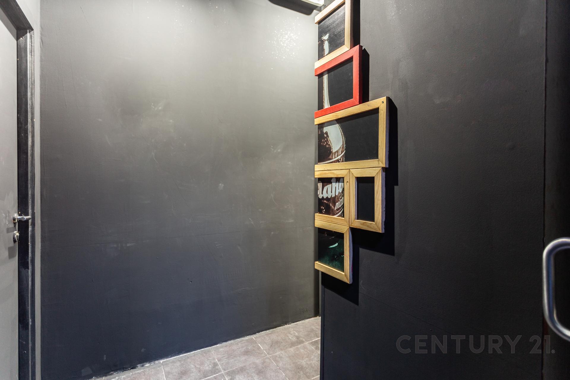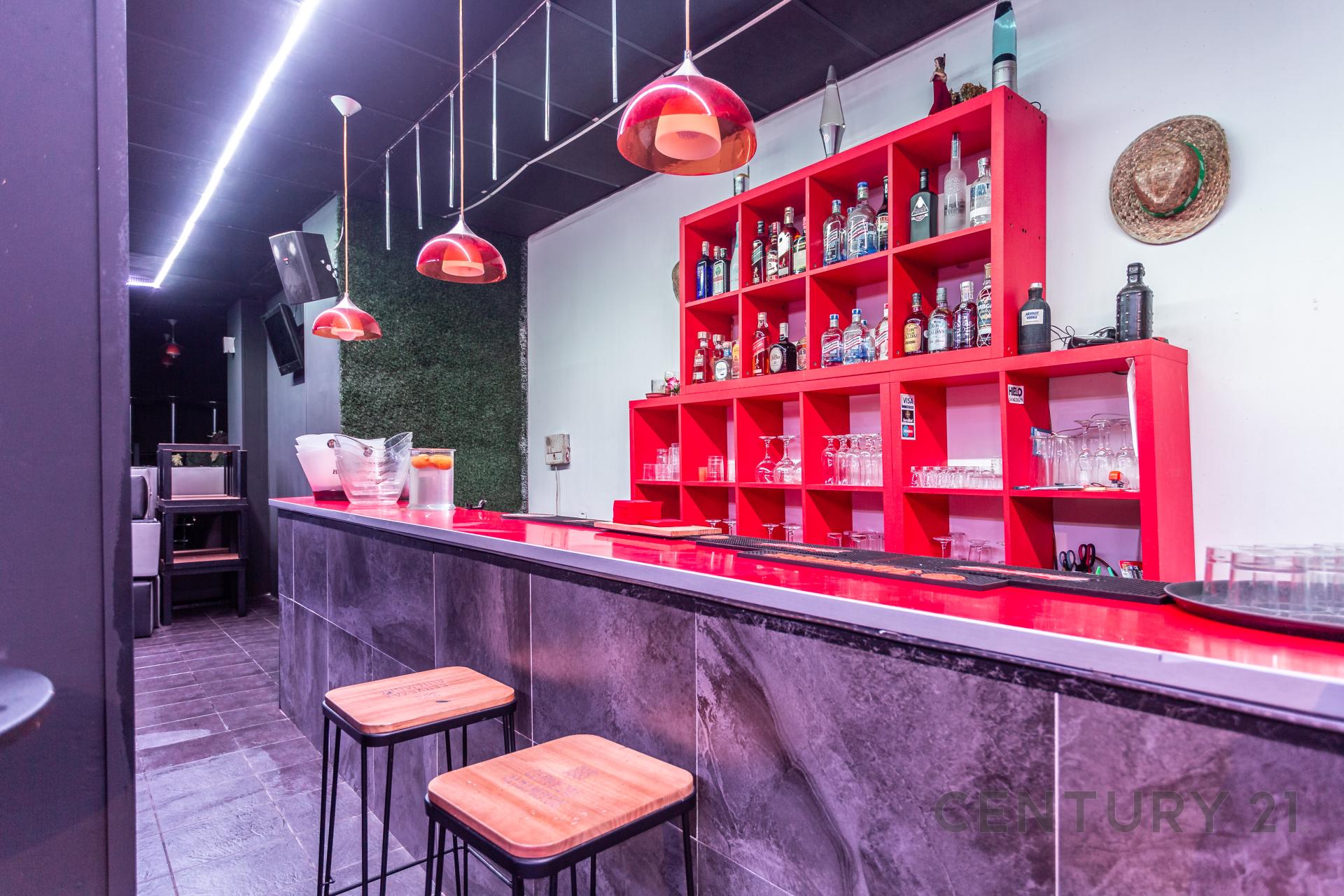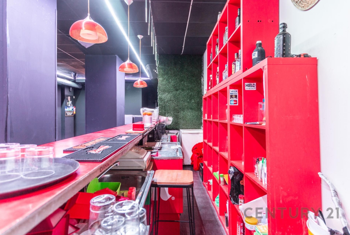 Tiene una superficie construida de 126 m2, con una distribución diáfana con zona de barra, cabida para musica, dos baños y una amplia zona para tomar copas.