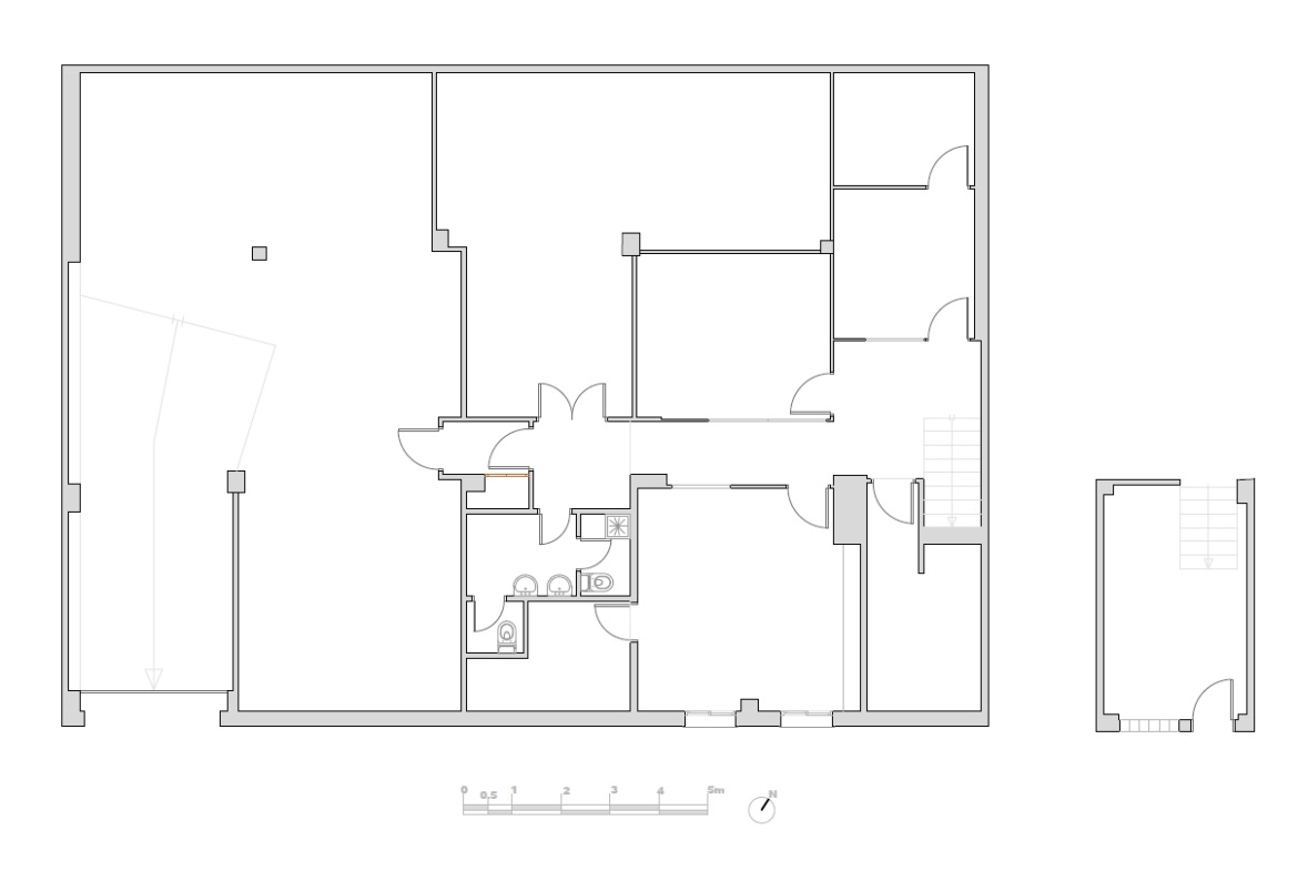 Aunque actualmente están unidos físicamente, realmente son dos locales. Uno de ellos tiene como uso garaje y tiene 99 m² útiles. El otro si tiene consideración de local comercial, teniendo un acceso y zona de recepción en planta baja de 13,85 m² útiles y un amplio semisótano al que se accede por una cómoda escalera y tiene de 231m² útiles.