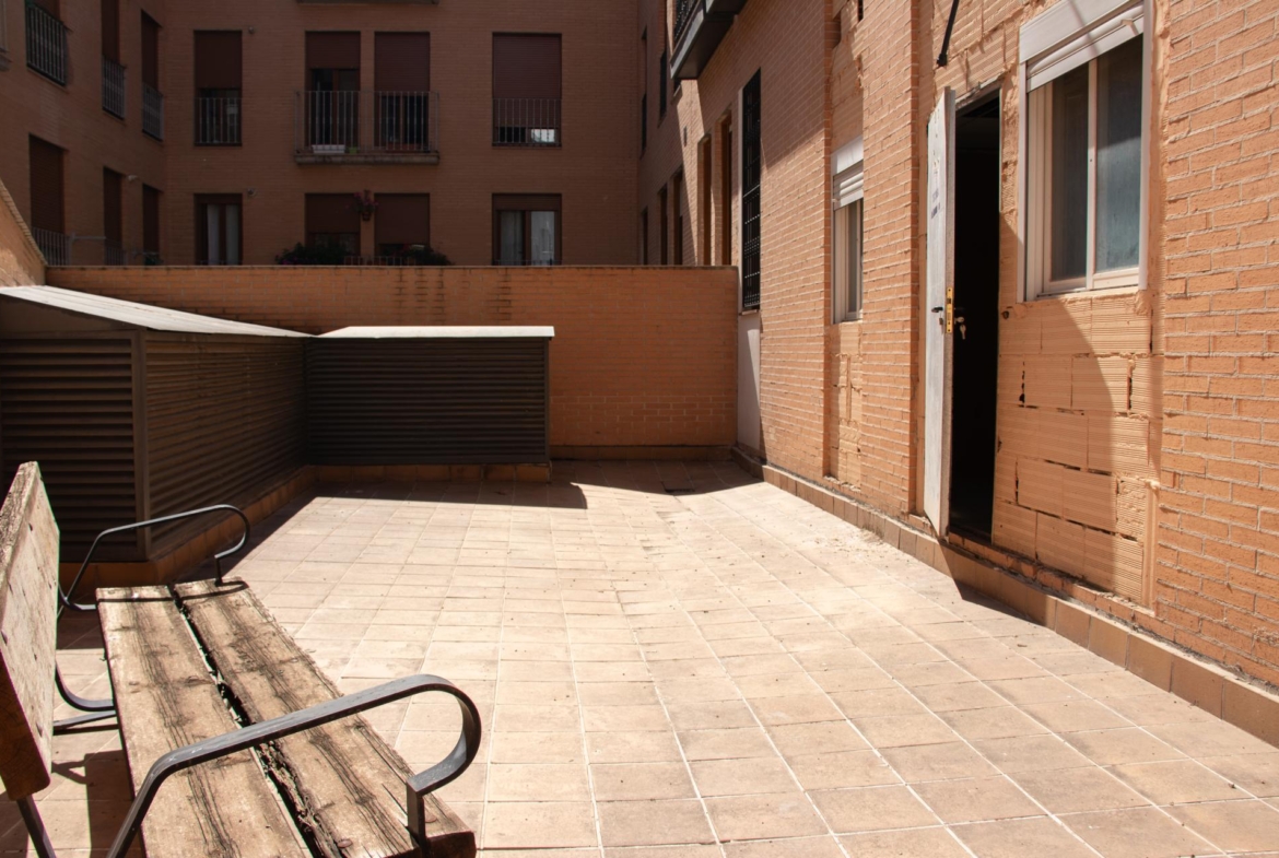 El local dispone de una terraza de gran tamaño, sótano, trastero y plaza de garaje (12,81m2 útiles) incluida en el precio (acceso por la calle posterior).