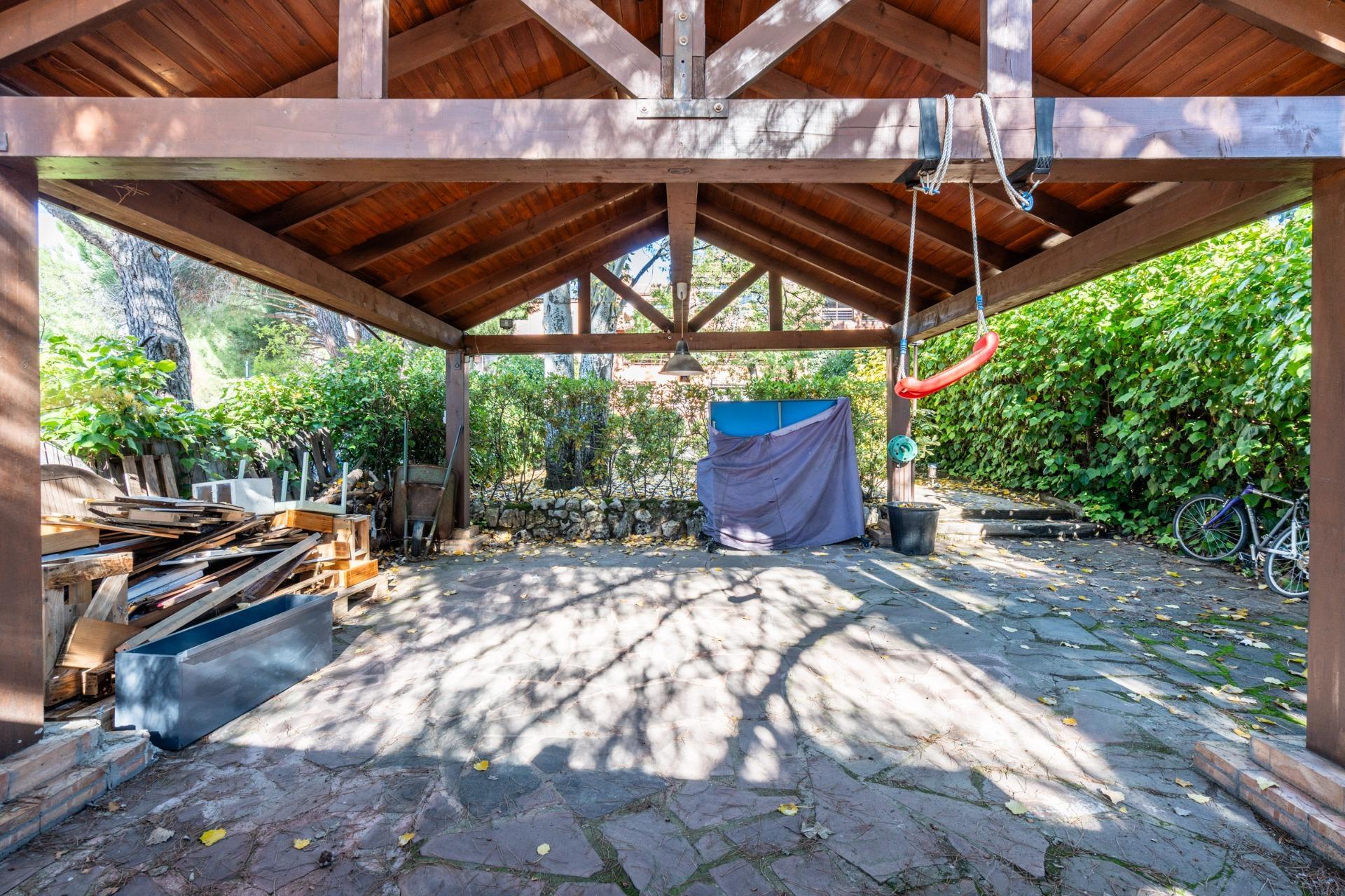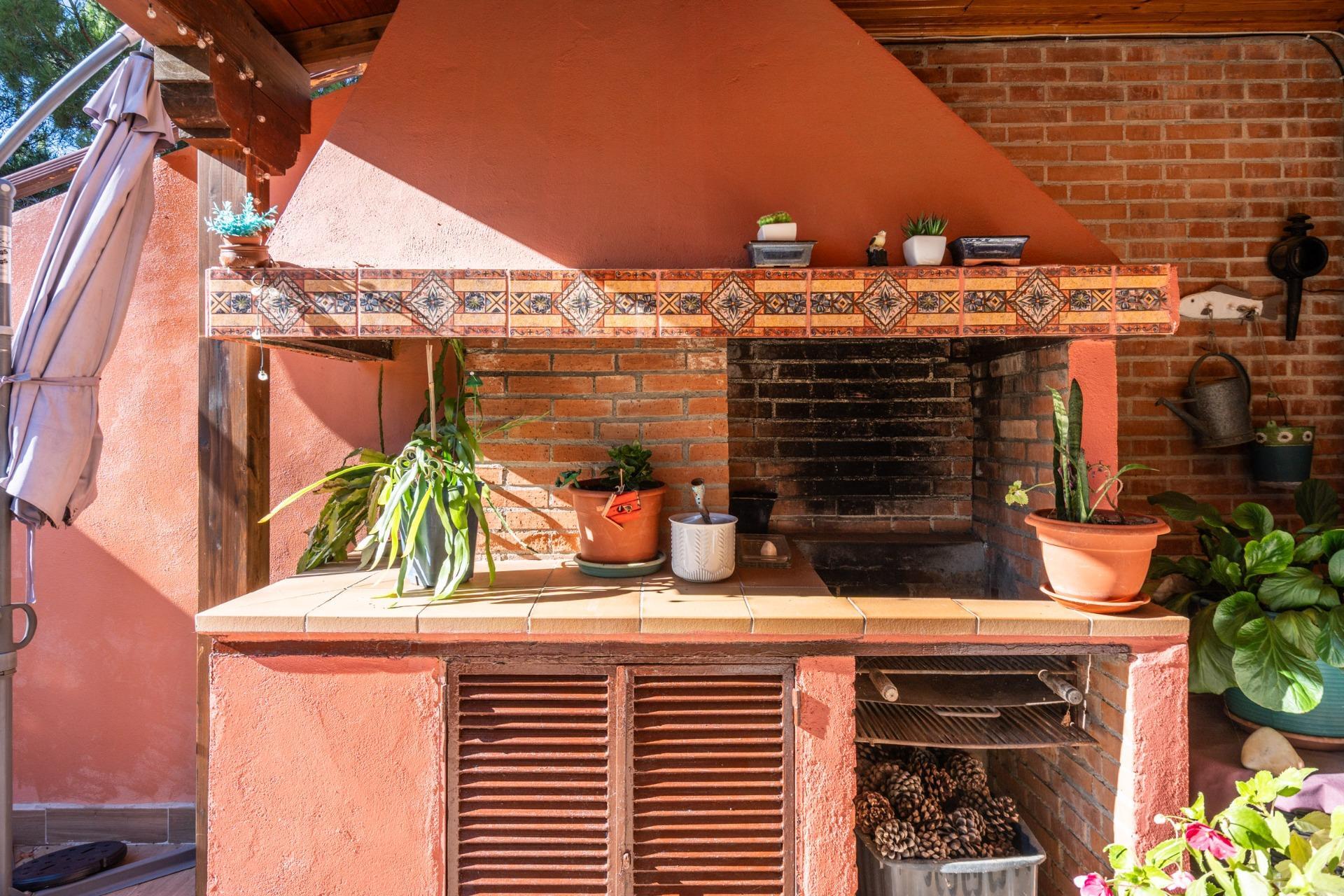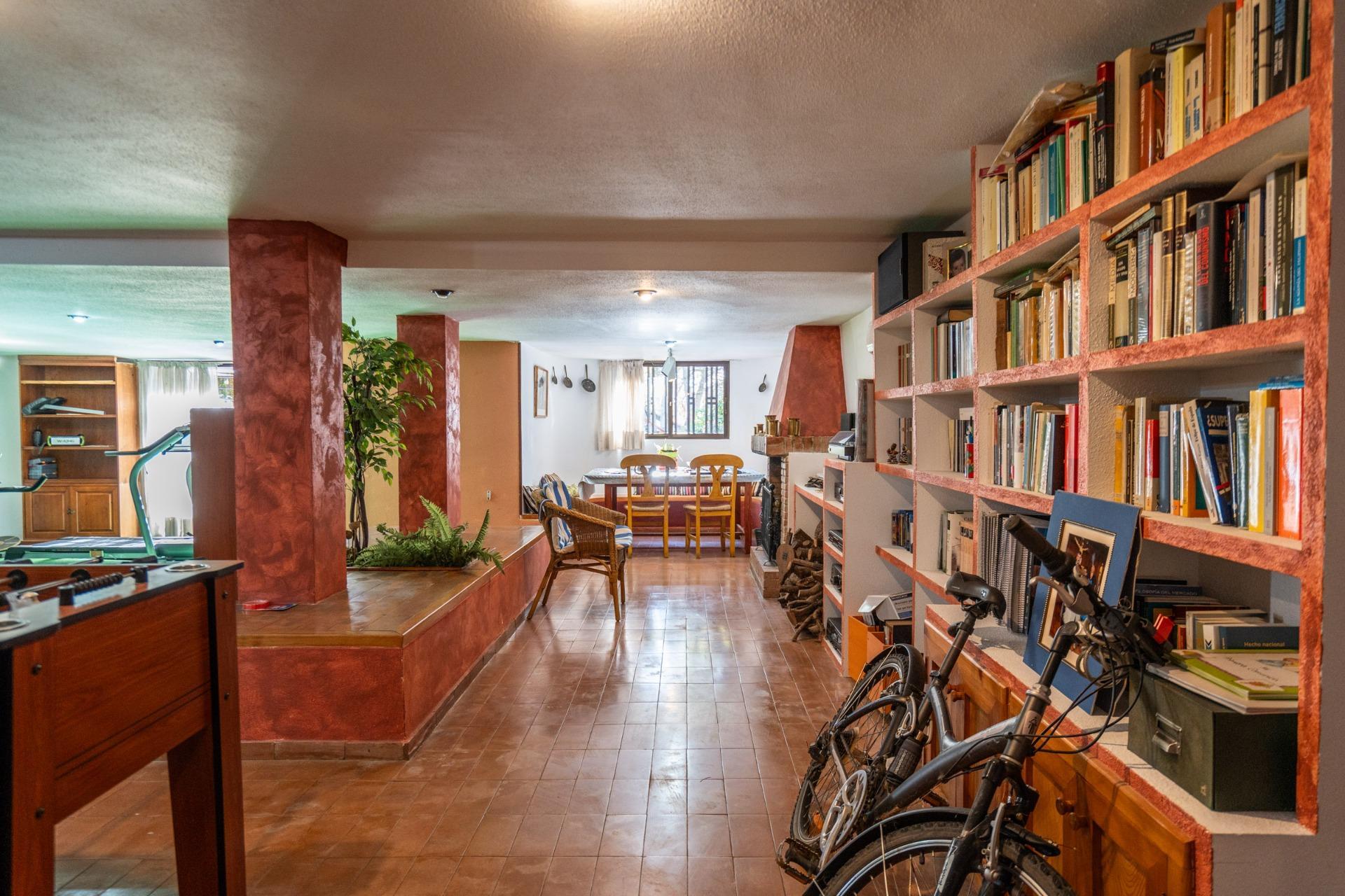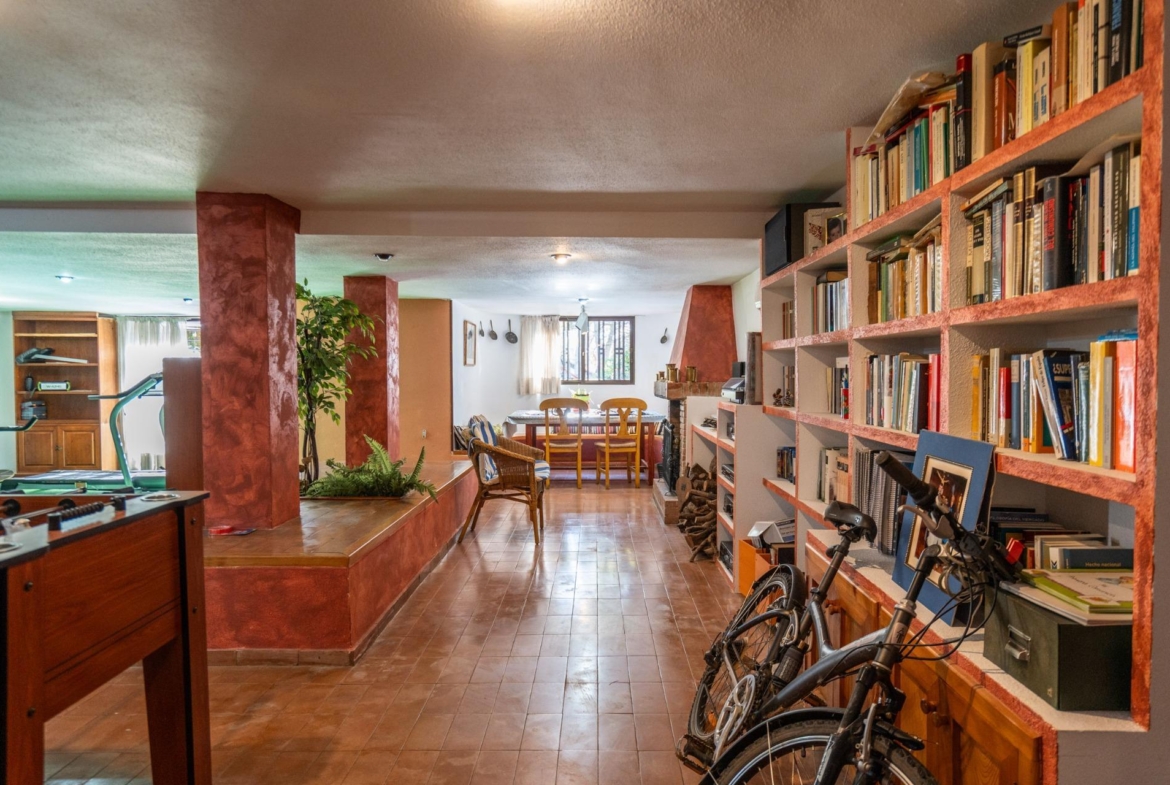 El sótano, completamente habilitado, está destinado al ocio y al encuentro, con una amplia zona diáfana que alberga un acogedor salón con chimenea, gimnasio, zona de juegos y un baño completo, además de varias estancias destinadas al almacenamiento. La casa dispone además de aparcamiento interior y exterior dentro de la misma propiedad.