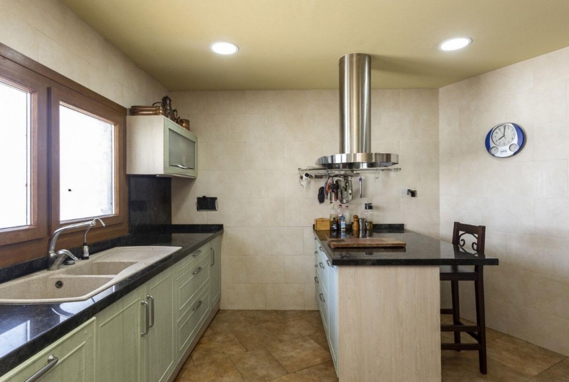La planta superior revela una espectacular terraza de más de 130m², que ofrece vistas panorámicas de 360º, una experiencia única para contemplar la inmensidad del Mar Mediterráneo. Descendiendo a la planta inferior, encontramos una segunda cocina, un aseo, un baño, una habitación triple y otro espacioso salón-comedor, de dimensiones similares al de la planta principal. Al extenderse desde el comedor hacia el jardín, se descubre una espectacular piscina de más de 32m², una zona de barbacoa, un espacio para un relajante chill-out y un aparcamiento con capacidad para más de tres vehículos. Desde la piscina, se puede admirar la singular fachada de esta extraordinaria residencia.