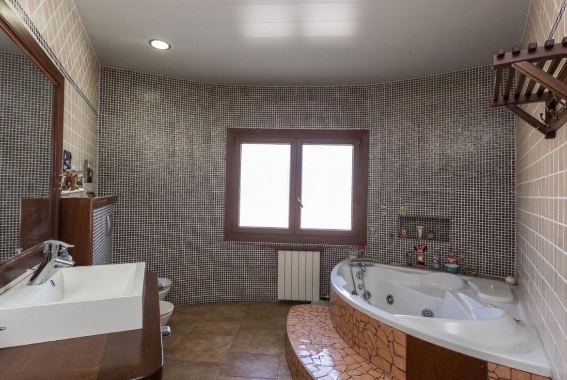 La planta principal alberga un encantador salón-comedor de aproximadamente 50m², contiguo a una moderna cocina y una elegante zona de lavandería. Complementan este nivel una espaciosa habitación doble, un aseo y otro generoso salón-comedor de más de 50m². El ascenso por la escalera conduce al salón principal, donde una hermosa fuente se erige como elemento destacado. En este nivel, se distribuyen cuatro dormitorios dobles, uno de ellos con un vestidor que, por sus amplias dimensiones, podría considerarse una estancia adicional. Cada dormitorio se beneficia de su propio balcón. El lujo se completa con un baño equipado con jacuzzi, otro con ducha y unas impresionantes vistas al mar.